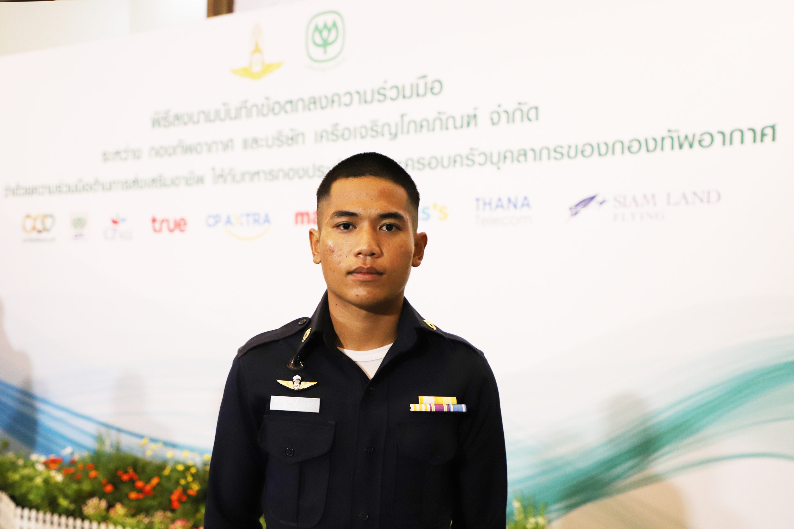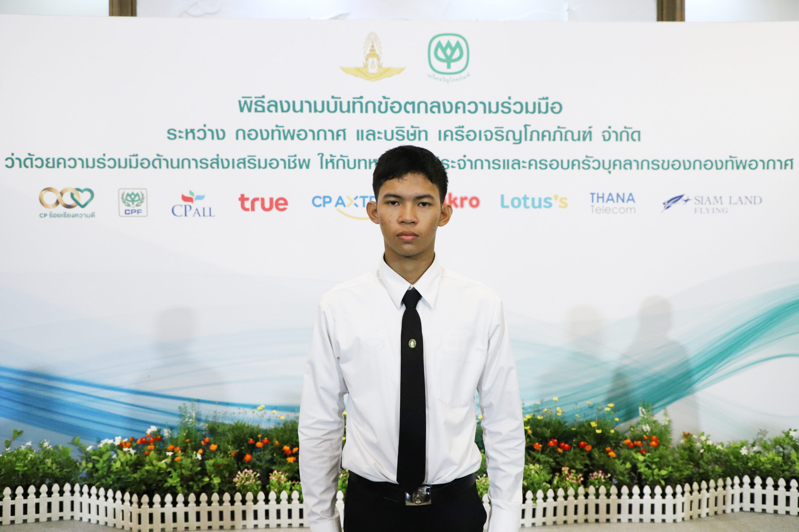 น้องเขม – เขมทัต จันทรโชติ ตัวแทนครอบครัวทหารอากาศ ปัจุจบันอายุ 18 ปี กำลังศึกษาชั้นปีที่ 1 สาขาวิชาการจัดการรัฐกิจและการปกครองท้องถิ่น คณะมนุษยศาสตร์และสังคมศาสตร์ มหาวิทยาลัยราชภัฏพระนครศรีอยุธยา กล่าวว่า ขอบคุณกองทัพอากาศ และ เครือซีพี ที่มอบโอกาสดี ๆ ให้กับครอบครัวบุคลากรของกองทัพอากาศ ส่วนตัวสนใจงานดิลิเวอรีของร้านเซเว่น อีเลฟเว่น อยากหารายได้ระหว่างเรียน เพื่อแบ่งเบาภาระของผู้ปกครอง