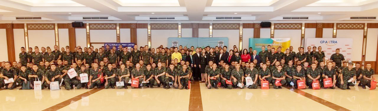 เครือเจริญโภคภัณฑ์ ผนึกกำลังบริษัทในเครือฯ ซีพีเอฟ ซีพีออลล์ และ ซีพี แอ็กซ์ตร้า “แม็คโคร-โลตัส” เปิดโอกาสด้านอาชีพ สนับสนุนตำแหน่งงาน 12,000 อัตราทั่วประเทศ ครอบคลุมหลายสายงานการเกษตร ค้าปลีก ค้าส่ง และร้านอาหาร รวมทั้งเปิดเว็บไซต์ https://cp-modjob.com ซึ่งทหารกองประจำการที่ปลดประจำการแล้ว สามารถค้นหาตำแหน่งงานต่างๆ ตามทักษะและความสนใจได้อย่างสะดวกรวดเร็ว พร้อมสนับสนุนทุนการศึกษาฟรีกว่า 2,000 ทุนต่อปี ตั้งแต่ระดับ ปวช. ปวส. และ ปริญญาตรี ที่สถาบันการจัดการปัญญาภิวัฒน์ (PIM) และวิทยาลัยเทคโนโลยีปัญญาภิวัฒน์ (PAT) เพื่อพัฒนาทักษะที่ตรงกับตลาดแรงงานยุค 5.0 ล่าสุด กองบัญชาการกองทัพบก นำร่องจัดกิจกรรม Roadshow โครงการส่งเสริมอาชีพและการศึกษาให้ทหารกองประจำการที่จะปลดประจำการ ณ อาคารพลเอกบรรจบ บุนนาค ค่ายบุรฉัตร จังหวัดราชบุรี มีพลทหารเข้าร่วมมากกว่า 500 คน โดยมี พลตรีประยุทธ ผดุงพจน์ ผู้บัญชาการมณฑลทหารบก ที่ 16 ให้เกียรติเป็นประธานเปิดงาน ณ อาคารพลเอกบรรจบ บุนนาค ค่ายบุรฉัตร จังหวัดราชบุรี มีพลทหารเข้าร่วมมากกว่า 500 คน