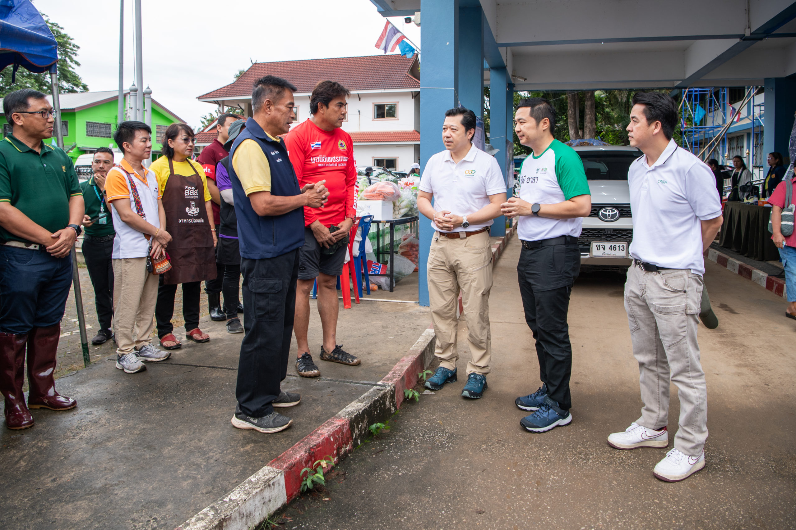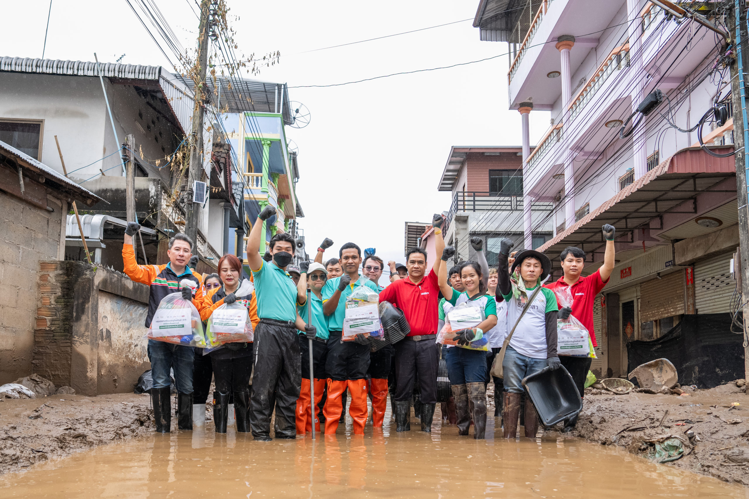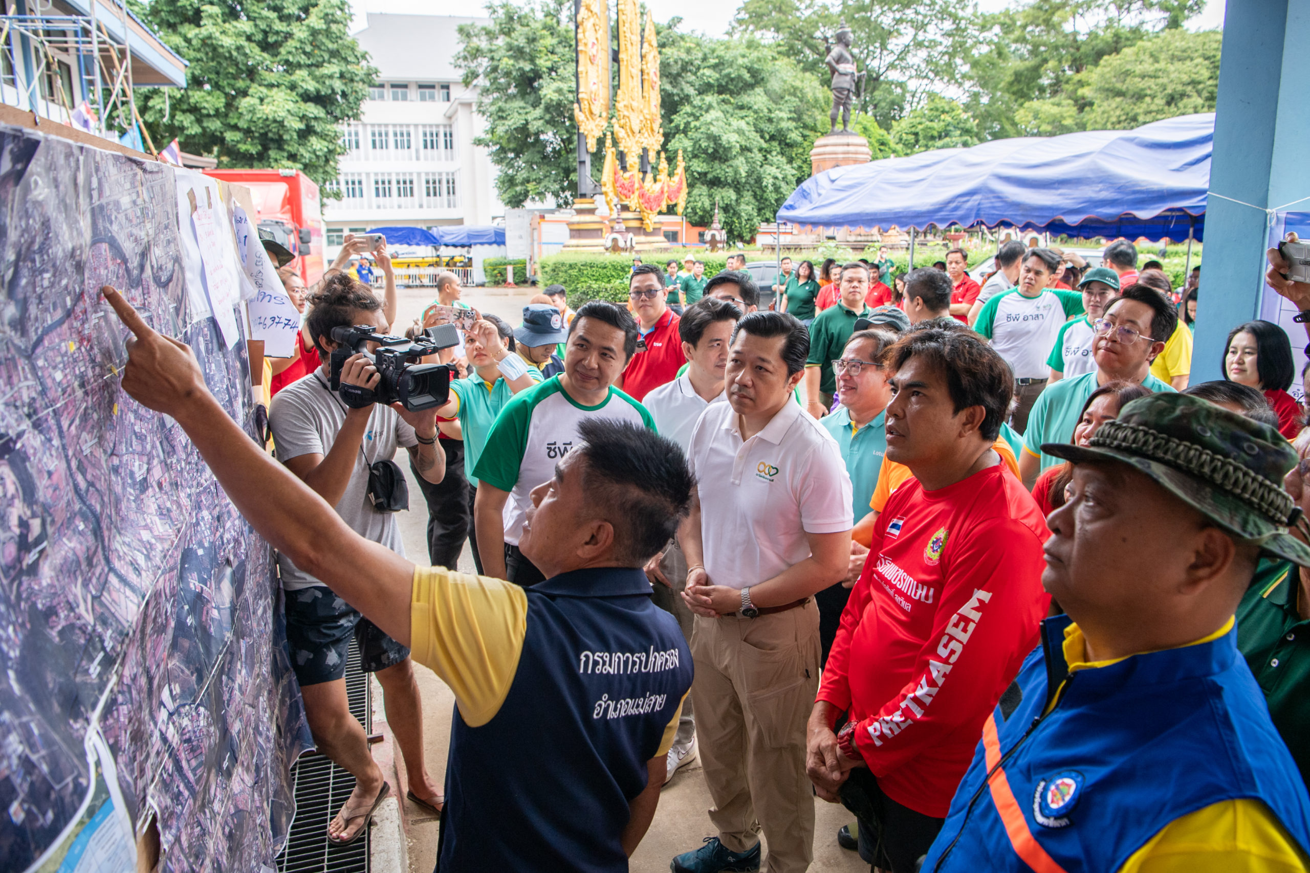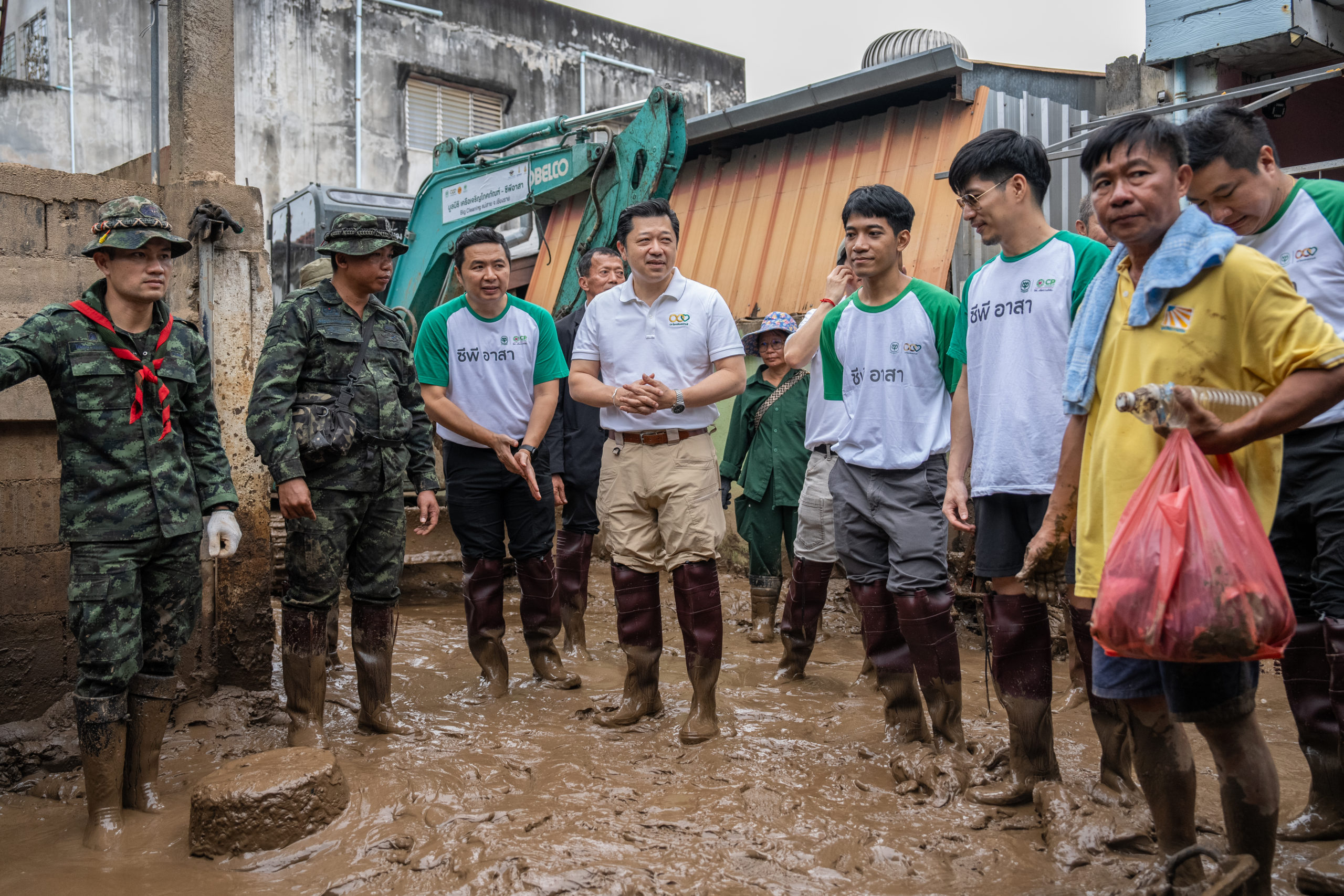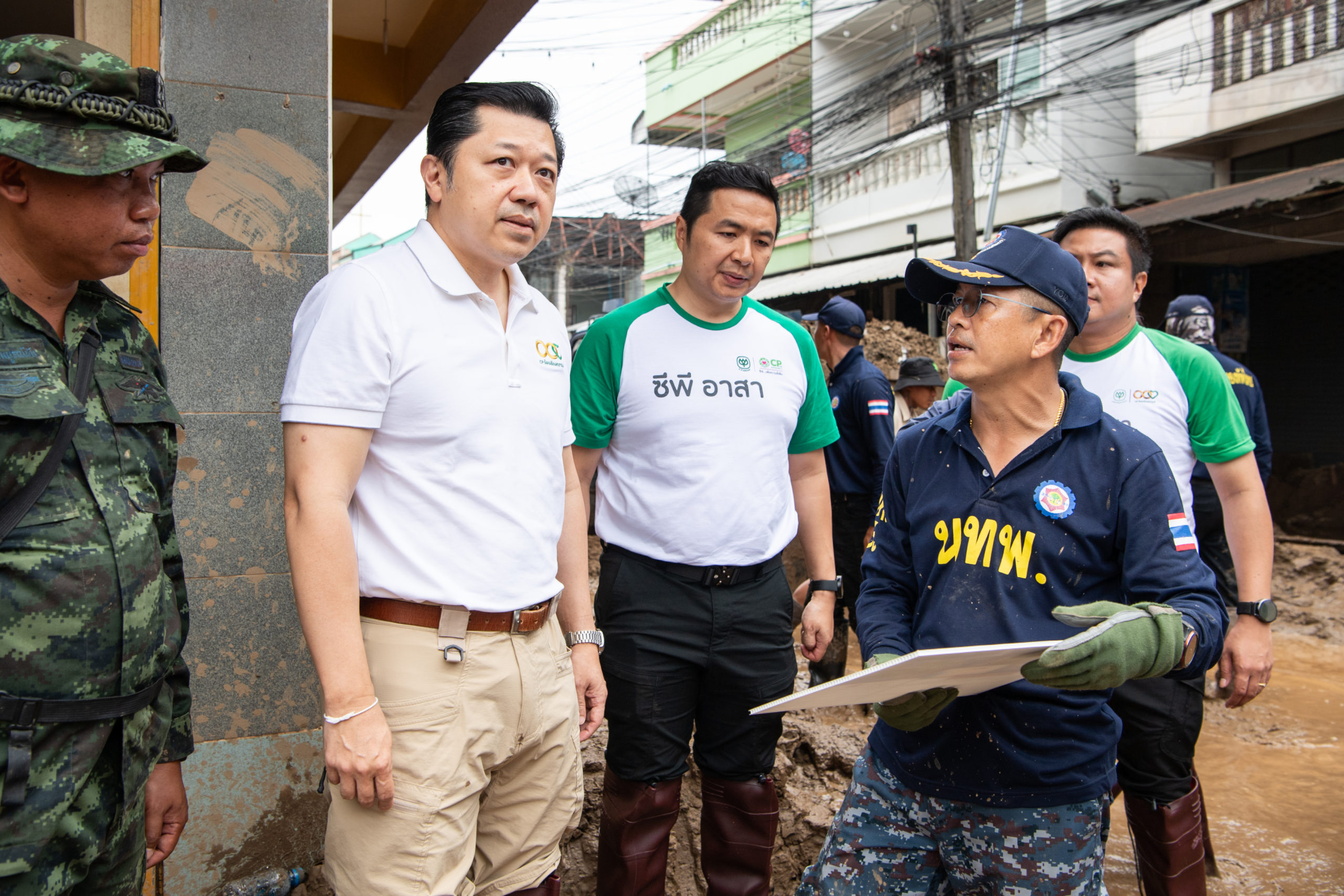 วันที่ 23 กันยายน 2567 – คุณศุภชัย เจียรวนนท์ ประธานคณะผู้บริหาร เครือเจริญโภคภัณฑ์ (ซีพี) พร้อมด้วย ดร.ธีระพล ถนอมศักดิ์ยุทธ ประธานคณะผู้บริหาร ด้านความยั่งยืนองค์กรและการพัฒนากลยุทธ์ เครือเจริญโภคภัณฑ์และประธานคณะผู้บริหารยุทธศาสตร์ข้อมูลและการสื่อสาร เครือเจริญโภคภัณฑ์ คุณจอมกิตติ ศิริกุล รองกรรมการผู้จัดการใหญ่อาวุโส ด้านพัฒนาความยั่งยืนภาครัฐและกิจการสัมพันธ์ เครือเจริญโภคภัณฑ์ และผู้ช่วยบริหารสำนักประธานคณะกรรมการบริหาร บริษัท เจริญโภคภัณฑ์อาหาร จำกัด (มหาชน) หรือซีพีเอฟ และทีมงานซีพีอาสา ได้ลงพื้นที่ อ.แม่สาย จ.เชียงราย เพื่อตรวจเยี่ยมและติดตามสถานการณ์น้ำท่วมที่เกิดขึ้นครอบคลุมพื้นที่กว่า 4.6 ตารางกิโลเมตร โดยประชาชนเกือบ 3,000 ครัวเรือนเดือดร้อนจากฝนตกหนักที่ทำให้เกิดน้ำป่าไหลหลากและดินโคลนทับถมในหลายหมู่บ้าน การลงพื้นที่ครั้งนี้เน้นการให้ความช่วยเหลือประชาชนที่กำลังประสบปัญหาจากอุทกภัย พร้อมสนับสนุนการฟื้นฟูบ้านเรือนที่ได้รับความเสียหายอย่างรุนแรง