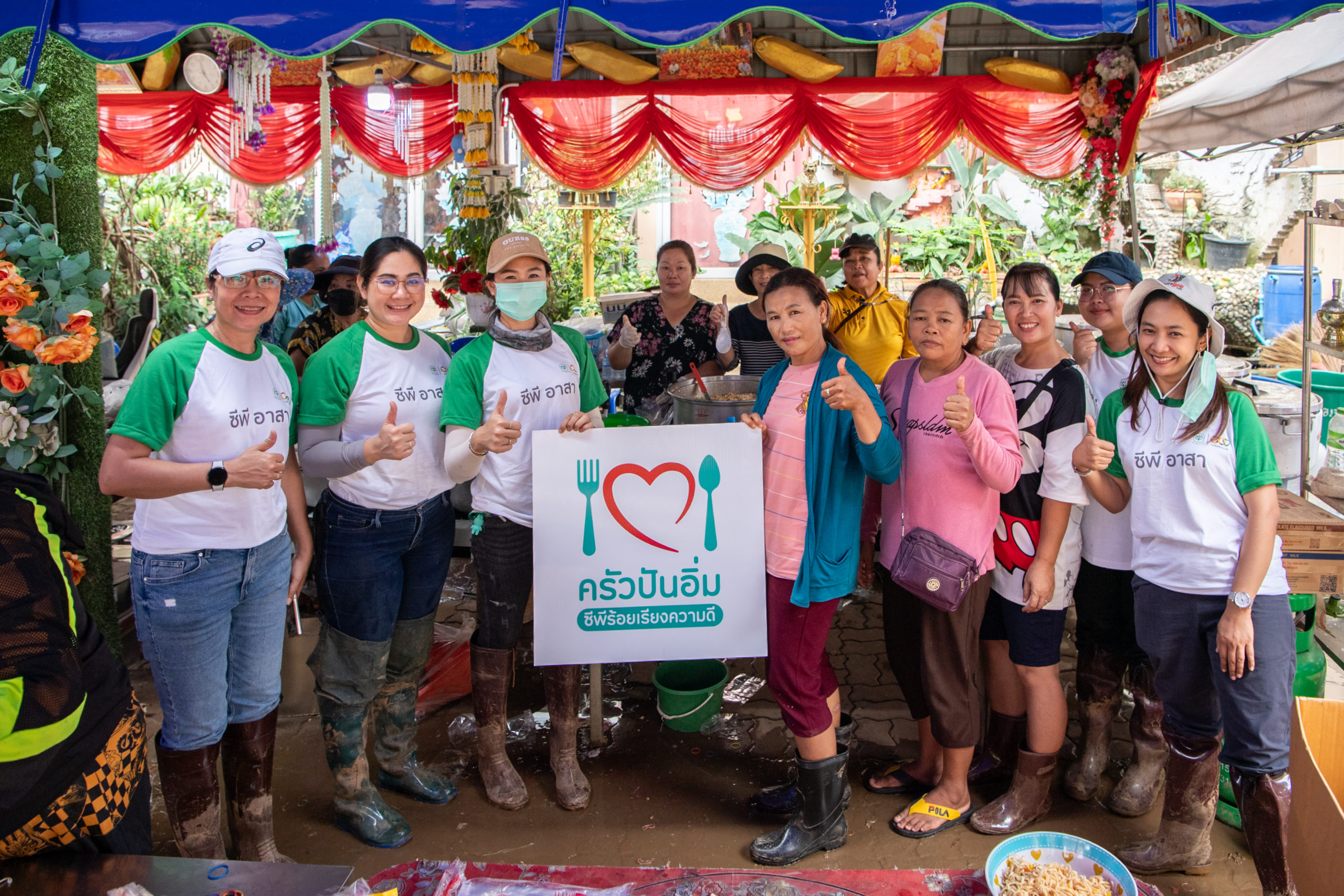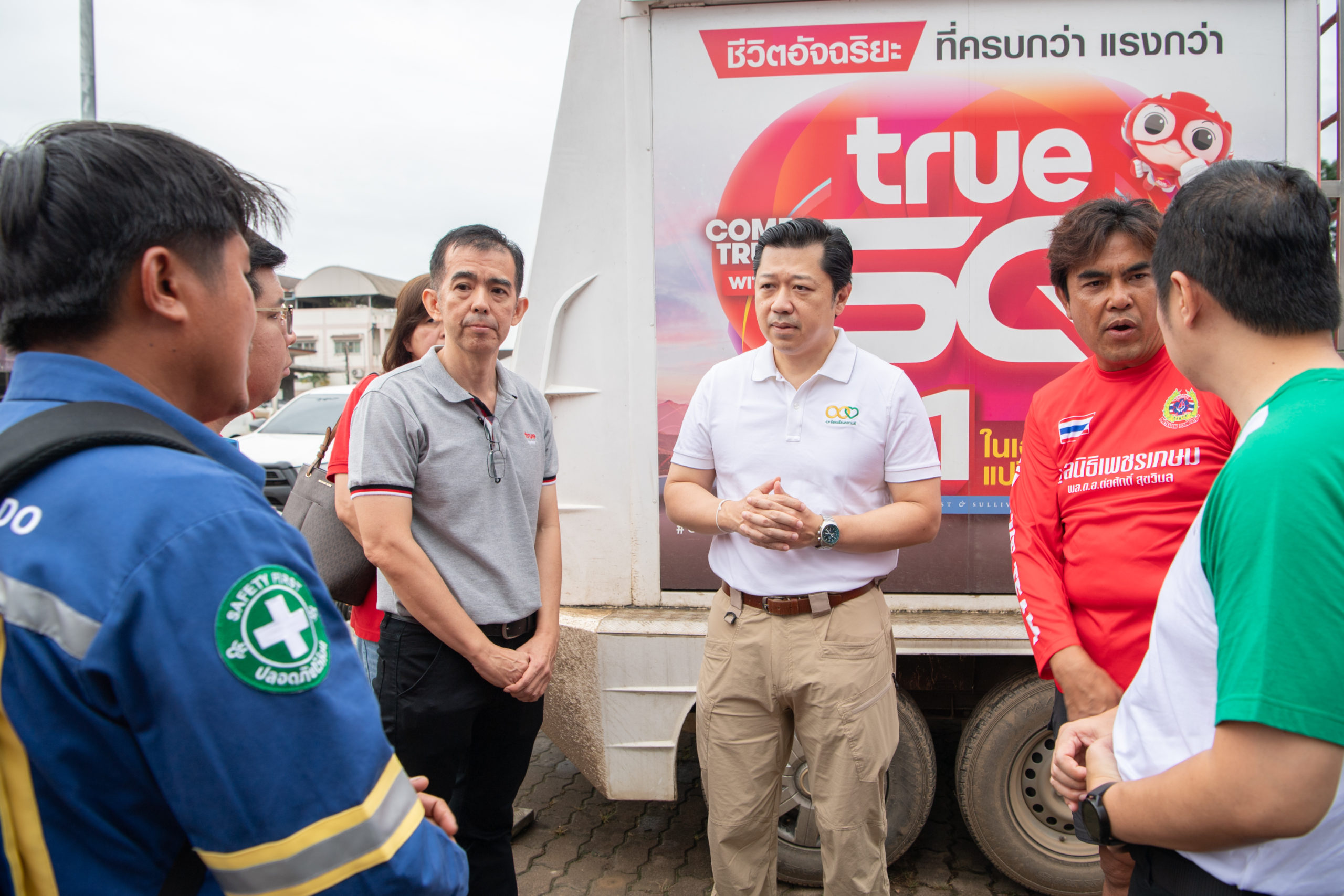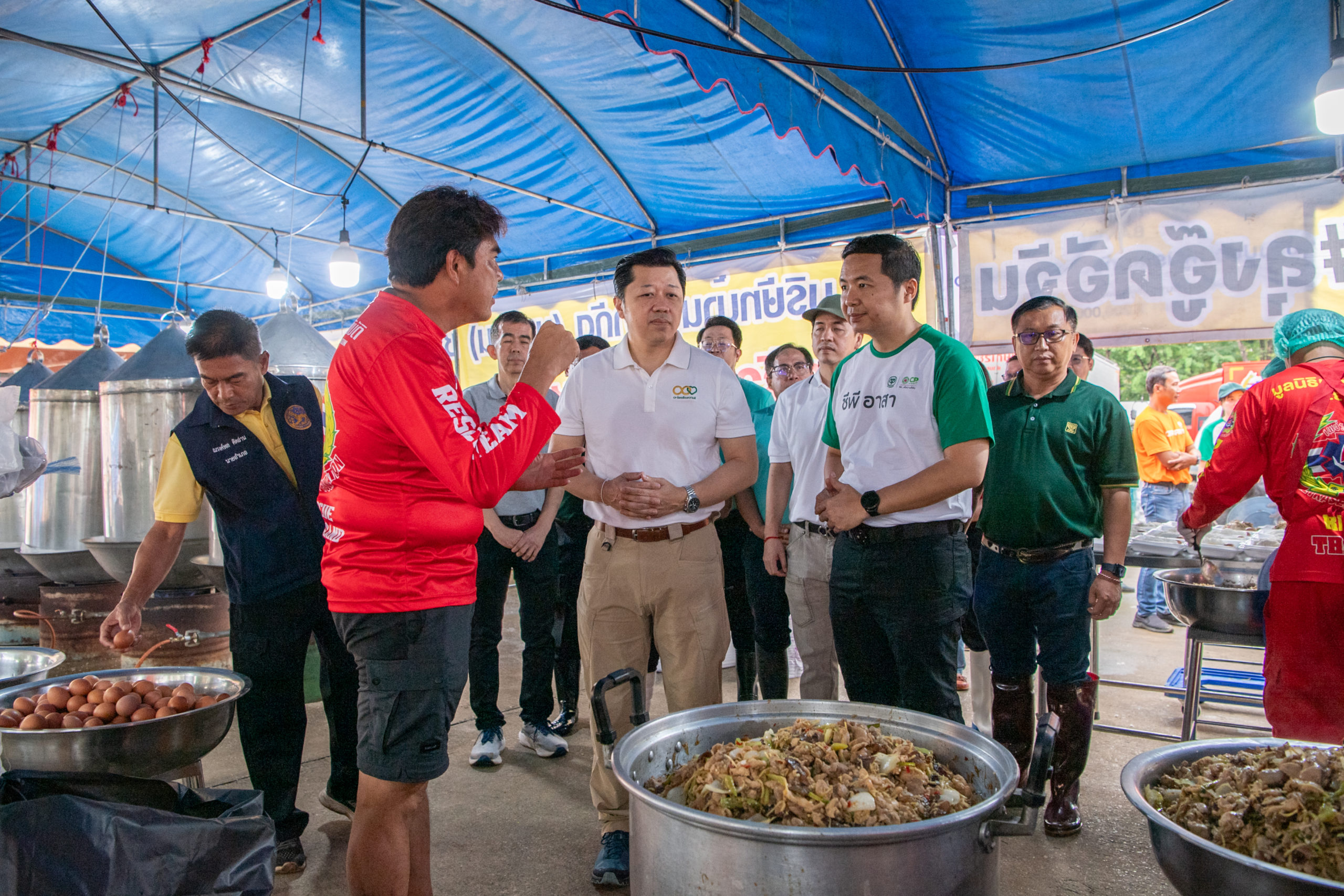 ในการนี้ คุณศุภชัยและทีมงานซีพีอาสา ได้เริ่มต้นภารกิจโดยมอบสิ่งของบรรเทาทุกข์ที่จำเป็นให้กับโรงครัวกิ่งกาชาด โรงครัวมูลนิธิอาสาเพื่อนพึ่ง (ภาฯ) ยามยาก และโรงครัวมูลนิธิเพชรเกษม เพื่อใช้ในการประกอบอาหารเลี้ยงผู้ประสบภัยและจิตอาสา โดยสิ่งของที่มอบในครั้งนี้ได้รับการสนับสนุนจากบริษัทในเครือซีพี ได้แก่ CPF มอบวัตถุดิบของสด CP Axtra มอบเครื่องปรุงและผัก CP ALL มอบน้ำดื่ม และ CPI มอบข้าวตราฉัตร นอกจากนี้ เครือซีพียังได้ส่งรถโมบายทรูเข้าให้บริการสัญญาณโทรศัพท์และอินเทอร์เน็ตในพื้นที่ที่ประสบปัญหาด้านการสื่อสาร ช่วยให้ชาวบ้านสามารถติดต่อสื่อสารกับภายนอกได้อย่างสะดวกและมีประสิทธิภาพ ทั้งยังมอบผ้าห่ม หมอน และมุ้ง ให้กับผู้ประสบภัย ณ ศูนย์พักพิงชั่วคราวที่วัดพรหมวิหาร ซึ่งมีผู้อยู่อาศัยกว่า 100 คน เพื่อให้การดำรงชีวิตในช่วงเวลานี้เป็นไปอย่างปลอดภัย