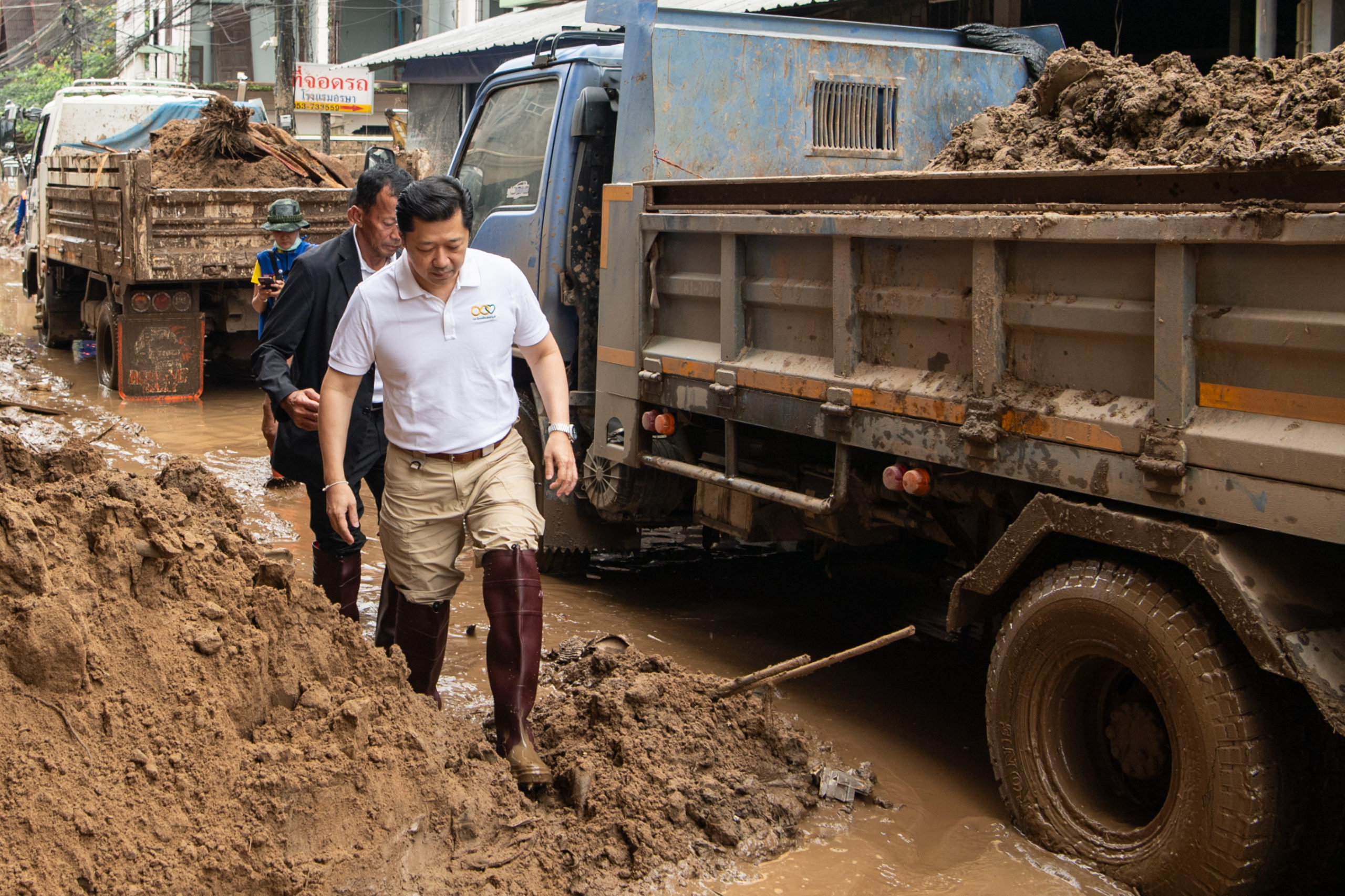 คุณศุภชัยยังได้เดินทางไปเยี่ยมผู้ประสบภัยที่หมู่บ้านเกาะทรายและบ้านเหมืองแดง รวมถึงพบปะทีมงานซีพีอาสา หน่วยกู้ภัย และทหารที่ได้ร่วมกันดำเนินการฟื้นฟูพื้นที่โดยใช้รถแบคโฮขนาดเล็กเพื่อขนย้ายดินโคลนที่ทับถมบ้านเรือนและพื้นที่การเกษตร พร้อมทั้งซ่อมแซมบ้านเรือนที่ได้รับความเสียหายอย่างหนัก โดยในโอกาสนี้ คุณศุภชัยได้พบปะและพูดคุยกับชาวบ้าน พร้อมให้กำลังใจจิตอาสาที่ทำงานอย่างหนักในการฟื้นฟูชุมชน