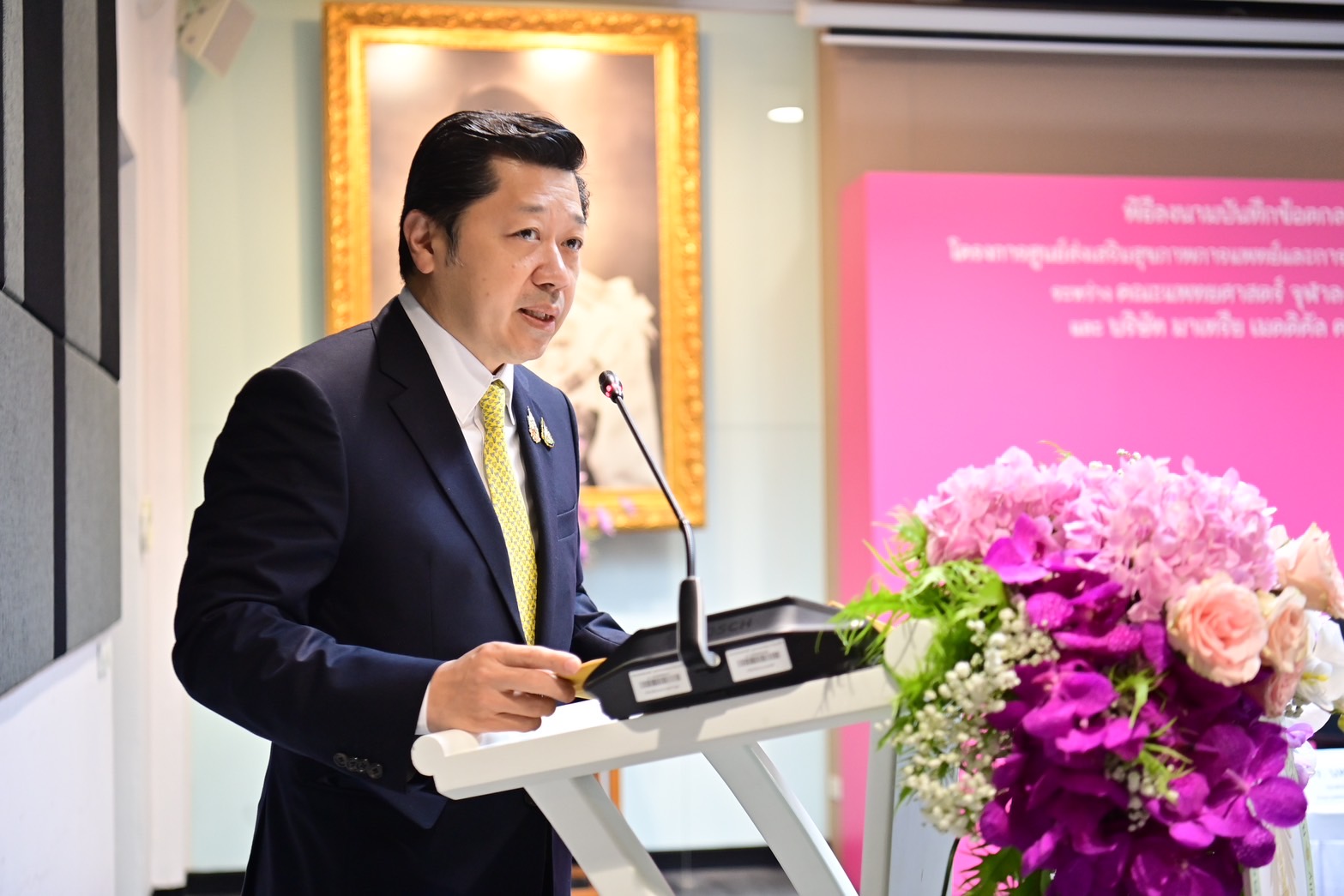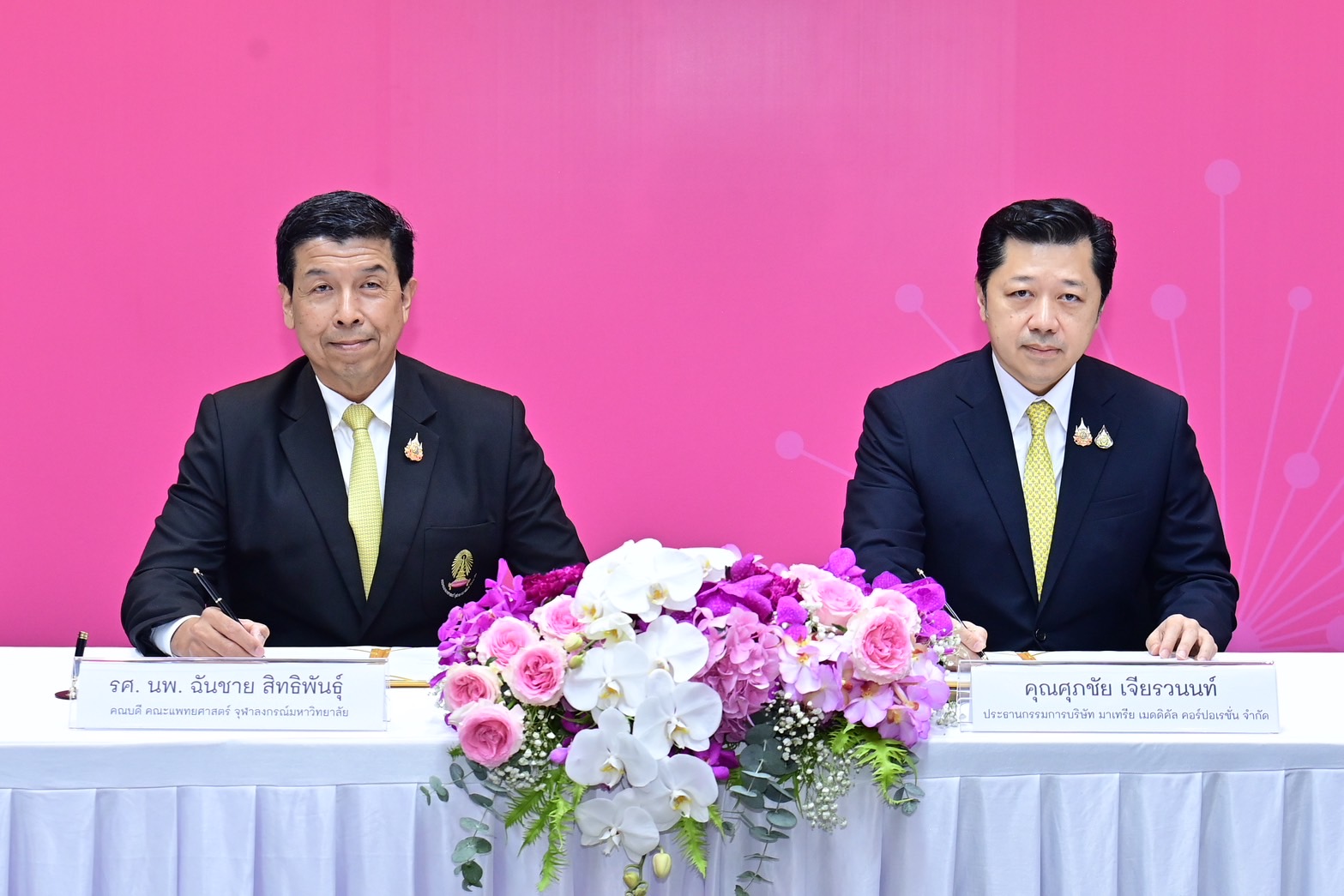 รองศาสตราจารย์นายแพทย์ ฉันชาย สิทธิพันธุ์ กล่าวว่า คณะแพทยศาสตร์ จุฬาลงกรณ์มหาวิทยาลัยและโรงพยาบาล จุฬาลงกรณ์ สภากาชาดไทย เป็นสถาบันทางการแพทย์ ที่มีพันธกิจหลัก ที่จะยกระดับมาตรฐานการดูแลสุขภาพของประชาชน ผ่านการสร้างให้บริการทางการแพทย์ที่ได้มาตรฐานระดับสากล โดยบุคลากรที่มีความเชี่ยวชาญร่วมกับเทคโนโลยี่ทางการแพทย์ที่ทันสมัย การสร้างงานวิจัยและนวัตกรรมทางการแพทย์เพื่อตอบโจทย์ของประชาชนและสังคม และการผลิตบุคลากรทางการแพทย์ที่มีความพร้อมในการให้การดูแลประชาชนทั้งในปัจจุบันและอนาคต ซึ่งเราก็ได้ดำเนินงานตามพันธกิจจนเป็นที่ประจักษ์ แต่ในสถานการณ์ในปัจจุบัน ที่มีการเปลี่ยนแปลงที่มีความท้าทายต่อสุขภาวะของมนุษยชาติเกิดขึ้นอย่างมากมายและรวดเร็ว การร่วมมือกันของภาคส่วนต่างๆ ที่มีความชำนาญ เชี่ยวชาญในด้านต่างๆ จึงมีความสำคัญมากที่จะช่วยทำให้เกิดการพัฒนาอย่างยั่งยืนและเกิดประโยชน์กับประชาชนและสังคมอย่างสูงสุด ความร่วมมือระหว่างคณะแพทยศาสตร์ จุฬาลงกรณ์มหาวิทยาลัย และบริษัท มาเทรีย เมดดิคัล คอร์ปอเรชั่นในวันนี้ จึงเป็นก้าวที่สำคัญ ในความร่วมมือกันระหว่างองค์กรทั้งสอง เพื่อผนึกกำลังในการพัฒนาการวิจัย สร้างนวัตกรรม ทางการแพทย์ การสร้างบุคลากรที่มีคุณภาพ และการให้บริการดูแลสุขภาพ ช่วยเพิ่มศักยภาพให้วงการแพทย์ไทยก้าวไปสู่เวทีระดับโลกและนำเสนอการรักษาด้วยเทคโนโลยีที่ทันสมัย ผ่านโครงการศูนย์ส่งเสริมสุขภาพและการแพทย์ครบวงจรระดับสากล ที่กำลังจะเกิดขึ้น