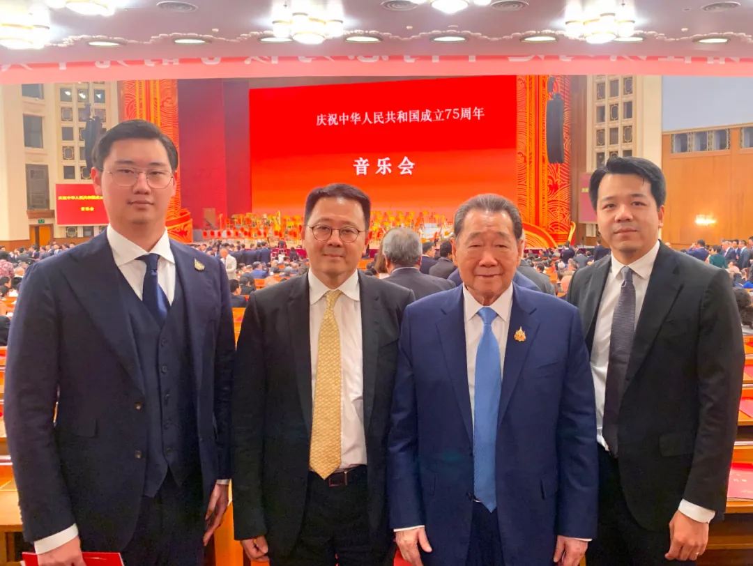 ▲ ท่านประธานอาวุโสธนินท์ เจียรวนนท์ คุณณรงค์ เจียรวนนท์ คุณกรวัฒน์ เจียรวนนท์ และ คุณสันติพงศ์ เจียรวนนท์ ในงานคอนเสิร์ตและงานเลี้ยงเฉลิมฉลองครบรอบ 75 ปี สาธารณรัฐประชาชนจีน