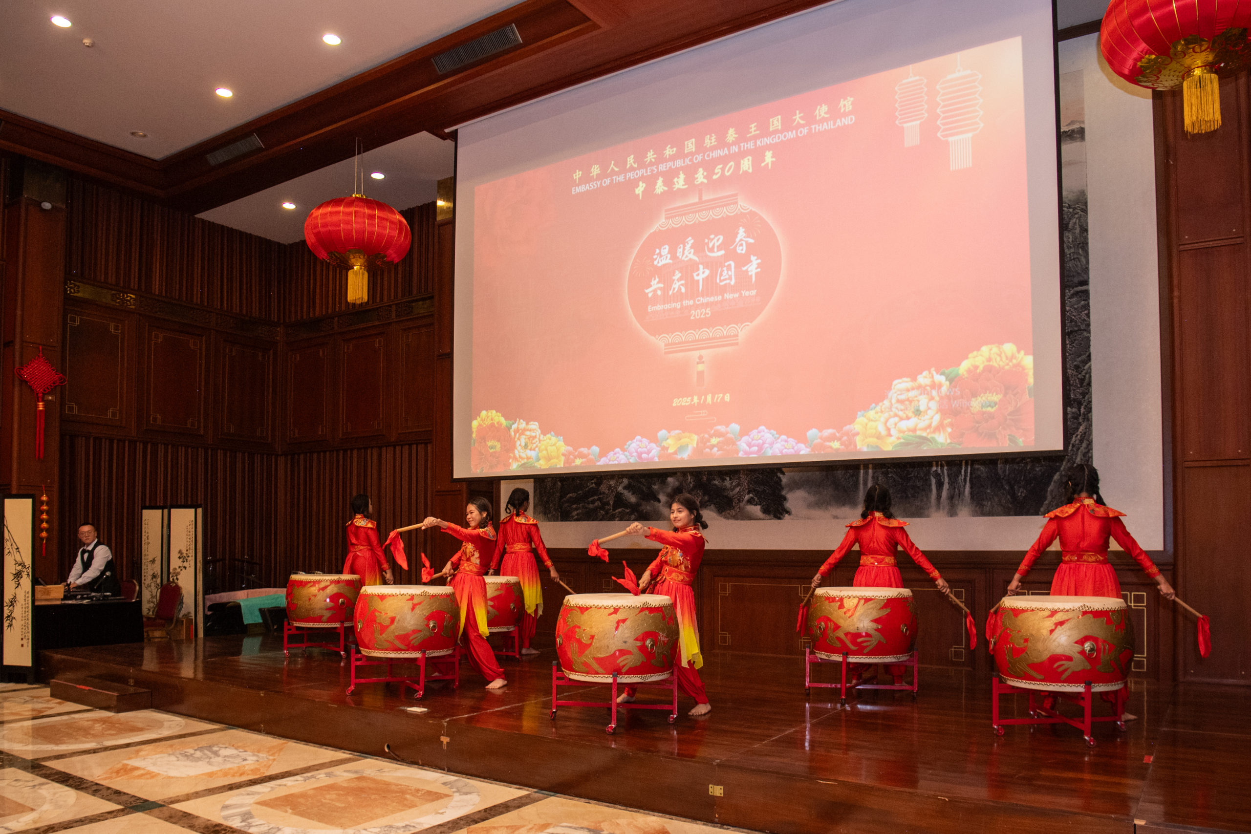 เมื่อวันที่ 17 มกราคม 2568 สถานเอกอัครราชทูตสาธารณรัฐประชาชนจีนประจำประเทศไทย ได้จัดงาน “ฉลองตรุษจีนและครบรอบ 50 ปี การสถาปนาความสัมพันธ์ทางการทูตระหว่างไทย-จีน” ณ สถานทูตจีน กรุงเทพฯ โดยมีเอกอัครราชทูตจีน นายหาน จื้อเฉียง เป็นประธานเปิดงาน ซึ่งเต็มไปด้วยบรรยากาศแห่งความอบอุ่นและมิตรภาพ