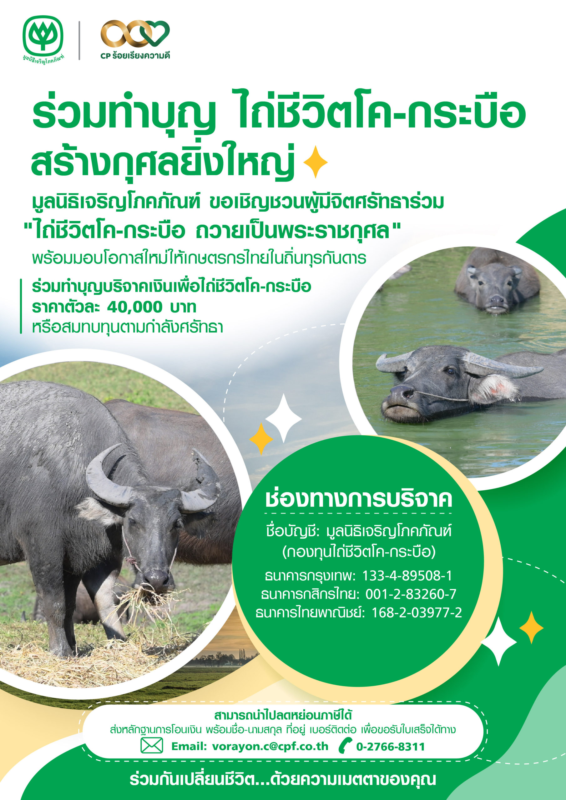 ✨ รวมพลังชาวซีพี สร้างกุศลยิ่งใหญ่ ด้วยการไถ่ชีวิตโค-กระบือ ✨