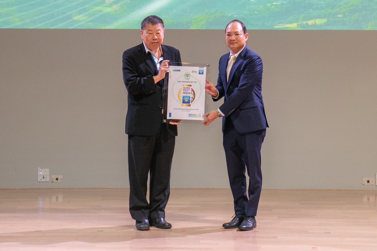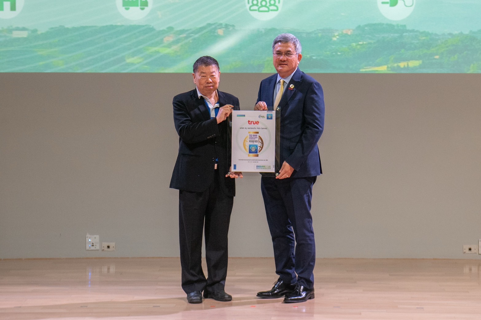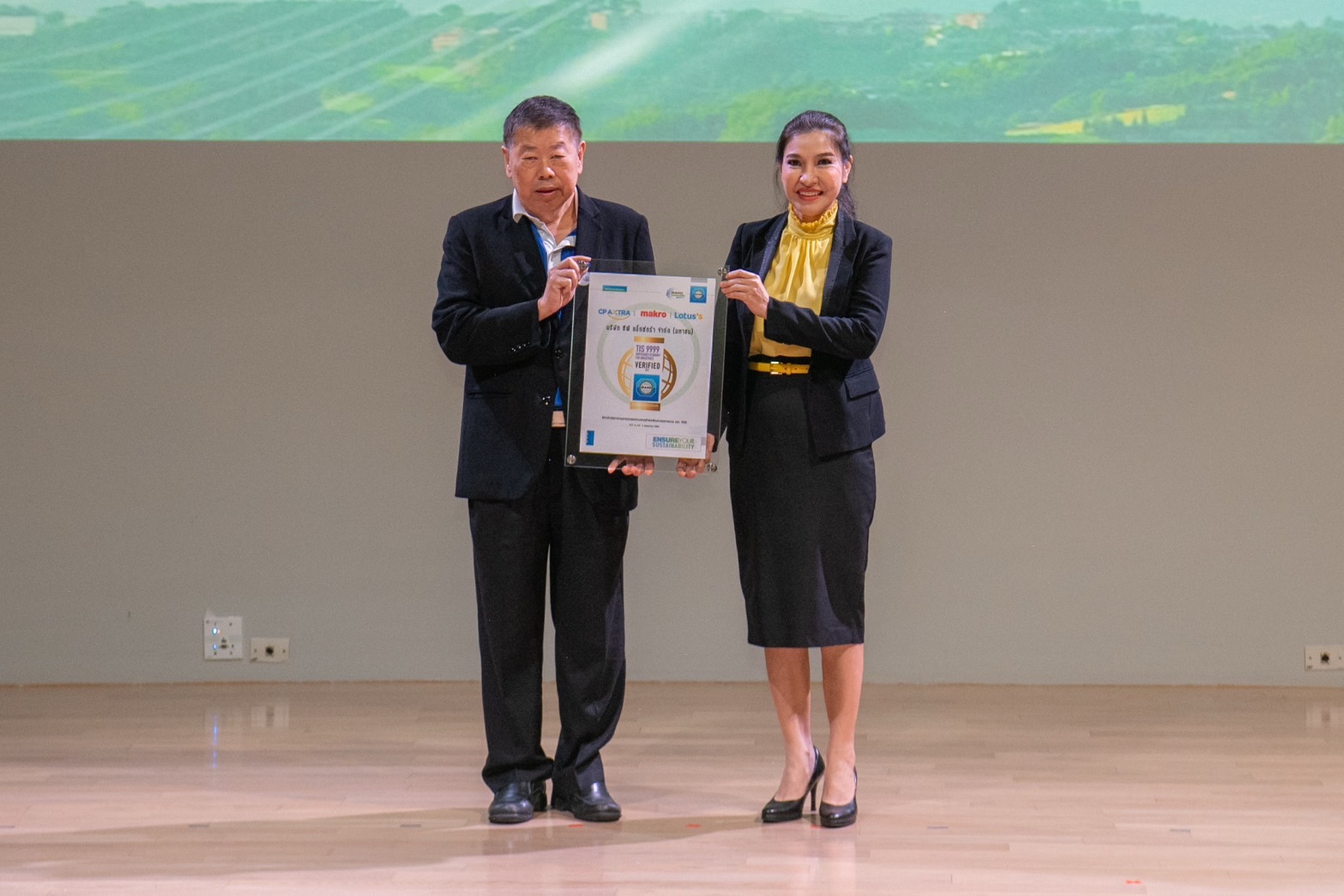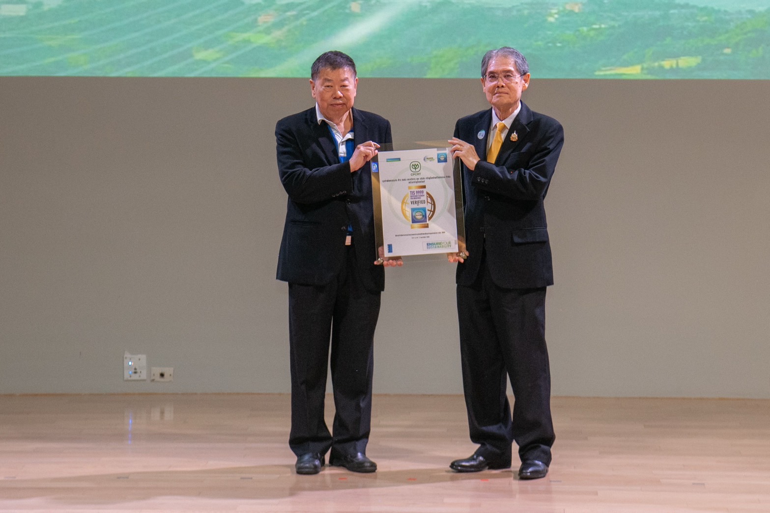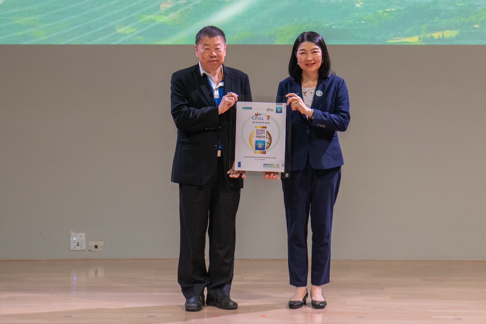 ภายในงานยังได้รับเกียรติจากคุณจงรักษ์ โรจน์พลาเสถียร ผู้อำนวยการสถาบันรับรองมาตรฐานไอเอสโอ (สรอ.) เป็นผู้มอบประกาศนียบัตรให้กับผู้แทนบริษัทในเครือซีพี โดยมีผู้บริหารระดับสูงของแต่ละบริษัทเข้ารับมอบ ได้แก่ ดร.ธีระพล ถนอมศักดิ์ยุทธ ประธานคณะผู้บริหาร ความยั่งยืนองค์กรและการพัฒนากลยุทธ์, คุณสมเจตนา ภาสกานนท์ รองกรรมการผู้จัดการอาวุโส ด้านความยั่งยืน, คุณเรวัติ หทัยสัตยพงศ์ ผู้อำนวยการใหญ่ ธุรกิจอาหารสัตว์บก ซีพีเอฟ, คุณมาลี อุทัยกิตติศัพท์ รองกรรมการผู้จัดการ บริษัท ซีพี ออลล์ จำกัด (มหาชน), คุณศิริพร เดชสิงห์ ประธานเจ้าหน้าที่บริหาร สายงานความยั่งยืนและสื่อสารองค์กร บริษัท ซีพี แอ็กซ์ตร้า จำกัด (มหาชน), คุณจักรกฤษณ์ อุไรรัตน์ หัวหน้าคณะผู้บริหารด้านกิจการองค์กร บมจ. ทรู คอร์ปอเรชั่น, คุณอดิศักดิ์ ประมวลมิตรา รักษาการประธานคณะผู้บริหารฝ่ายปฏิบัติการ บริษัท เจริญโภคภัณฑ์วิศวกรรม จำกัด และคุณชุมพล ลีละศุภพงษ์ ผู้ช่วยกรรมการผู้จัดการ บริษัท ซีพีแรม จำกัด