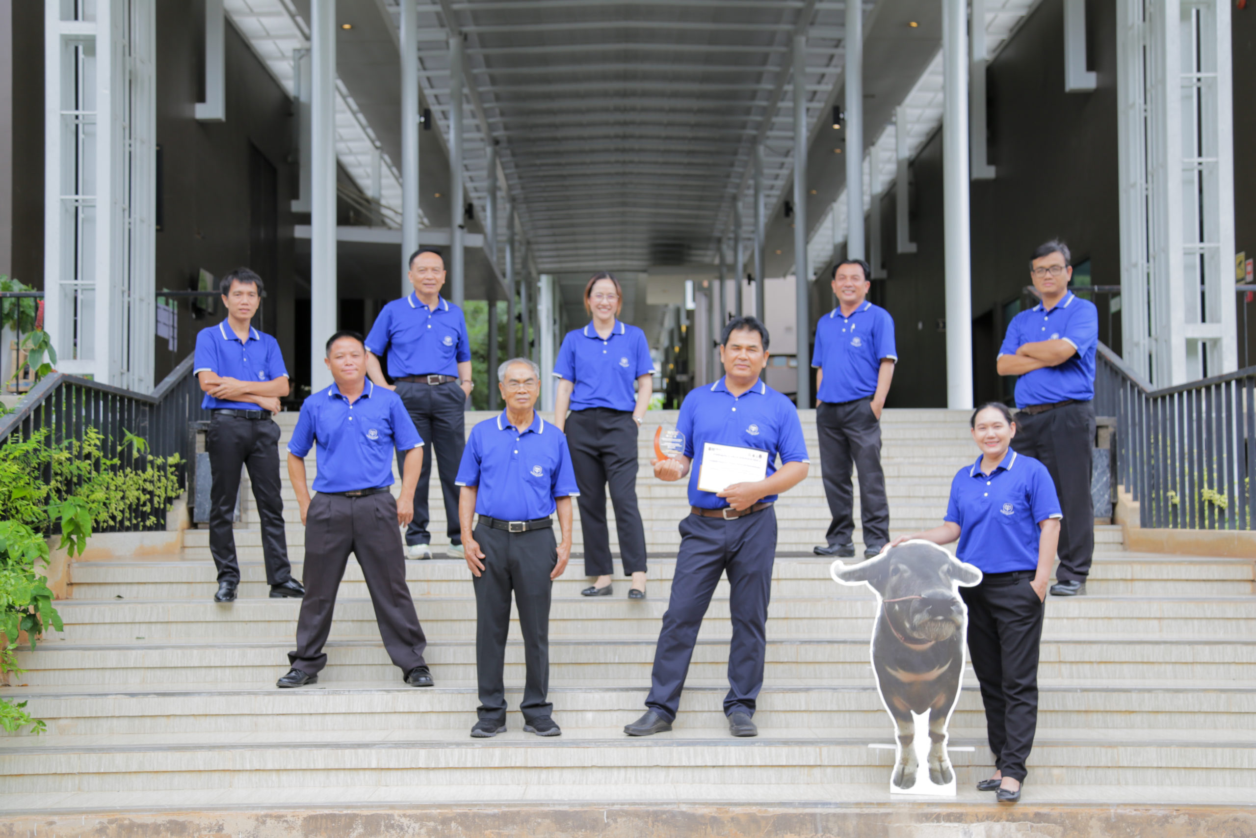 เมื่อวันที่ 23 กรกฎาคม 2568 ณ โรงแรมเดอะกรีนเนอรี่ รีสอร์ท เขาใหญ่ จังหวัดนครราชสีมา โครงการฟาร์มกระบือทันสมัย (Buffalo Modern Farm: BMF) โดย มูลนิธิเจริญโภคภัณฑ์ (ซีพี) ได้รับ รางวัล “นักวิจัยดีเด่นด้านกระบือไทย” ประจำปี 2568 ในสาขาผลงานด้านบริการวิชาการ ซึ่งเป็นหนึ่งในรางวัลเกียรติคุณ “ศาสตราจารย์เกียรติคุณ ดร.จรัญ จันทลักขณา” จากการประชุมวิชาการสัตวศาสตร์แห่งชาติ ครั้งที่ 13 และการประชุมภาคีเครือข่ายสัตวศาสตร์แห่งประเทศไทย ครั้งที่ 17 จัดโดยสมาคมสัตวบาลแห่งประเทศไทย ในพระราชูปถัมภ์ สมเด็จพระเทพรัตนราชสุดาฯ สยามบรมราชกุมารี ร่วมกับเครือข่ายสถาบันการศึกษาด้านสัตวศาสตร์ทั่วประเทศ รางวัลอันทรงเกียรตินี้มีวัตถุประสงค์เพื่อยกย่องหน่วยงานและบุคคลที่มีผลงานโดดเด่นในการพัฒนากระบือไทย ทั้งในด้านการวิจัย บริการวิชาการ และการส่งเสริมองค์ความรู้สู่ชุมชน ซึ่งในปีนี้ คุณสุพชัย ปัญญาเอก ผู้จัดการโครงการฟาร์มกระบือทันสมัย (BMF) พร้อมด้วยคณะทำงาน ได้แก่ ดร.สวัสดิ์ ธรรมบุตร รองประธานโครงการฯ คุณสารกิจ ถวิลประวัติ รองประธานโครงการฯ คุณสุปรี เบ้าสิงห์สวย ที่ปรึกษาด้านปฏิบัติการเพื่อสังคม คุณวรยล ชมะฤกษ์ เลขานุการโครงการ คุณวรรณฤดี อิสระพานิชย์ ฝ่ายประชาสัมพันธ์ รวมถึงสัตวบาลอาวุโส ได้แก่ คุณอนุพงศ์ รักษากิจ คุณอณุสรณ์ ศรีแสน คุณอดุลเดช คำภีระ และคุณสมพิศ แข็งแรง ได้รับการคัดเลือกจากคณะกรรมการผู้ทรงคุณวุฒิให้รับรางวัลในฐานะผู้มีบทบาทสำคัญในการขับเคลื่อนการพัฒนากระบือไทยอย่างเป็นรูปธรรมและยั่งยืน นอกจากนี้ รองศาสตราจารย์ ดร.ศกร คุณวุฒิฤทธิรณ อาจารย์ประจำหน่วยวิจัยเฉพาะทางพันธุศาสตร์สัตว์เขตร้อนชื้น (TAGU) ภาควิชาสัตวบาล คณะเกษตร มหาวิทยาลัยเกษตรศาสตร์ ยังได้รับรางวัล “นักวิจัยดีเด่นด้านกระบือไทย” ในสาขาผลงานด้านการวิจัยอีกด้วย