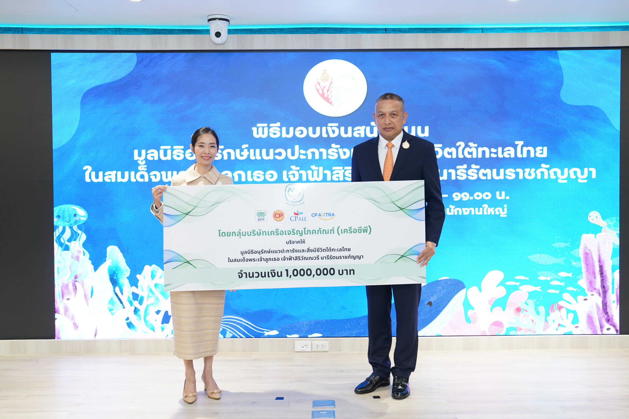 ในโอกาสนี้ เครือเจริญโภคภัณฑ์ (ซีพี) ร่วมเป็นหนึ่งในองค์กรภาคเอกชนที่ให้การสนับสนุนมูลนิธิอนุรักษ์แนวปะการังและสิ่งมีชีวิตใต้ทะเลไทยฯ รวมมูลค่ากว่า 3,000,000 บาท เพื่อสานต่อพระดำริของสมเด็จพระเจ้าลูกเธอ เจ้าฟ้าสิริวัณณวรี นารีรัตนราชกัญญา ในการอนุรักษ์และฟื้นฟูทรัพยากรทางทะเลของประเทศไทยให้คงอยู่อย่างยั่งยืน โดยการสนับสนุนดังกล่าวประกอบด้วยการมอบเงินสนับสนุนมูลนิธิฯ จำนวน 1,000,000 บาท โดยมี คุณรุจนาฎก์ วิมลสถิตย์ รองกรรมการผู้จัดการใหญ่อาวุโส ด้านบรรษัทสัมพันธ์ เครือเจริญโภคภัณฑ์ เป็นผู้แทนเครือเจริญโภคภัณฑ์มอบเงินสนับสนุนแก่มูลนิธิฯ ในพิธีดังกล่าว