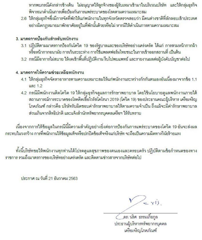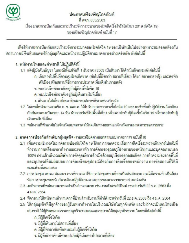 ประกาศเครือเจริญโภคภัณฑ์ เรื่อง มาตรการป้องกันและการเฝ้าระวังการระบาด Covid-19 ฉบับที่ 17 21 ธันวาคม 256313 มกราคม 2021SystemNews, กิจกรรมเพื่อสังคม, มาตรการป้องกันcovid-19 Post Views: 2,407