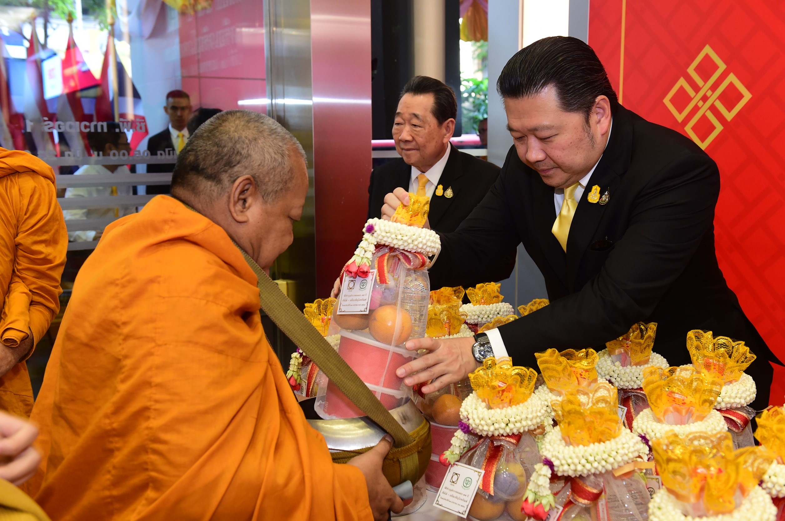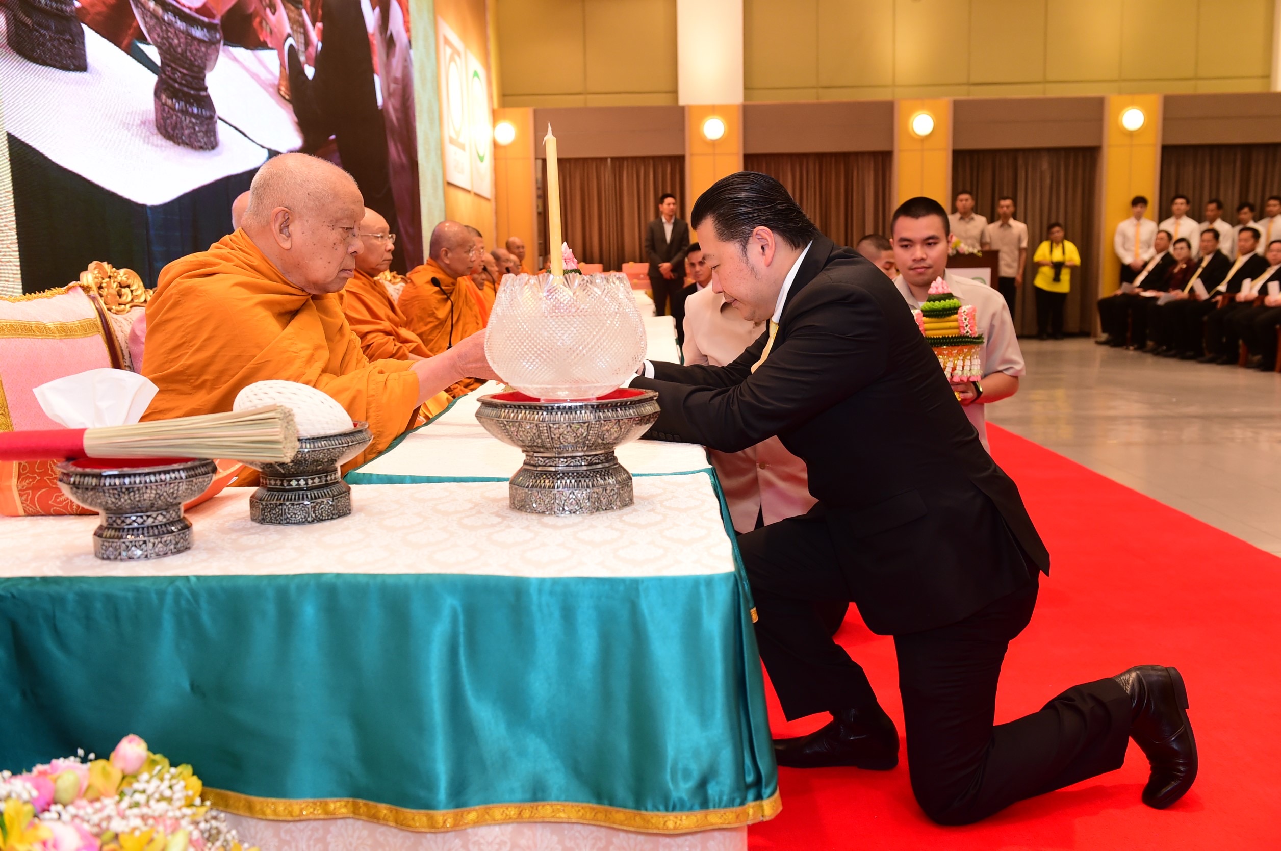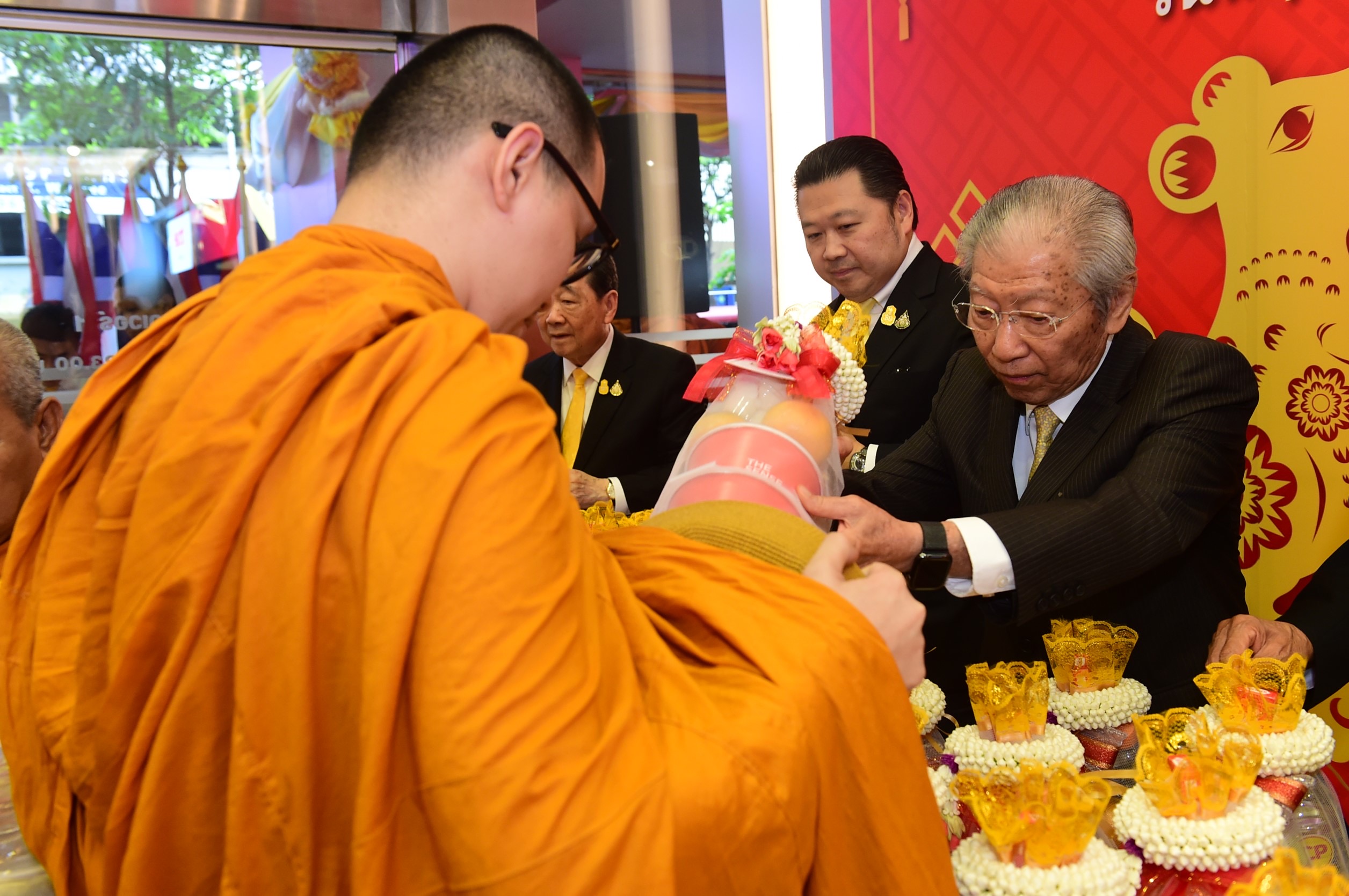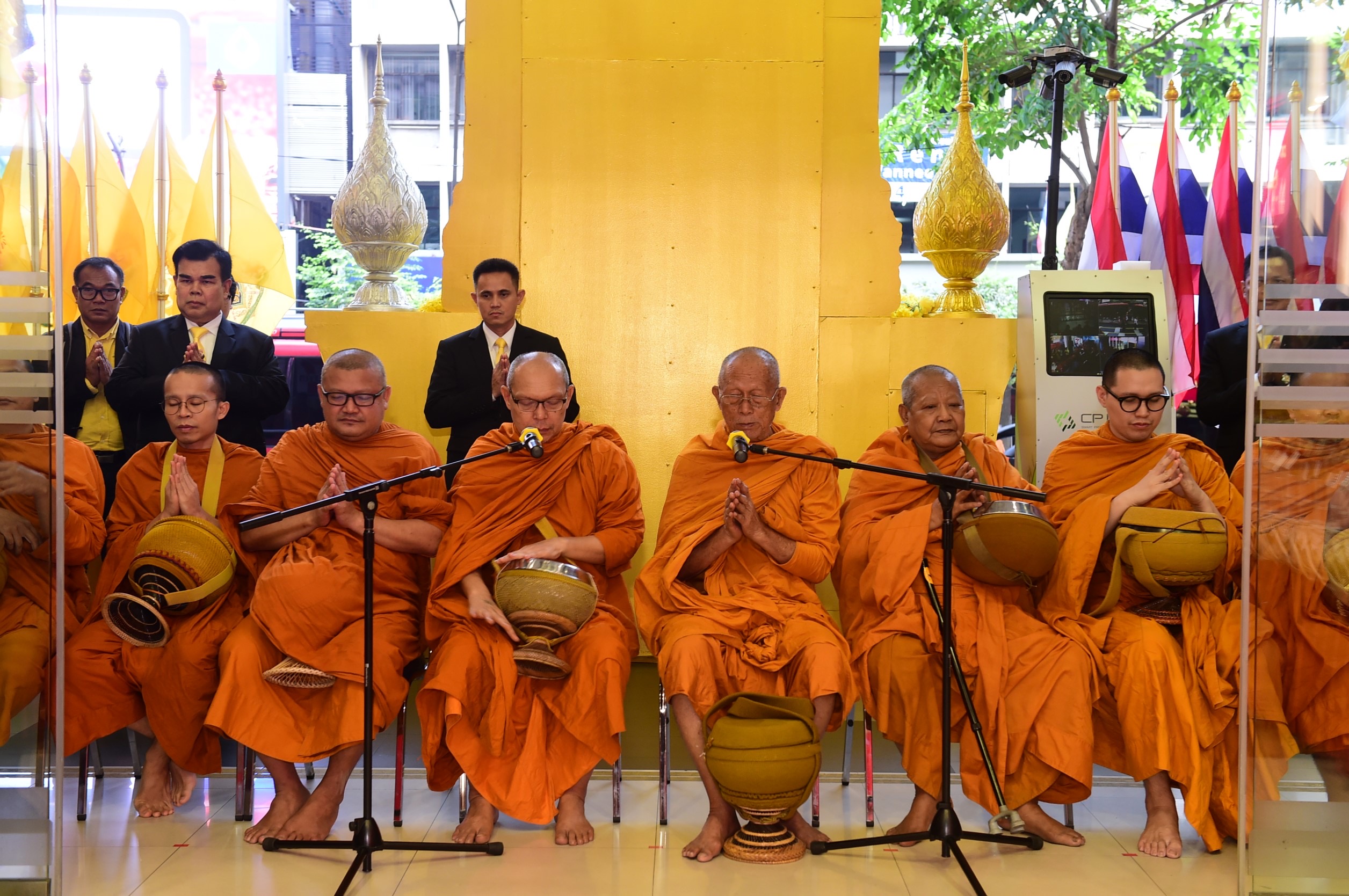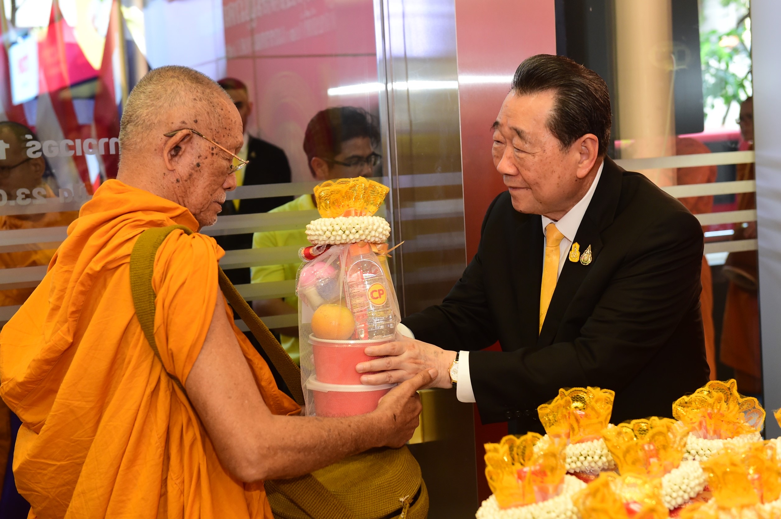 โดยเริ่มจากพิธีการไหว้ศาลพระชัยมงคล ก่อนทำบุญตักบาตรพระสงฆ์ ๑๐๐ รูปที่บริเวณโถงชั้น ๑ และประกอบพิธีเจริญพระพุทธมนต์ เลี้ยงพระ ถวายปัจจัยไทยธรรม โดยมีท่านเจ้าประคุณสมเด็จพระวันรัต กรรมการมหาเถรสมาคม เจ้าอาวาสวัดบวรนิเวศราชวรวิหาร เป็นประธานในพิธีสงฆ์ พร้อมด้วยเจ้าอาวาสจากวัดต่างๆ จำนวน ๑๒ รูป และได้ประทานสัมโมทนียกถา พร้อมประพรมน้ำพระพุทธมนต์ เพื่อความเป็นสิริมงคลแก่ผู้บริหารและพนักงานเครือเจริญโภคภัณฑ์และบริษัทในเครือฯ