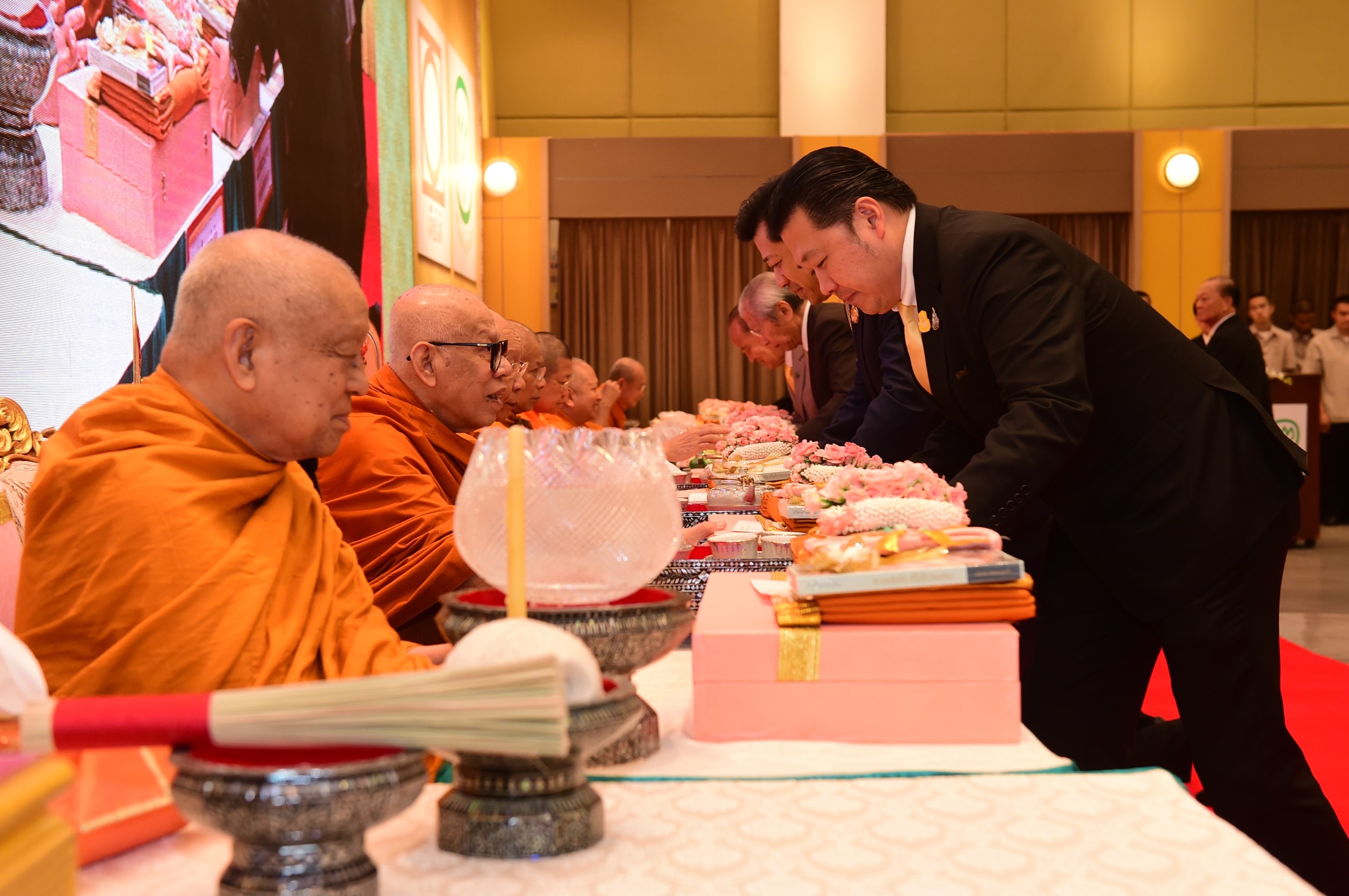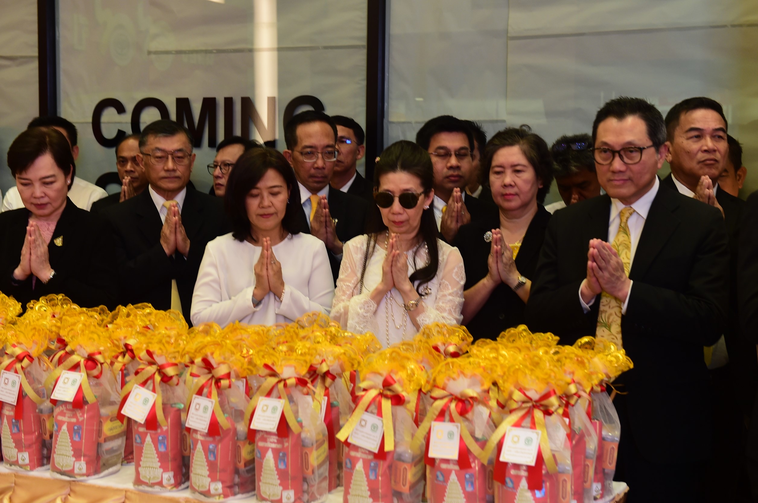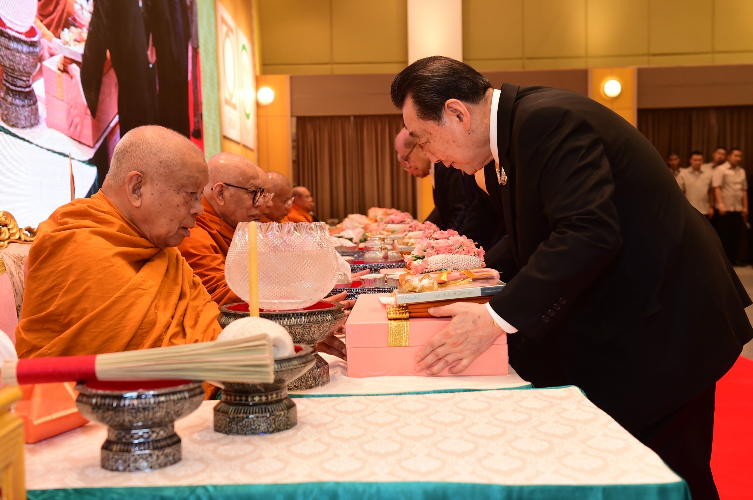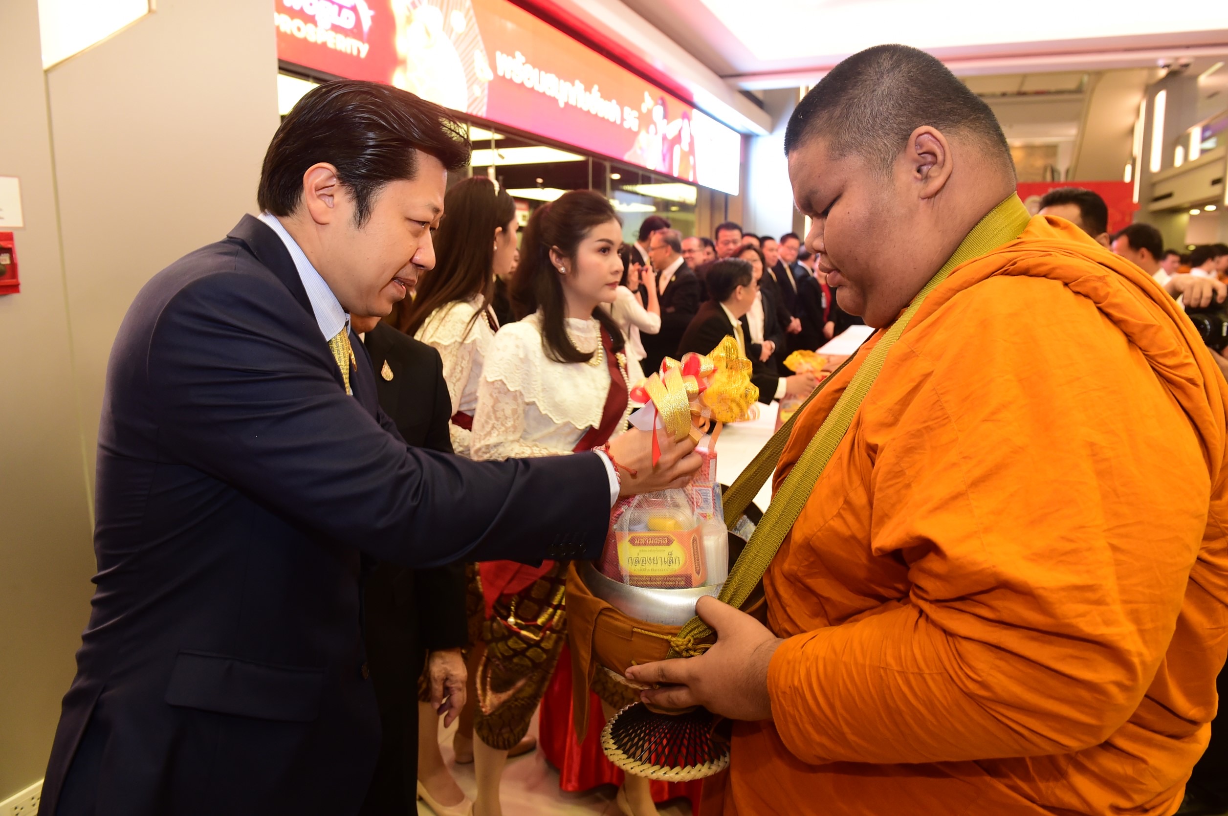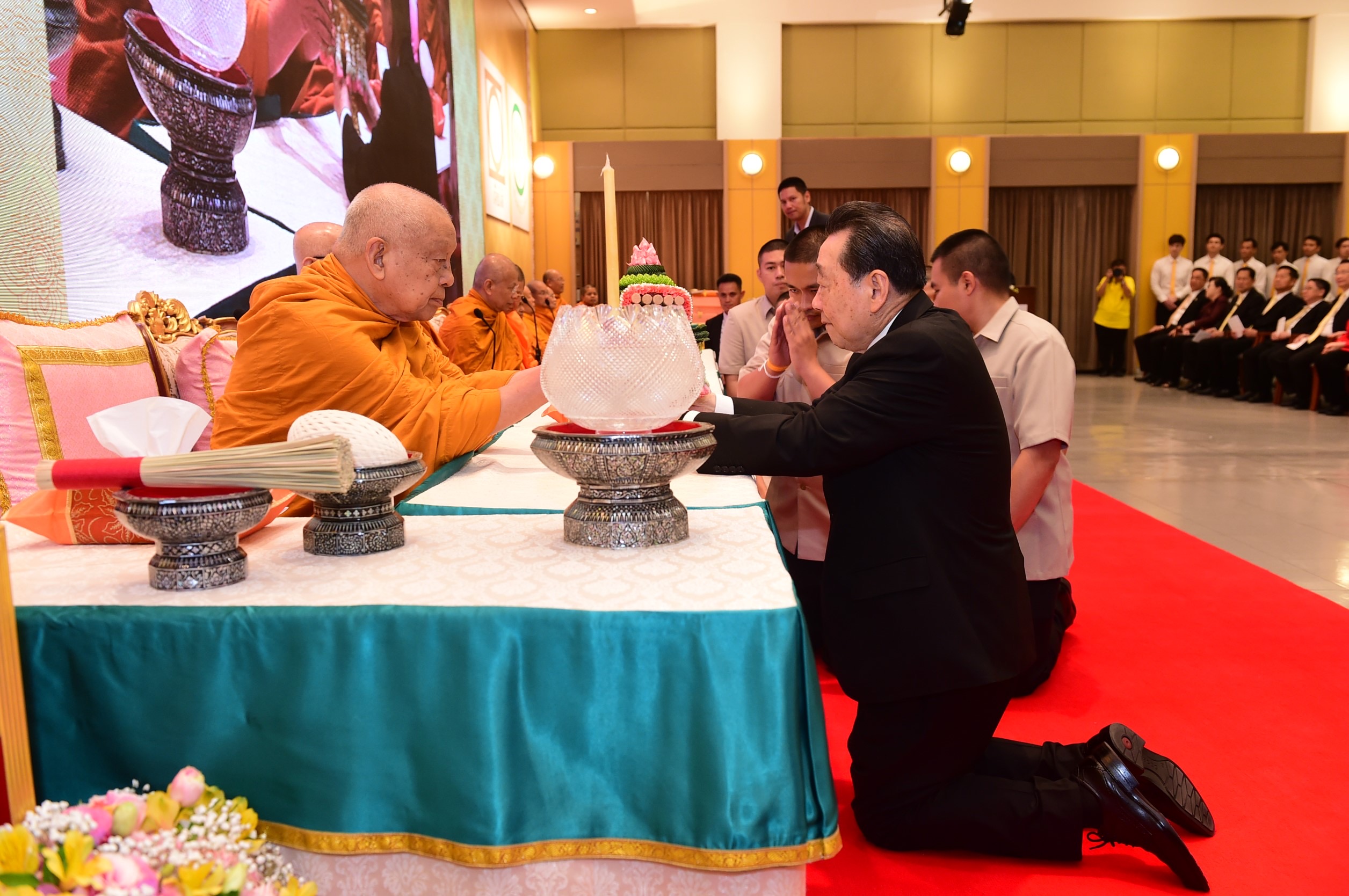 โดยเริ่มจากพิธีการไหว้ศาลพระชัยมงคล ก่อนทำบุญตักบาตรพระสงฆ์ ๑๐๐ รูปที่บริเวณโถงชั้น ๑ และประกอบพิธีเจริญพระพุทธมนต์ เลี้ยงพระ ถวายปัจจัยไทยธรรม โดยมีท่านเจ้าประคุณสมเด็จพระวันรัต กรรมการมหาเถรสมาคม เจ้าอาวาสวัดบวรนิเวศราชวรวิหาร เป็นประธานในพิธีสงฆ์ พร้อมด้วยเจ้าอาวาสจากวัดต่างๆ จำนวน ๑๒ รูป และได้ประทานสัมโมทนียกถา พร้อมประพรมน้ำพระพุทธมนต์ เพื่อความเป็นสิริมงคลแก่ผู้บริหารและพนักงานเครือเจริญโภคภัณฑ์และบริษัทในเครือฯ