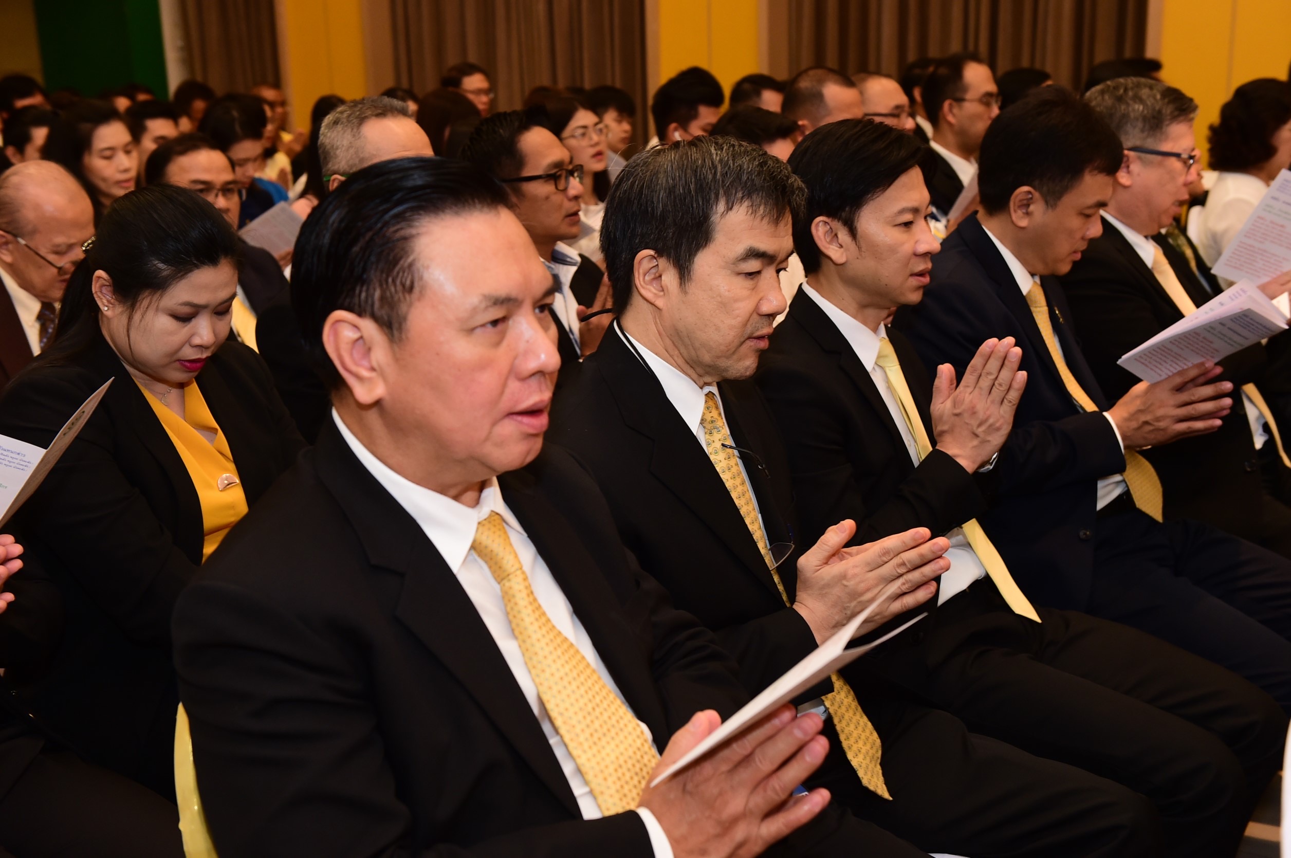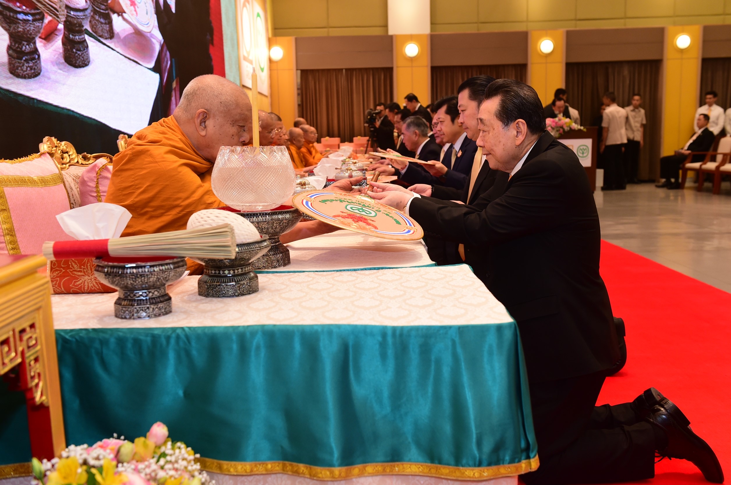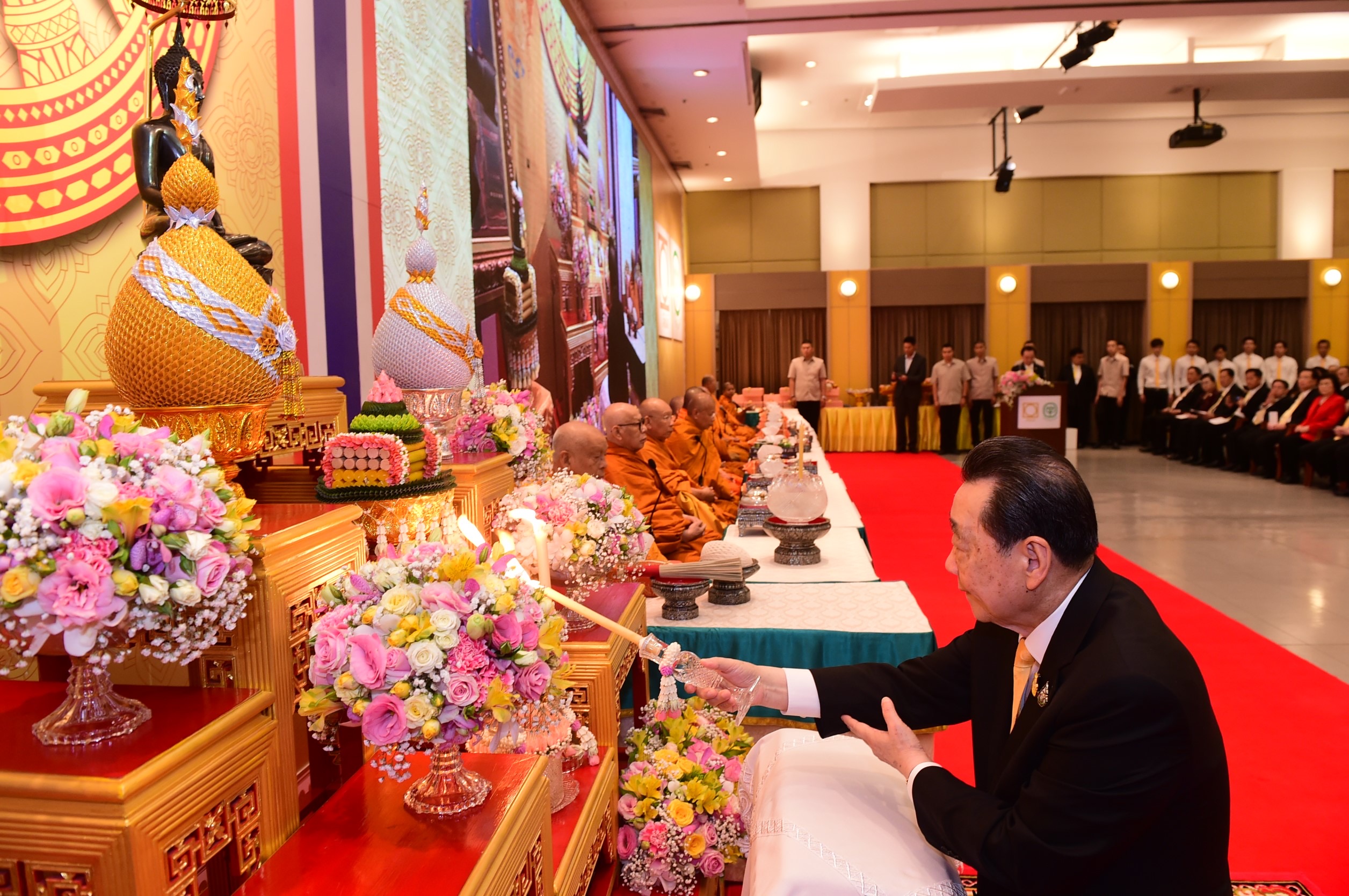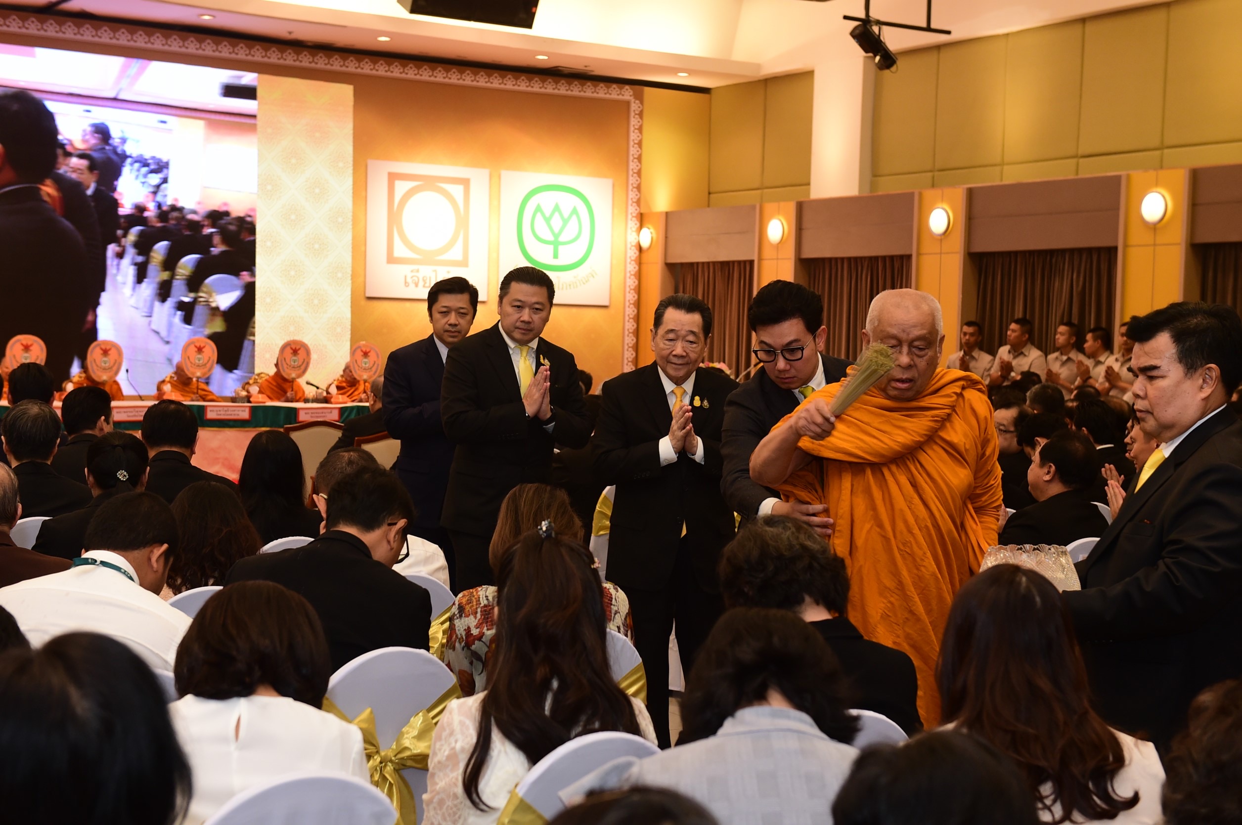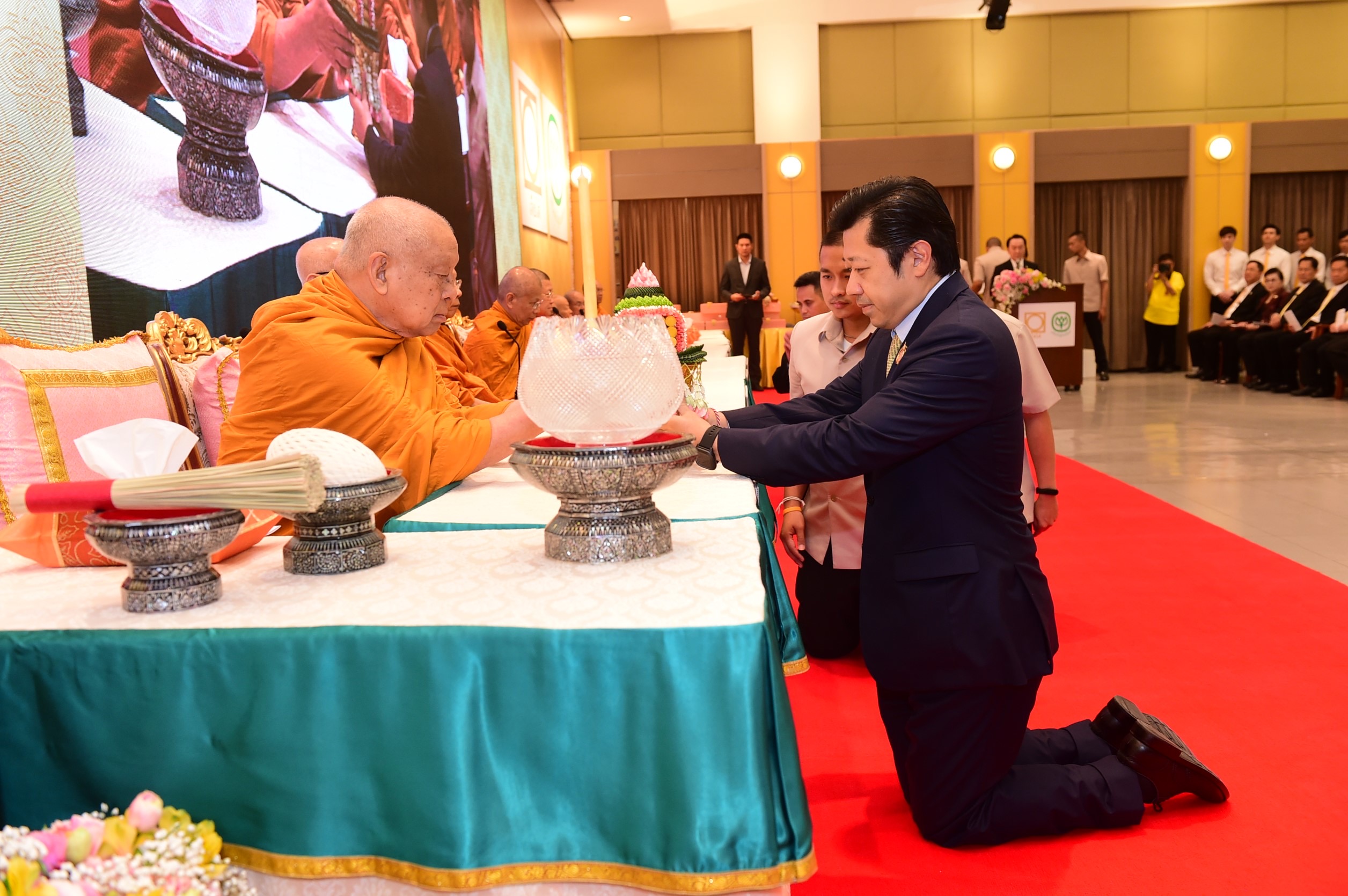 โดยเริ่มจากพิธีการไหว้ศาลพระชัยมงคล ก่อนทำบุญตักบาตรพระสงฆ์ ๑๐๐ รูปที่บริเวณโถงชั้น ๑ และประกอบพิธีเจริญพระพุทธมนต์ เลี้ยงพระ ถวายปัจจัยไทยธรรม โดยมีท่านเจ้าประคุณสมเด็จพระวันรัต กรรมการมหาเถรสมาคม เจ้าอาวาสวัดบวรนิเวศราชวรวิหาร เป็นประธานในพิธีสงฆ์ พร้อมด้วยเจ้าอาวาสจากวัดต่างๆ จำนวน ๑๒ รูป และได้ประทานสัมโมทนียกถา พร้อมประพรมน้ำพระพุทธมนต์ เพื่อความเป็นสิริมงคลแก่ผู้บริหารและพนักงานเครือเจริญโภคภัณฑ์และบริษัทในเครือฯ