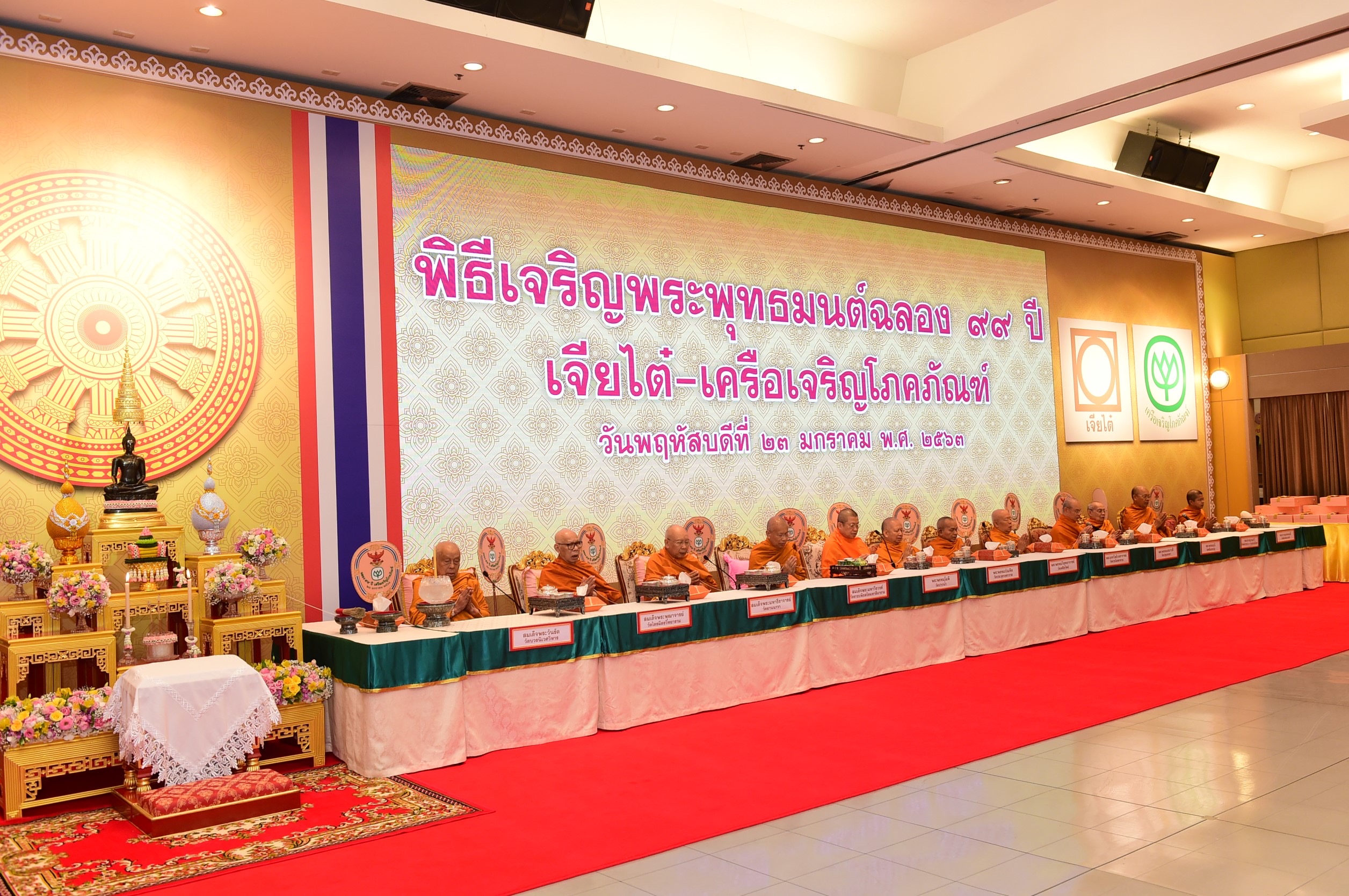 วันนี้ (๒๓ มกราคม ๒๕๖๓)  ณ อาคาร ซี.พี.ทาวเวอร์ ถนนสีลม เจียไต๋และเครือเจริญโภคภัณฑ์ จัดพิธีเจริญพระพุทธมนต์ฉลอง ๙๙ ปี เจียไต๋-เครือเจริญโภคภัณฑ์ นำโดย ประธานธนินท์ เจียรวนนท์ ประธานอาวุโส เครือเจริญโภคภัณฑ์ คุณสุภกิต เจียรวนนท์ ประธานกรรมการ เครือฯ คุณศุภชัย เจียรวนนท์ ประธานคณะผู้บริหาร เครือฯ พร้อมด้วยผู้บริหารระดับสูงและพนักงานจากทุกกลุ่มธุรกิจในเครือเข้าร่วมอย่างคึกคัก