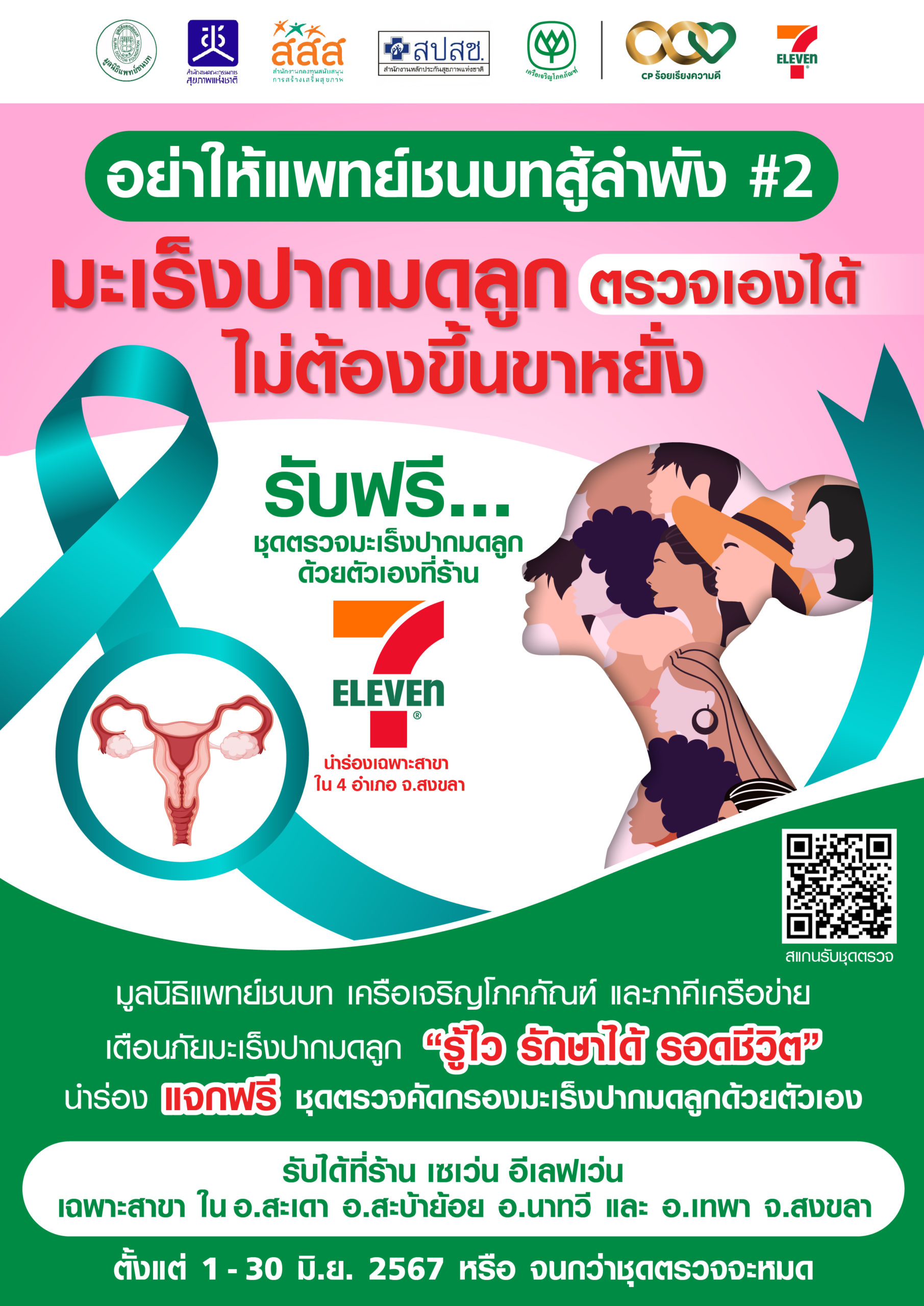 📢✅✅✅ตั้งแต่ 1 – 30 มิ.ย. 2567 หรือจนกว่าจะหมด #รับฟรีชุดตรวจมะเร็งปากมดลูก ที่ ร้าน เซเว่น อีเลฟเว่น จ.สงขลา สาขา อ.สะเดา อ.สะบ้าย้อย อ.นาทวี และ อ.เทพา ✅✅✅