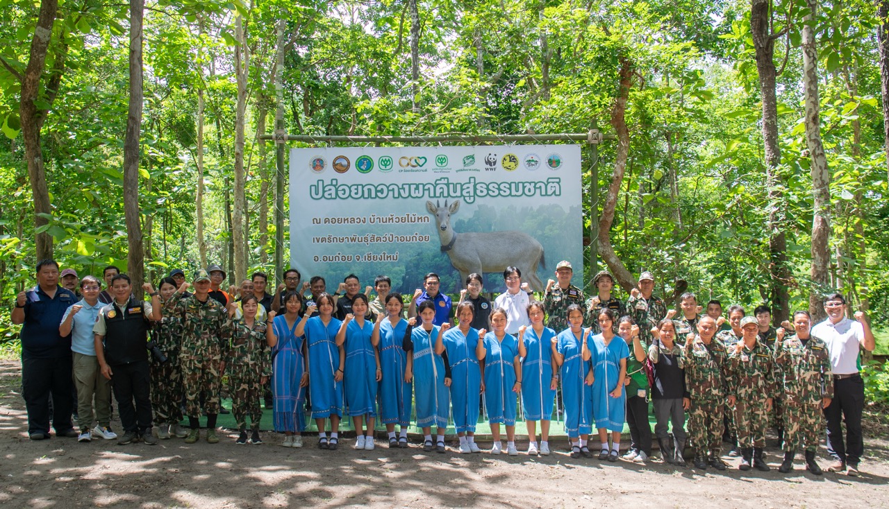 คุณภานุเดช เกิดมะลิ ประธานมูลนิธิสืบนาคะเสถียร กล่าวว่า สถานีเพาะเลี้ยงสัตว์ป่าอมก๋อย ถือเป็นหน่วยงานหลักของประเทศไทย ที่เป็นแหล่งเพาะพันธุ์ “กวางผา” และดูแลเรื่องพันธุกรรมของกวางผาทั้งในกรงเลี้ยงและในธรรมชาติ โดยกวางผาที่ปล่อยคืนสู่ธรรมชาติทั้ง 5 ตัวนี้ เพาะเลี้ยงและดำเนินการปรับสภาพก่อนปล่อยไม่น้อยกว่า 6 เดือน โดยทีมงานสถานีเพาะเลี้ยงสัตว์ป่าอมก๋อย และจะมีการติดตามหลังการปล่อยด้วยเช่นกัน ซึ่งในช่วง 3 ปีที่ผ่านมา มีการปล่อยคืนกวางผาสู่ธรรมชาติในพื้นที่อนุรักษ์ทางภาคเหนือของไทยอย่างต่อเนื่อง เพื่อการฟื้นฟูประชากรกวางผาในธรรมชาติ และเพิ่มความหลากหลายทางพันธุกรรมกวางผาในพื้นที่มาโดยตลอด ทั้งหมดนี้ได้รับการสนับสนุนการดำเนินงานจากมูลนิธิเจริญโภคภัณฑ์พัฒนาชีวิตชนบท มูลนิธิสืบฯ ขอขอบคุณมูลนิธิเจริญโภคภัณฑ์พัฒนาชีวิตชนบท และพี่น้องชาวอมก๋อย ที่ช่วยกันดูแล ปกป้อง สัตว์ป่าสงวนที่สำคัญของชาวไทยชนิดนี้เอาไว้อย่างดี และขอทิ้งท้ายฝากถึงพี่น้องคนอมก๋อยว่าท่านมีของดีอยู่กับตัวเลยนะครับ