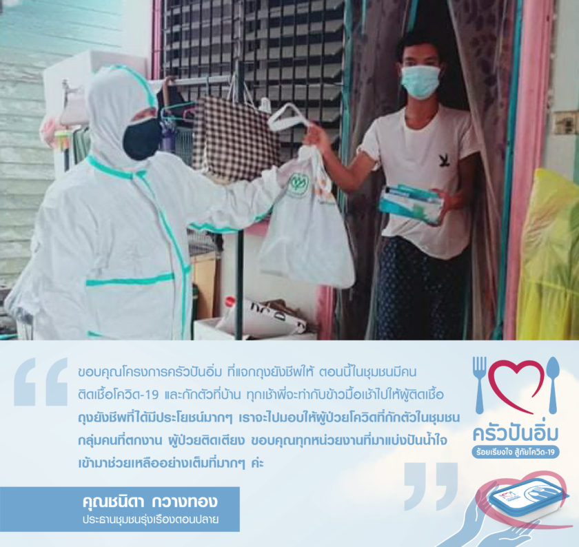 “ขอเป็นตัวแทนชาวชุมชนรุ่งเรืองตอนปลายกราบขอบคุณเครือเจริญโภคภัณฑ์ ที่มอบถุงยังชีพ ให้ผู้ป่วยติดเชื้อโควิดในชุมชน ผู้กักตัว ผู้ป่วยติดเตียง และผู้ที่ได้รับผลกระทบจากโควิด ทำให้ช่วยแบ่งเบาภาระค่าใช้จ่าย และอิ่มท้องไปได้หลายมื้อค่ะ ขอบพระคุณอย่างสูง”