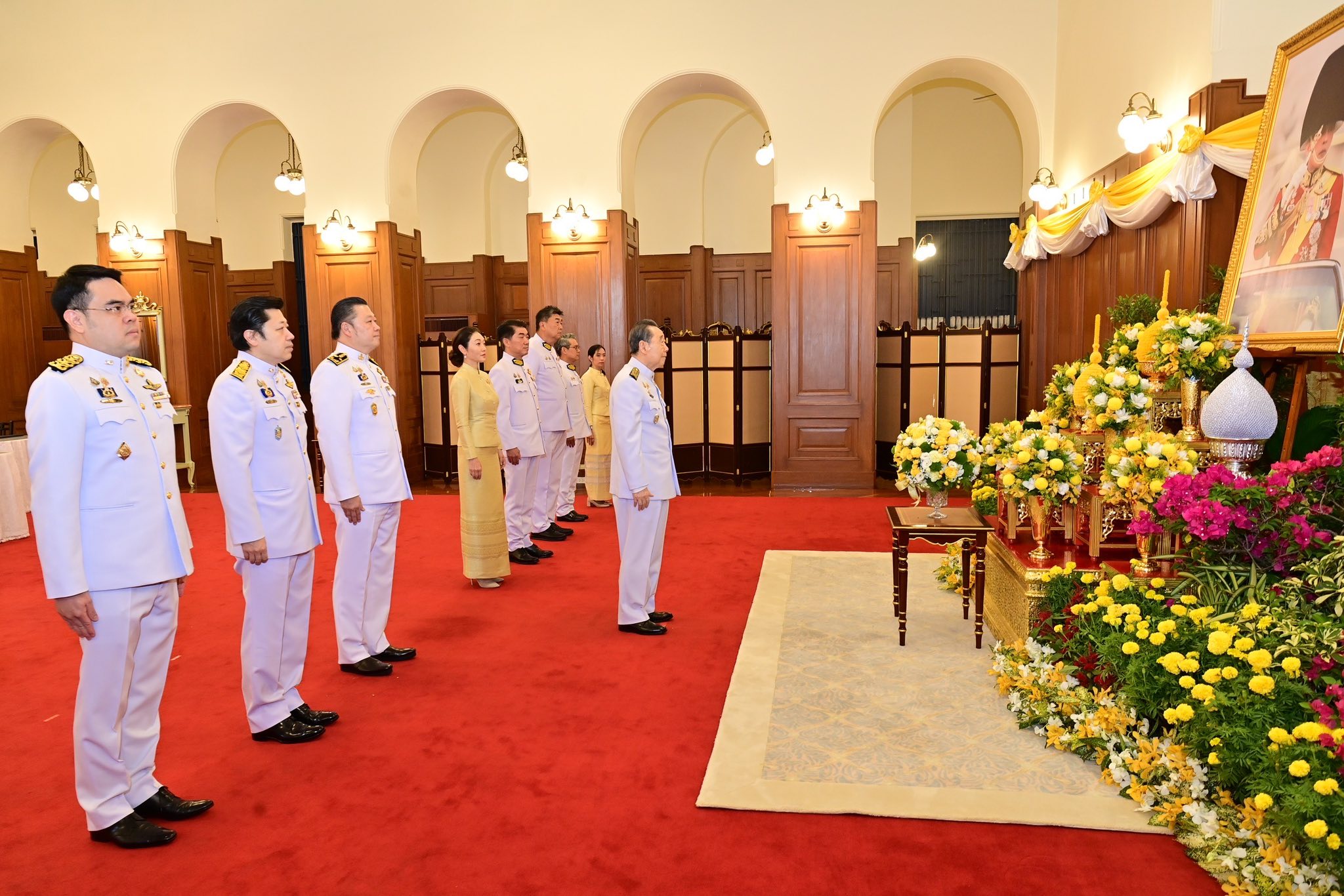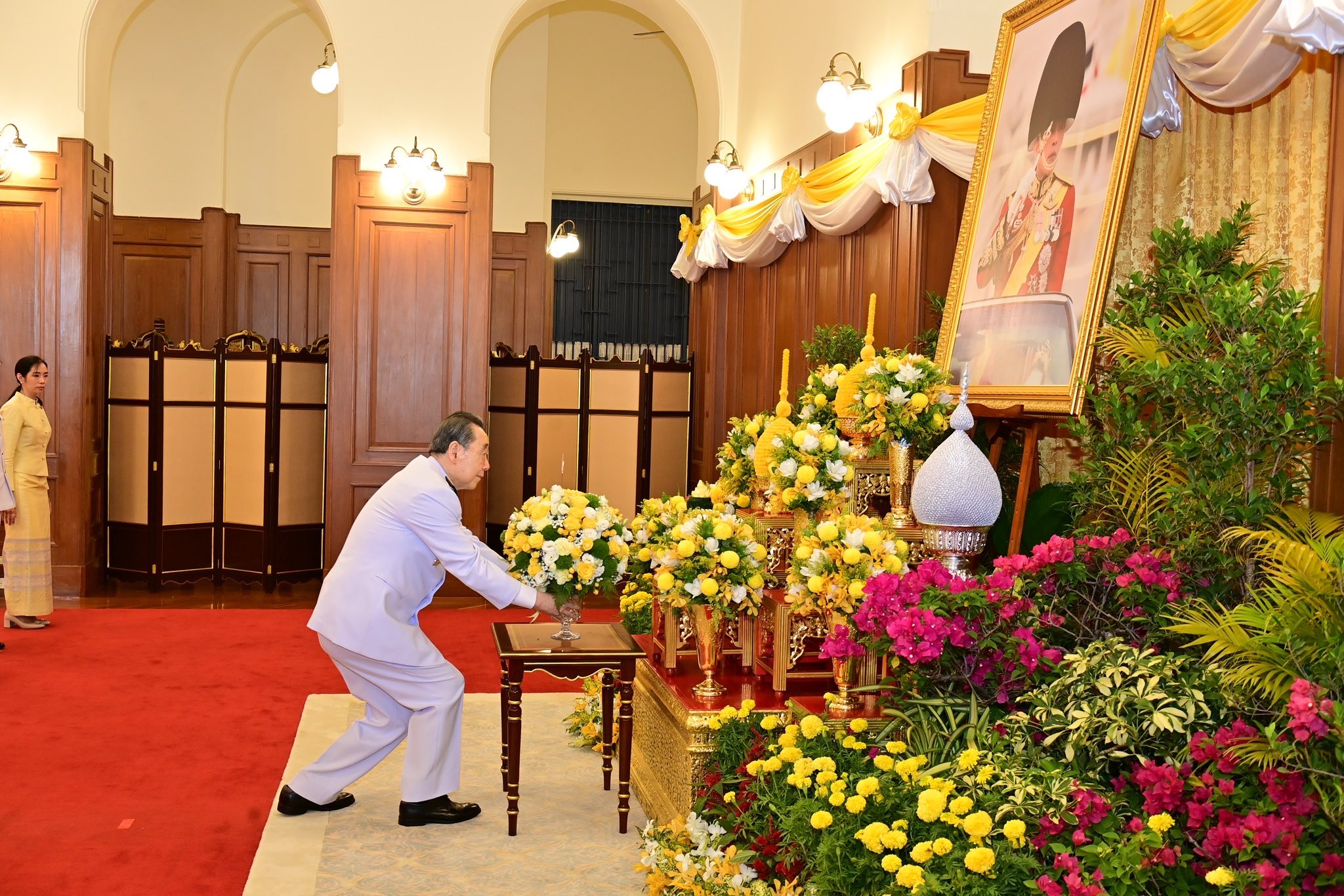 ต่อมาเมื่อเวลา 08.30 น. ท่านประธานอาวุโส ธนินท์ เจียรวนนท์ พร้อมด้วย คุณสุภกิต เจียรวนนท์ ประธานกรรมการ คุณมาริษา เจียรวนนท์ คุณศุภชัย เจียรวนนท์ ประธานคณะผู้บริหาร คุณภัคพล งามลักษณ์ ประธานคณะผู้บริหารด้านปฏิบัติการ คุณประสิทธิ์ บุญดวงประเสริฐ ประธานคณะผู้บริหาร บริษัท เจริญโภคภัณฑ์อาหาร จำกัด (มหาชน) คุณสมศักดิ์ เลิศชัย ประธานคณะผู้บริหาร บริษัท ซีพีพีซี จำกัด (มหาชน) และ คุณกีรติ ศตะสุข ประธานเจ้าหน้าที่บริหาร บริษัท ซี.พี. แลนด์ จำกัด (มหาชน) ทูลเกล้าฯ ถวายแจกันดอกไม้ หน้าโต๊ะหมู่ประดิษฐานพระบรมฉายาลักษณ์ พระบาทสมเด็จพระปรเมนทรรามาธิบดีศรีสินทรมหาวชิราลงกรณ พระวชิรเกล้าเจ้าอยู่หัว ในโอกาสวันเฉลิมพระชนมพรรษา ณ ศาลาสหทัยสมาคม ภายในพระบรมมหาราชวัง