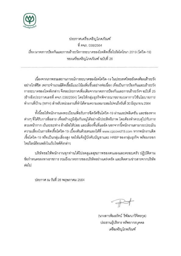 มาตรการป้องกันและการเฝ้าระวังการระบาดของโรคติดเชื้อไวรัสโคโรนา 2019 (โควิด-19) ของเครือเจริญโภคภัณฑ์ ฉบับที่ 26 29 พฤษภาคม 2564SystemNews, กิจกรรมเพื่อสังคม, มาตรการป้องกันcovid-19 Post Views: 1,946