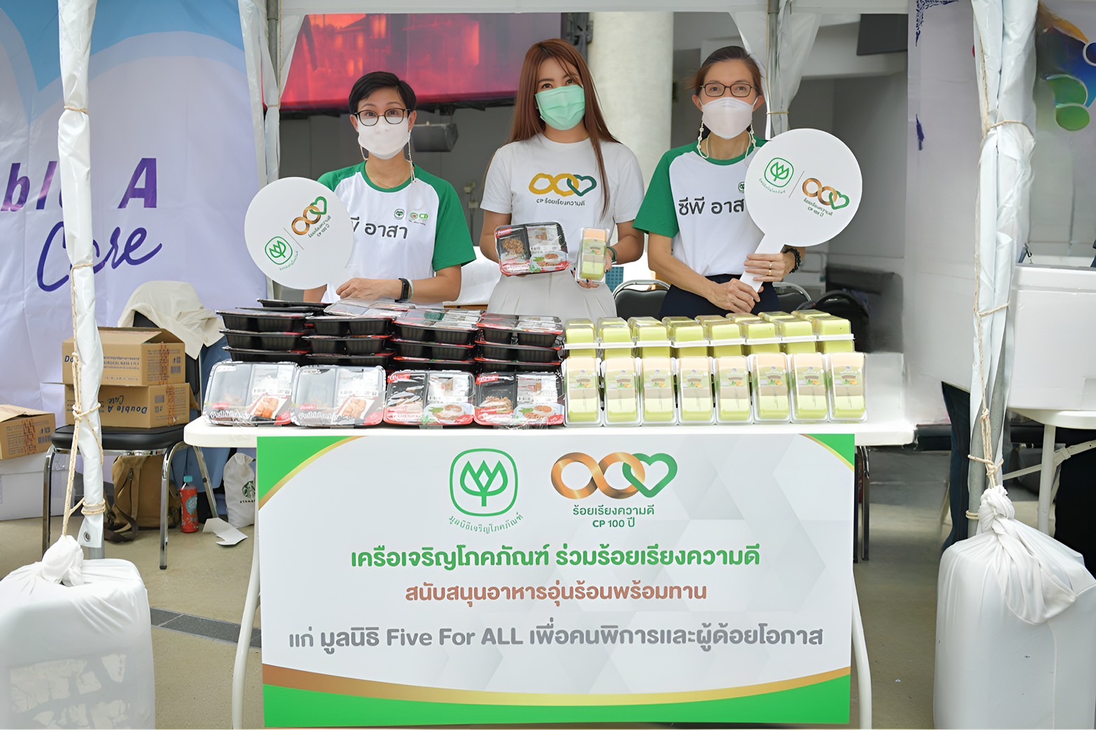 เครือซีพีร้อยเรียงความดี สนับสนุนการจัดงาน อาหาร เเละขนม โดยมี คุณจอมกิตติ ศิริกุล รองกรรมการผู้จัดการใหญ่อาวุโสด้านพัฒนาความยั่งยืนภาครัฐและกิจการสัมพันธ์ เครือเจริญโภคภัณฑ์ และผู้ช่วยบริหารสำนักประธานคณะกรรมการบริหาร บริษัท เจริญโภคภัณฑ์อาหาร จำกัด (มหาชน) เป็นผู้แทนฯ มอบแด่ ดร.ชนัญกร สุวรรณชื่นประธานมูลนิธิ Five for All ณ ลานอัฒจันทร์ Siam Square กรุงเทพฯ ภายในงานเป็นการแสดงความสามารถของเด็กพิการ ร่วมกับศิลปินที่มีชื่อเสียงมากมายและการแสดงดนตรีคนพิการ ศิลปินรับเชิญ ร่วมสร้างความสุขแก่ผู้มาร่วมงาน พร้อมทั้งมีบูธผลิตภัณฑ์คนพิการ และนวัตกรรมอุปกรณ์ เครื่องช่วยเหลือ หุ่นยนต์ แก่คนพิการ ตลอดถนน walking street สยามสเเควร์ มีผู้เข้าร่วมงานกว่า 500 คน