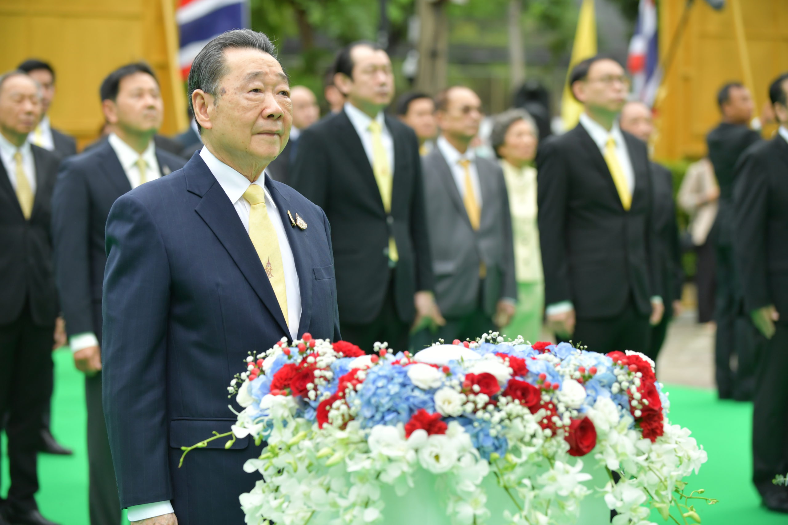 คุณธนินท์ เจียรวนนท์ ประธานอาวุโส บริษัท เครือเจริญโภคภัณฑ์ จำกัด กล่าวว่า ซีพีเติบโตมาจนถึงปัจจุบันมีอายุครบ 100 ปีไปเมื่อพ.ศ.2564 ด้วยอาศัยอยู่บนผืนแผ่นดินไทยที่สงบสุขร่มเย็นเพราะได้อยู่ใต้ร่มโพธิสมภารของพระมหากษัตริย์ทุกพระองค์ ทำให้กิจการได้เติบโตก้าวหน้า ขยายการลงทุนไปอีกใน 21 ประเทศและเขตเศรษฐกิจ ทุกประเทศที่ซีพีเข้าไปลงทุน สำนักงานทุกแห่งจะต้องมีพระบรมฉายาลักษณ์ของในหลวงและราชินี และที่สำคัญจะประดับธงชาติไทย เพื่อให้โลกรับรู้ว่าซีพีเป็นกิจการของคนไทยและเติบโตจากแผ่นดินไทย ทั้งนี้ในโอกาสวันพระราชทานธงชาติไทยครบรอบ 105 ปีซีพีขอปฏิญาณว่าจะดำเนินธุรกิจตามค่านิยม 3 ประโยชน์ที่มุ่งมั่นดำเนินธุรกิจเพื่อประเทศชาติ ประชาชน และจะกตัญญูตอบแทนบุญคุณประเทศไทย ทำธุรกิจที่นำพาประเทศไทยเติบโตก้าวหน้าไปสู่อนาคตที่ยั่งยืน และรู้รัก สามัคคี เพื่อธำรงไว้ซึ่งชาติ ศาสน์ กษัตริย์ ต่อไปอย่างเป็นปึกแผ่นมั่นคง