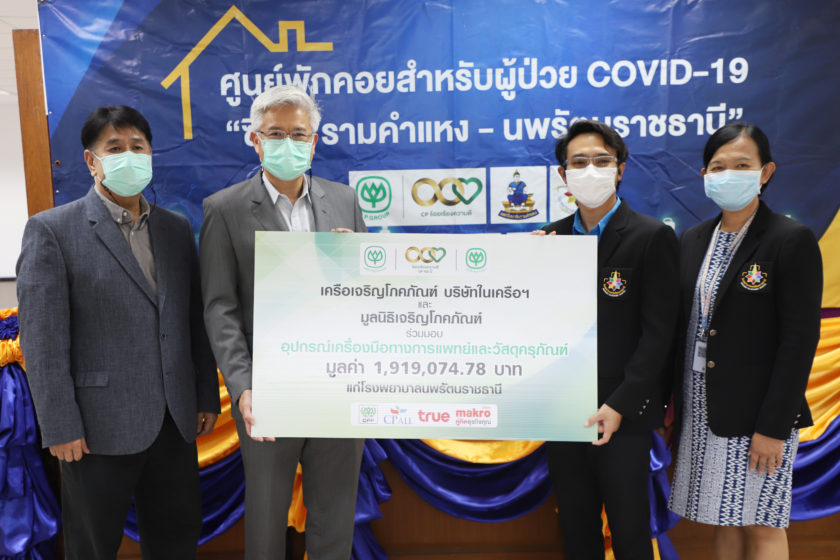 เครือซีพี และบริษัทในเครือฯ หนุนภารกิจเพื่อชาติต่อเนื่องมอบอุปกรณ์ทางการแพทย์-อุปกรณ์กระจายเสียง-วัสดุครุภัณฑ์จากศูนย์พักคอยฯ กว่า 2.1 ล้านบาทให้โรงพยาบาลนพรัตนราชธานีและมหาวิทยาลัยรามคำแหง