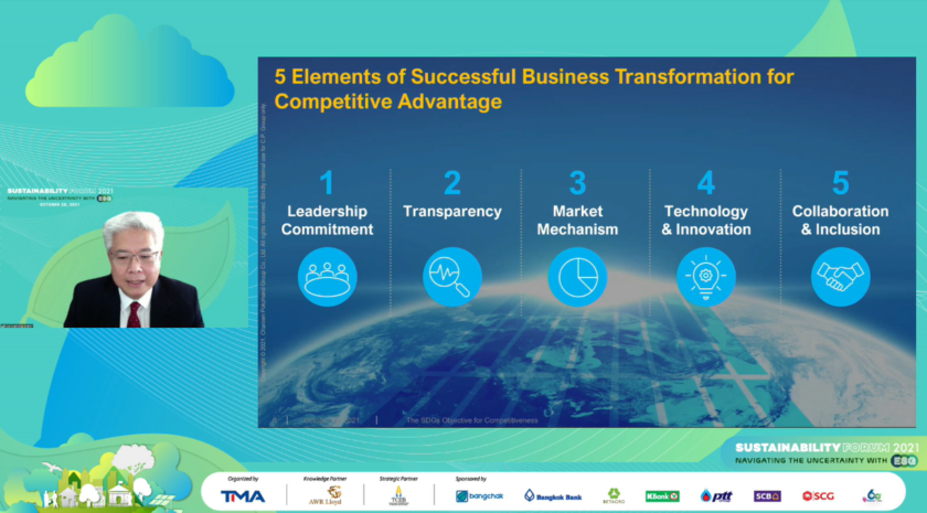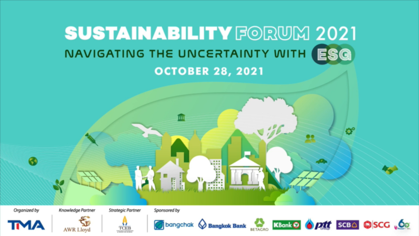 สมาคมการจัดการธุรกิจแห่งประเทศไทย (TMA) จัดเวทีสัมมนาออนไลน์ “Sustainability Forum 2021” ในหัวข้อ “Navigating the Uncertainty with ESG” โดยมีผู้บริหารจากองค์กรชั้นนำของประเทศไทย และระดับนานาชาติ มาร่วมแชร์ประสบการณ์แลกเปลี่ยนแนวคิดการดำเนินธุรกิจอย่างยั่งยืน (ESG: Environmental, Social, Governance) พร้อมช่วยแนะทางออกในการจัดการกับความไม่แน่นอนในยุคโควิด-19 ของภาคธุรกิจ