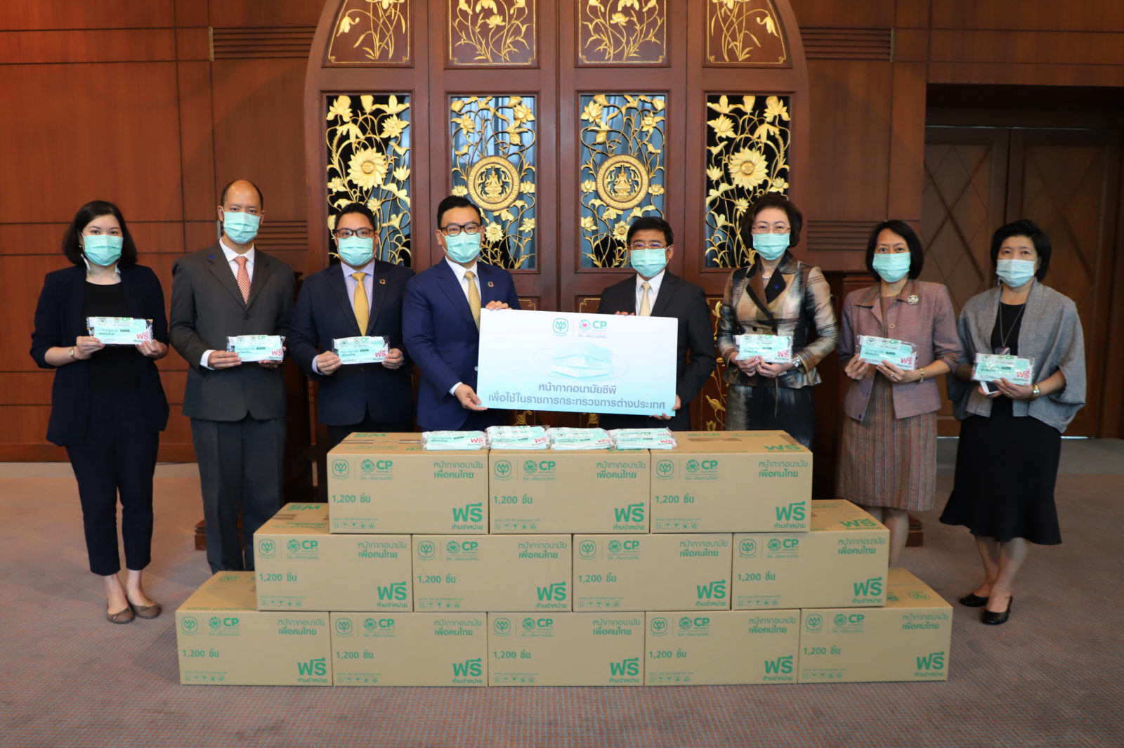 คุณเชิดเกียรติ อัตถากร รองปลัดกระทรวงการต่างประเทศกล่าวว่า ขอบคุณเครือซีพีที่ช่วยสนับสนุนหน้ากากอนามัยให้แก่กระทรวงการต่างประเทศ เพื่อนำไปมอบให้แก่ข้าราชการและเจ้าหน้าที่กระทรวงการต่างประเทศที่ปฏิบัติงานอยู่ในสถานเอกอัครราชทูต สถานกงสุลใหญ่ของไทยในต่างประเทศทั่วโลกที่มีอยู่ทั้งสิ้น 98 สำนักงาน รวมทั้งหน่วยงานทีมประเทศไทย ซึ่งยังคงปฏิบัติหน้าที่ในฐานะด่านหน้าในพื้นที่ที่มีความเสี่ยงต่อการติดเชื้อ โดยมีภารกิจสำคัญในการบริหารจัดการและอำนวยความสะดวกคนไทยที่อยู่ในต่างประเทศให้เดินทางกลับประเทศไทย รวมทั้งการออกไปให้การช่วยเหลือ เยี่ยมเยียน และดูแลความเป็นอยู่ของคนไทยที่ตกค้างอยู่ในต่างประเทศอย่างต่อเนื่อง ทั้งนี้ เพื่อเป็นขวัญกำลังใจและให้สามารถปฏิบัติหน้าที่ได้อย่างเต็มความสามารถภายใต้สถานการณ์การแพร่ระบาดของโรคติดเชื้อไวรัสโคโรน่า 2019 (โควิด-19) ที่ยังมีความรุนแรงอยู่อย่างต่อเนื่อง