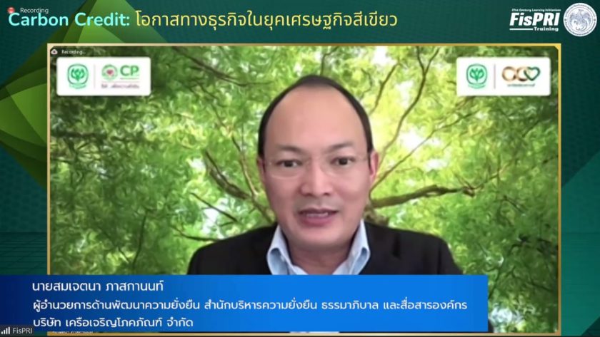 คุณสมเจตนา ภาสกานนท์ ผู้อำนวยการด้านพัฒนาความยั่งยืน สำนักบริหารความยั่งยืน ธรรมาภิบาล และสื่อสารองค์กร เครือเจริญโภคภัณฑ์ (ซีพี) ได้ร่วมบรรยายในหัวข้อ “กรณีศึกษาการพลิกโฉมธุรกิจสู่องค์กร Net-Zero Carbon Emissions” โดยกล่าวว่า เครือเจริญโภคภัณฑ์โดยคุณศุภชัย เจียรวนนท์ ประธานคณะผู้บริหารเครือฯ ได้ประกาศยุทธศาสตร์และเป้าหมายความยั่งยืนสู่ปี 2030 รวม 15 เป้าหมาย โดยมีเป้าหมายสำคัญที่เกี่ยวข้องกับการลดก๊าซเรือนกระจกสุทธิเป็นศูนย์ ลดปริมาณขยะอาหารเป็นศูนย์