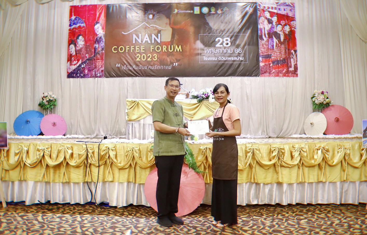 เมื่อเร็ว ๆ นี้ สำนักงานด้านความยั่งยืนและพัฒนาชุมชน จ.น่าน เครือเจริญโภคภัณฑ์ ร่วมกับวิทยาลัยชุมชนน่าน และชมรมกาแฟน่าน จัดพิธีมอบประกาศนียบัตรให้ผู้สำเร็จหลักสูตรพื้นฐานบาริสต้ากาแฟน่าน รุ่นที่ 2 จำนวน 27 คน ในงาน Nan Coffee Forum 2023: Connecting Coffee Lovers โดยมี นายวิบูรณ์ แววบัณฑิต ผู้ว่าราชการจังหวัดน่าน เป็นประธานในพิธี ภายในงานผู้ผ่านหลักสูตรบาริสต้ารุ่นที่ 1 และ รุ่น 2 ได้ร่วมนำเสนอเมนูเครื่องดื่มกาแฟฟิวชัน ให้ผู้เข้าร่วมงานได้ชิมรสชาติ ณ โรงแรมดิอิมเพรสน่าน ต.ดู่ใต้ อ.เมืองน่าน จ.น่าน