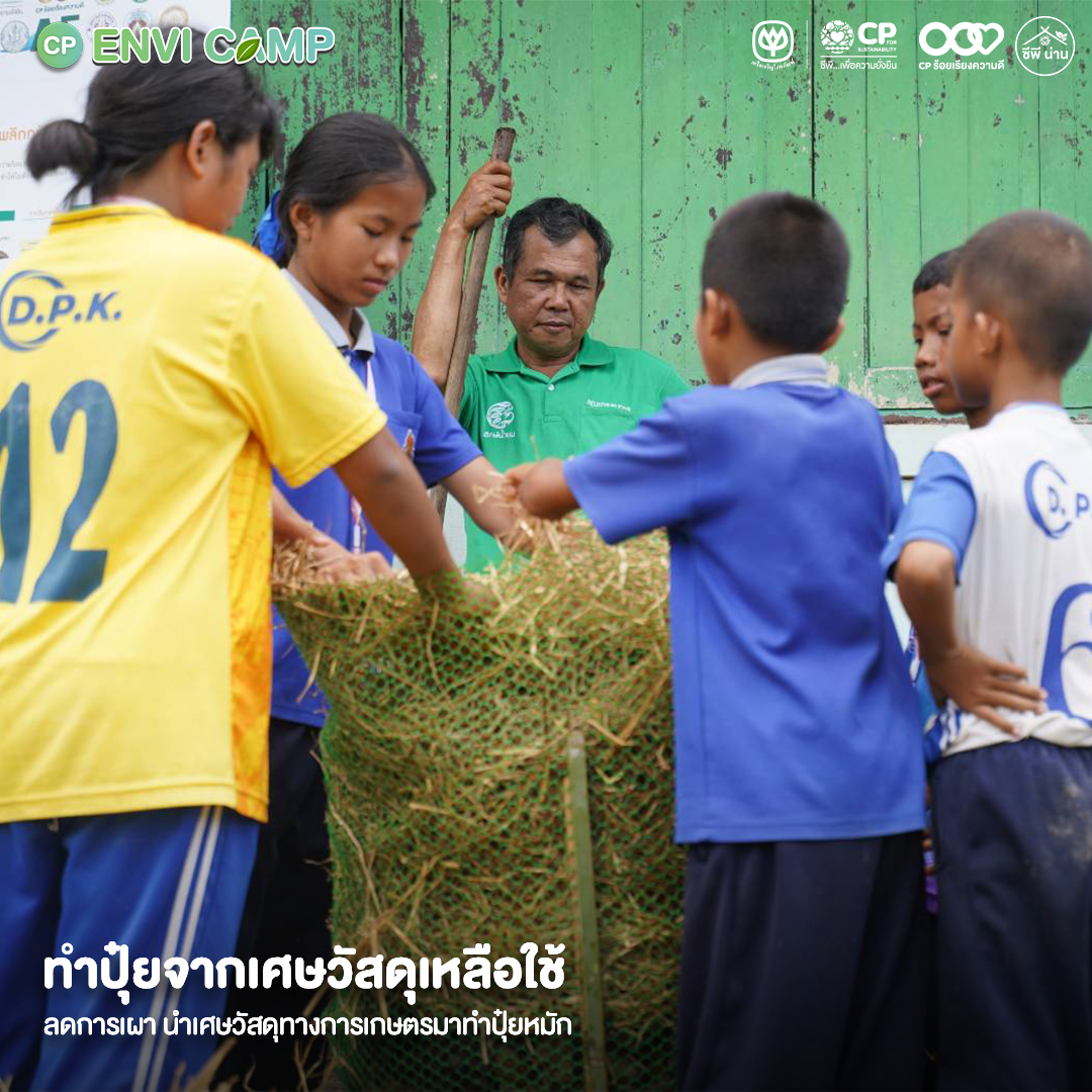 อีกหนึ่งกิจกรรมที่ได้รับความสนใจคือ การทำปุ๋ยหมักจากเศษวัสดุเหลือใช้ทางการเกษตร ถ่ายทอดโดยปราชญ์ชุมชนกลุ่มผลิตปุ๋ยหมัก “ฮักน้ำยมบ้านดอนไชยป่าแขม” และซีพี เด็กๆ ได้เรียนรู้วิธีทำปุ๋ยหมักแบบไม่พลิกกลับกอง ตามสูตร “วิศวกรรมแม่โจ้ 1” ซึ่งช่วยลดขยะจากเกษตรกรรม นำของเหลือใช้กลับมาเพิ่มมูลค่า และต่อยอดสู่การสร้างรายได้ให้กับโรงเรียนและชุมชน