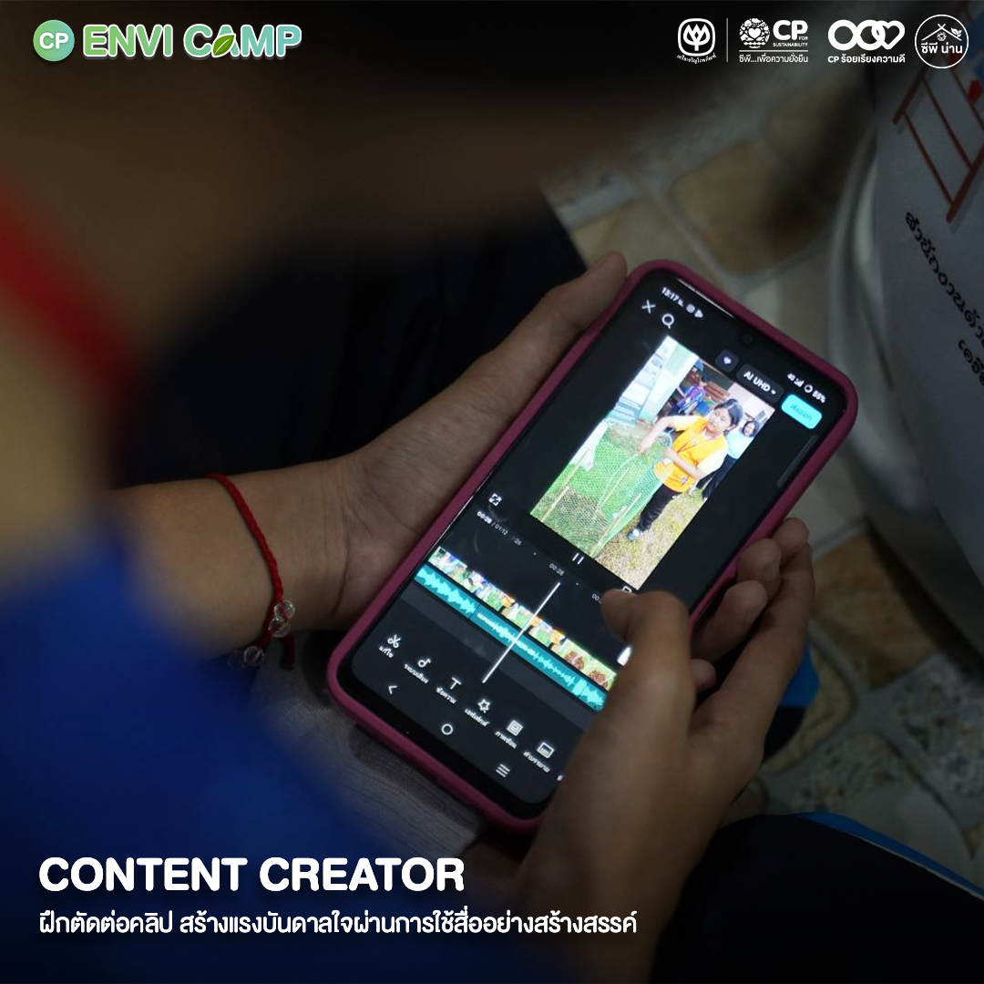 อีกหนึ่งมุมสร้างสรรค์ของค่าย คือกิจกรรม “Content Creator” สื่อสร้างแรงบันดาลใจ เด็กๆ ได้เรียนรู้การสร้างคอนเทนต์ TikTok และฝึกตัดต่อวิดีโอด้วยแอป CapCut ถ่ายทอดเรื่องราวสิ่งแวดล้อมในมุมมองของตนเอง สร้างแรงบันดาลใจให้เพื่อนๆ และชุมชนเห็นคุณค่าของธรรมชาติ พร้อมเปิดโอกาสให้เยาวชนได้ฝึกทักษะใหม่ที่สามารถต่อยอดสู่การสร้างรายได้ในอนาคต