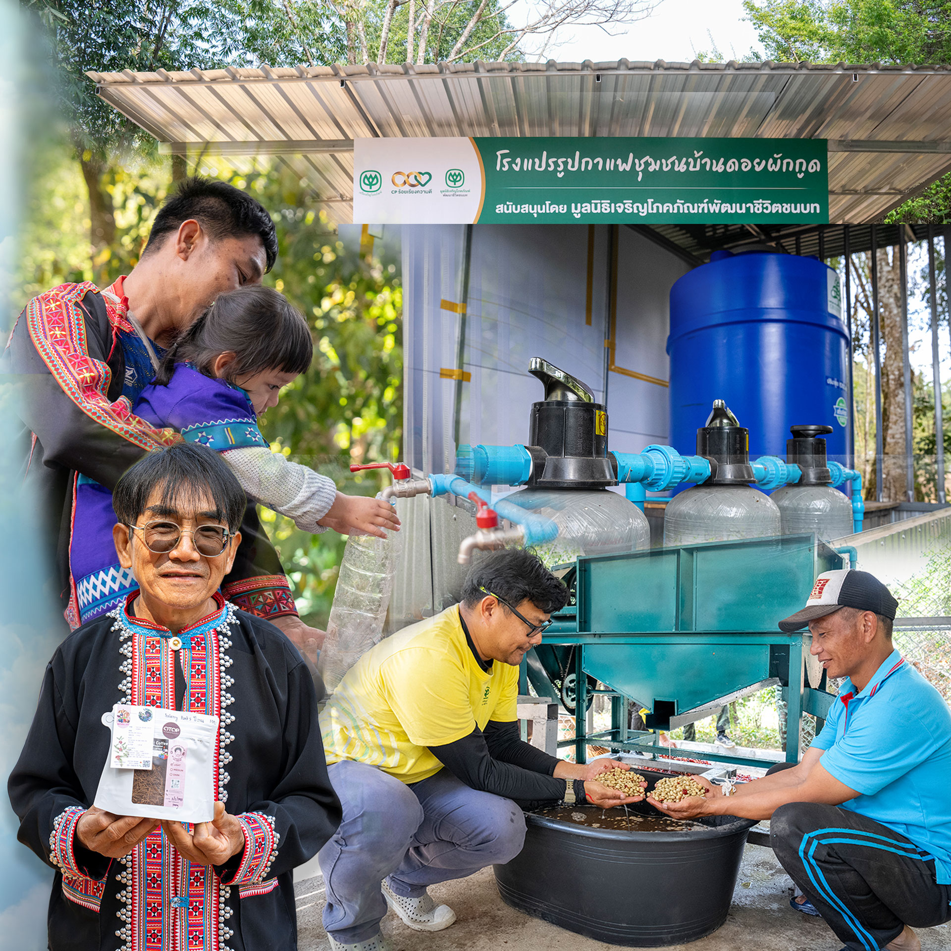 มูลนิธิเจริญโภคภัณฑ์พัฒนาชีวิตชนบท (ซีพี) มุ่งมั่นในการสืบสานพระราชปณิธานของสมเด็จพระพันปีหลวง ในการ “สร้างโอกาส สร้างรายได้ พัฒนาคุณภาพชีวิต” ให้แก่ราษฎรไทย โดยเฉพาะในพื้นที่ห่างไกล ในถิ่นทุรกันดารและตามแนวชายแดน ในการพัฒนาอย่างรอบด้าน ทั้งการมอบน้ำสะอาดเพื่อชีวิตที่ดี และการสร้างอาชีพที่ยั่งยืนอย่างการปลูกและแปรรูปกาแฟ จะนำมาซึ่งความมั่นคงทางเศรษฐกิจและสังคมอย่างแท้จริง