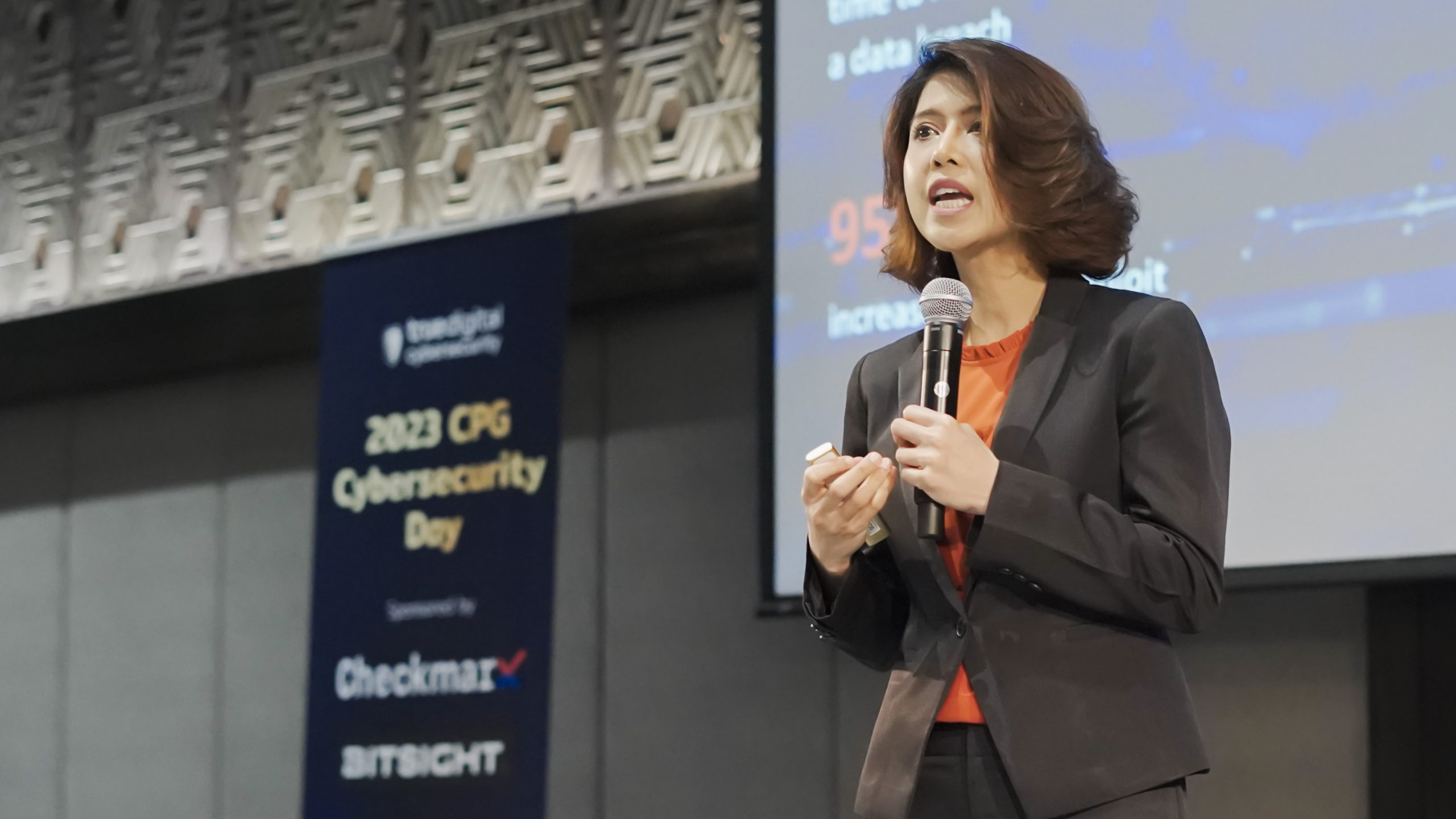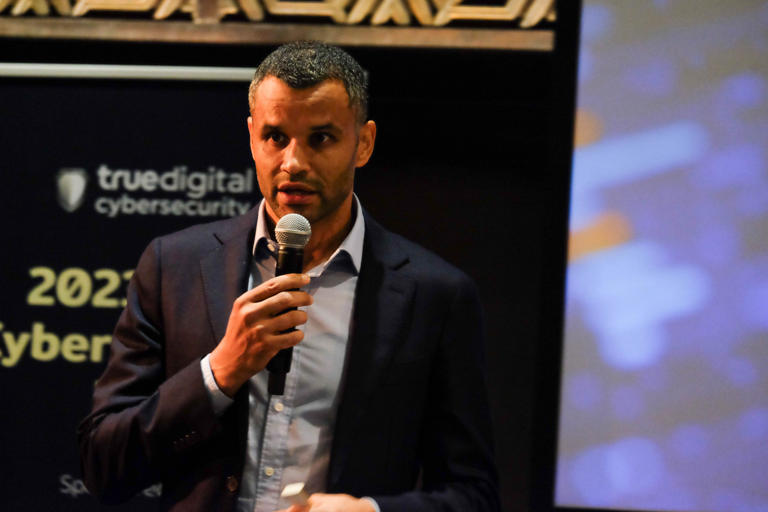 คุณฐิติรัตน์ ศิริพัฒนาเลิศ หัวหน้าคณะผู้บริหารด้านความปลอดภัยระบบข้อมูลสารสนเทศ บริษัท ทรู ดิจิทัล กรุ๊ป จำกัด  กล่าวถึงความเสี่ยงทางไซเบอร์และวิธีการรับมือว่า ปัจจุบันจากข้อมูลเทรนด์โลกผู้ร้ายมีความสามารถในการโจมตีที่มีปะสิทธิภาพมากขึ้น มีการใช้เวลา 84 นาทีเร็วกว่าปีที่ผ่านมา 12 นาที มีเทคนิคใหม่ ๆ เพิ่มมากขึ้นถึง 33 รูปแบบ และมีความพยายามโจมตีระบบงานองค์กรเพื่อนำข้อมูลไปขายในตลาดมืด 112 เปอร์เซ็นต์ ส่วนในไทยปีที่ผ่านมา มีภัยคุกคาม Ransomware สูงมาก องค์กรขนาดกลางและขนาดใหญ่ใดที่มีช่องโหว่ก็ถูกโจมตีทันที โดย Ransomware ที่เยอะที่สุดคือ Lockbit  รองลงมาคือ Play Ransomware และ Agenda กลุ่มธุรกิจที่ถูกโจมตีมากสุดคือ ผู้ผลิต โทรคมนาคม ค้าปลีก ประกัน และรัฐบาล ซึ่งความเสี่ยงทางไซเบอร์เกิดจากช่องโหว่การเชื่อมต่อกับอินเทอร์เน็ต การเข้ารหัสที่ไม่ปลอดภัย Ransomware Social Engineering และ Spear Phishing แต่สามารถลดความเสี่ยงจากทางไซเบอร์ได้โดยใช้  Multi-Factor Authentication ติดตั้ง