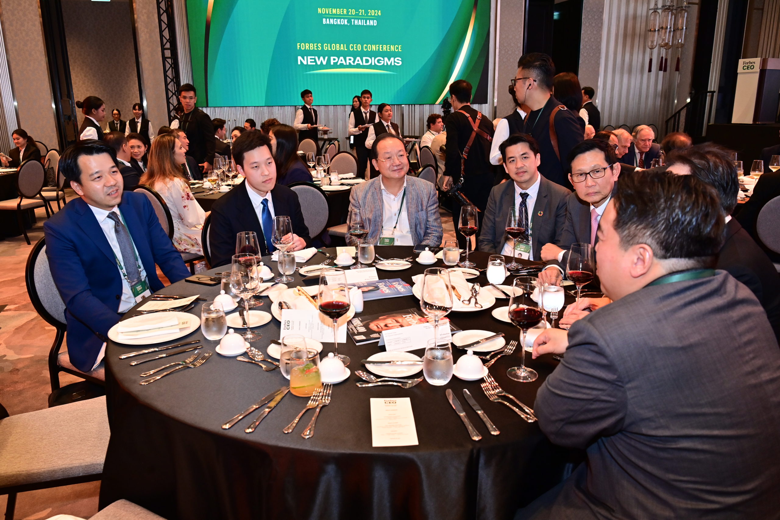 ช่วงเย็นของงานได้จัด Gala Dinner สุดพิเศษ พร้อมการเสวนาในหัวข้อ In Conversation โดย คุณทักษิณ ชินวัตร อดีตนายกรัฐมนตรี และ คุณสตีฟ ฟอร์บส์ (Steve Forbes) ประธานและบรรณาธิการบริหาร Forbes Media สร้างความประทับใจแก่ผู้นำธุรกิจจากหลากหลายประเทศ และปิดฉากงานประชุมด้วยบรรยากาศอบอุ่น