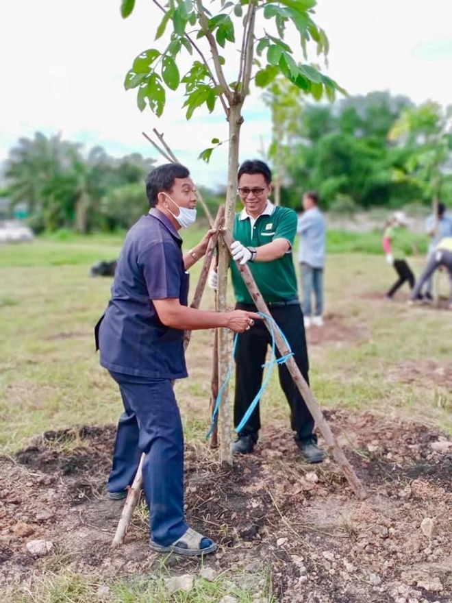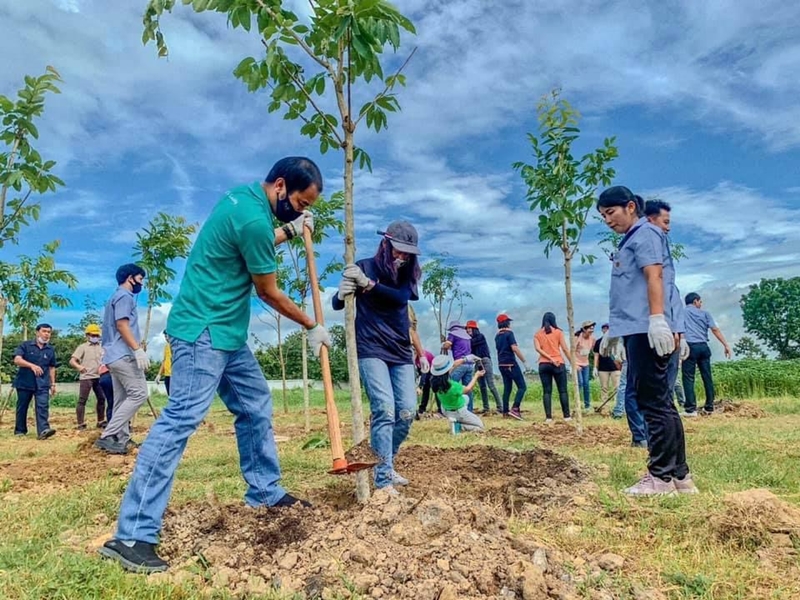 คุณพิสิฐ ดีสุวรรณ รองกรรมการผู้จัดการนำคณะผู้บริหารและพนักงาน CPF โรงงานผลิตอาหารสัตว์น้ำบ้านบึง ร่วมกันปลูกต้นไม้ภายในบริษัทฯ ในโครงการ CPF Banbueng go green_2020 บนพื้นที่กว่า 140 ตร.ม. โดยนำร่องปลูกต้นไม้ 2 ชนิด ได้แก่ อินทนิล และ กาสะลอง(ปีบ) ซึ่งเป็นไม้เนื้อแข็ง เจริญเติบโตไว ให้ร่มเงา และสามารถดูดซับก๊าซเรือนกระจกได้เป็นอย่างดี มุ่งสู่การเป็นองค์กร Carbon Neutral ในปี 2030 และดำเนินธุรกิจควบคู่กับการดูแลสิ่งแวดล้อมอย่างยั่งยืนของเครือ CP-CPF