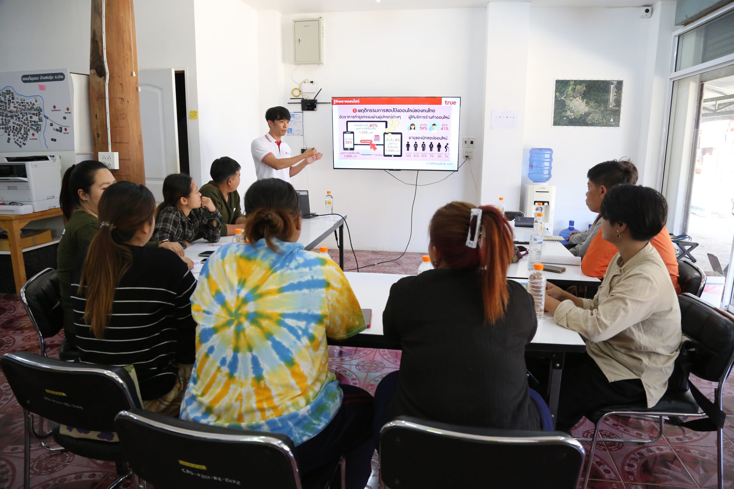 กิจกรรมต่อมา เป็นการอมรมให้ความรู้ทักษะดิจิทัลและการใช้โซเชียลมีเดียในการทำการตลาดสินค้าชุมชนให้แก่คนในชุมชนบ้านสบขุ่น (Smart Village) ให้ความรู้ อาทิ หลักการตลาดเบื้องต้น การต่อยอดผลิตภัณฑ์ชุมชน นอกจากนี้ยังให้ความรู้เรื่องช่องทางขายสินค้าออนไลน์ ทั้งช่องทางออนไลน์ของกลุ่มทรู อาทิ แอปพลิเคชัน True Money wallet ระบบจัดการร้านค้าออนไลน์ True Smart Merchant เทคนิคการขายออนไลน์ในแพลตฟอร์ม Facebook, Instagram และ Line OA เพื่อเสริมศักยภาพด้านการตลาดให้ชุมชน ในการจำหน่ายสินค้าชุมชนในช่องทางออนไลน์ เสริมอาชีพ สร้างรายได้ สร้างชุมชนเข้มแข็งอย่างยั่งยืน