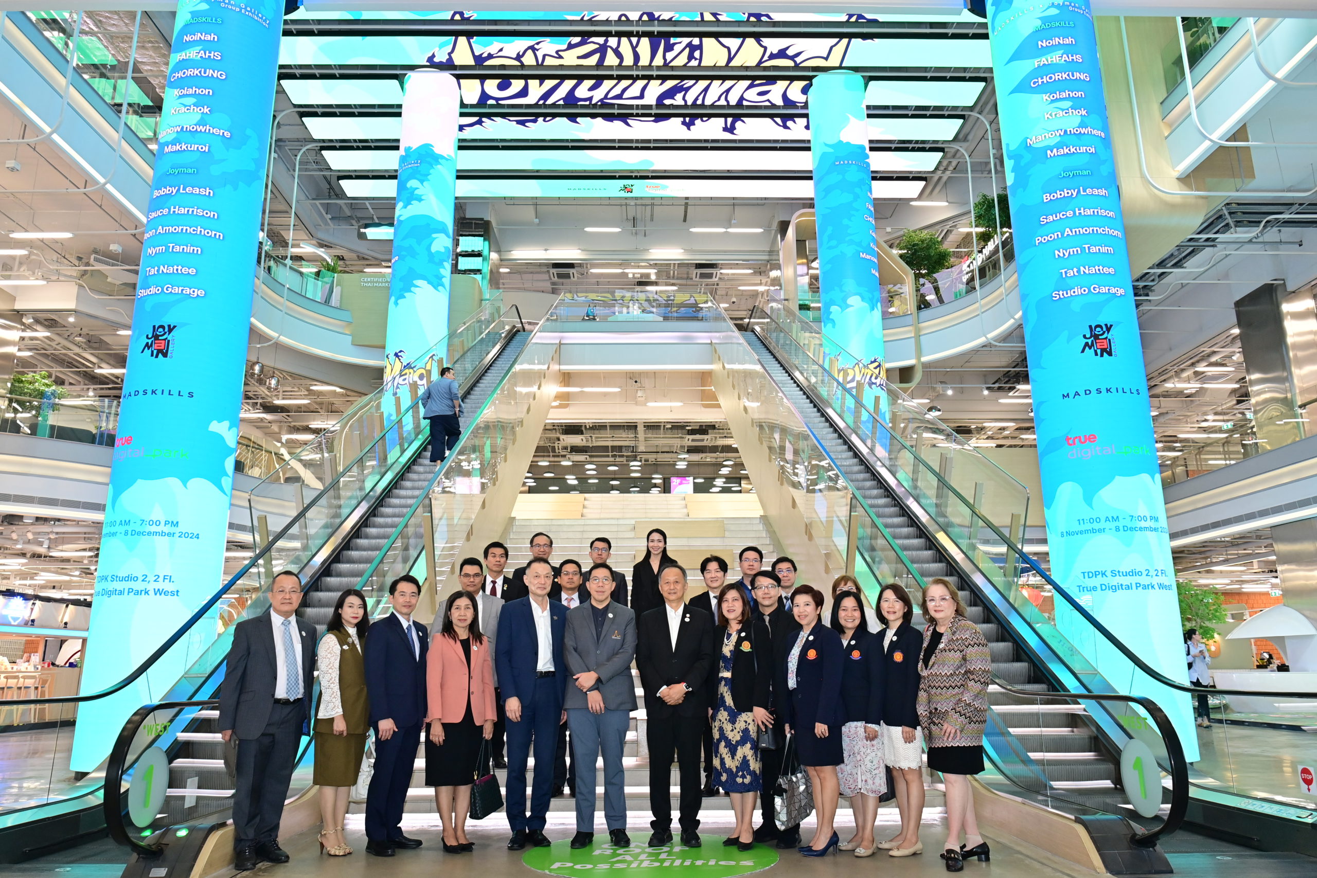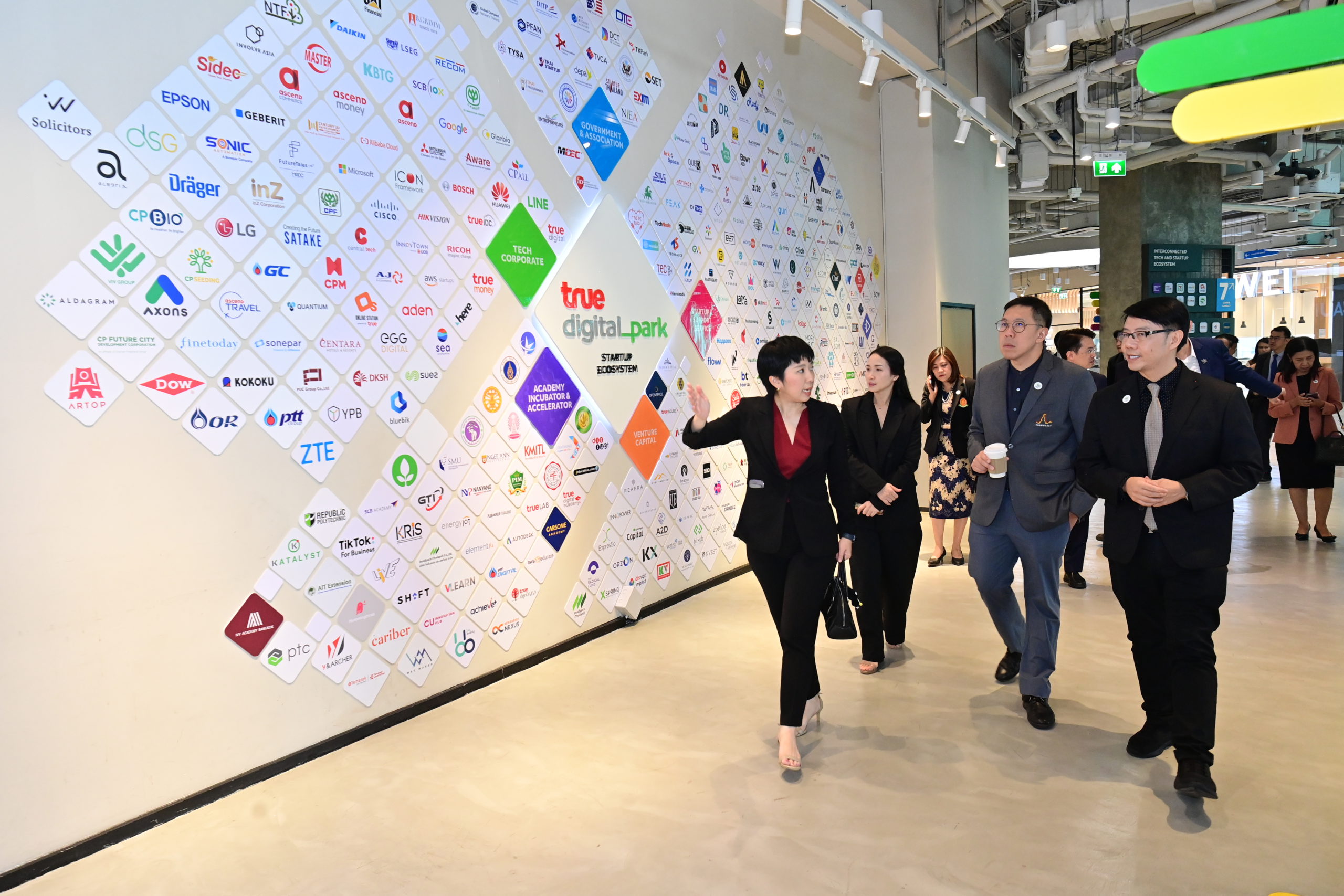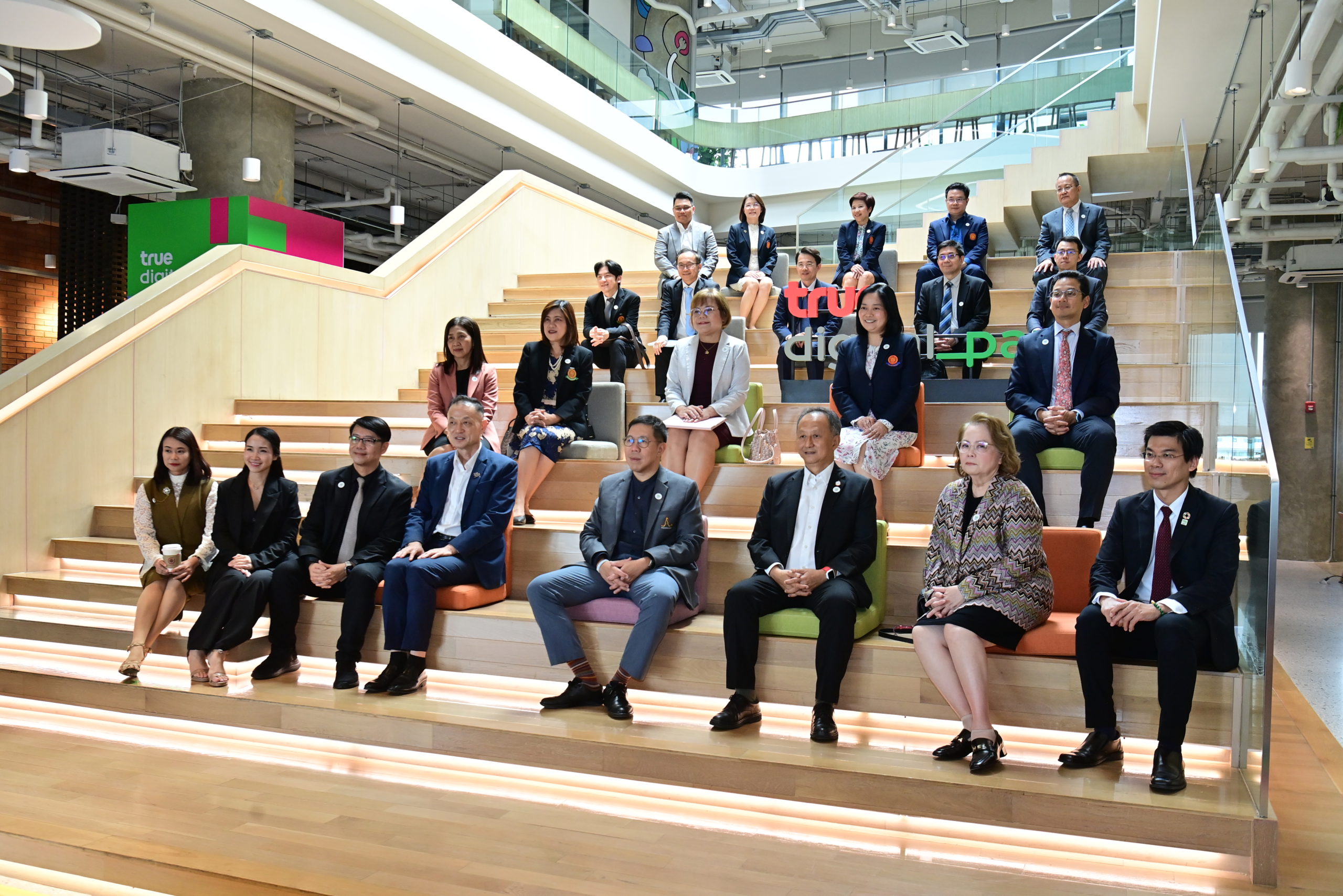 โอกาสนี้ คณะผู้บริหารมหาวิทยาลัยธรรมศาสตร์ได้สัมผัสบรรยากาศของศูนย์นวัตกรรมเพื่อความยั่งยืนของเครือซีพี ซึ่งตอกย้ำความตั้งใจในการขับเคลื่อนธุรกิจเพื่ออนาคตที่มั่นคงของประเทศ พร้อมเยี่ยมชม True Digital Park ศูนย์นวัตกรรมดิจิทัลที่ใหญ่ที่สุดในเอเชียตะวันออกเฉียงใต้ โดยได้ชมพื้นที่ Co-Working Space ซึ่งออกแบบมาเพื่อตอบโจทย์การทำงานในยุคดิจิทัล เน้นความยืดหยุ่นและสอดคล้องกับไลฟ์สไตล์ของคนทำงานรุ่นใหม่ ชมระบบนิเวศดิจิทัลอันทันสมัยของกลุ่มทรู ไม่ว่าจะเป็นการพัฒนาโซลูชันดิจิทัลที่ True IDC Experience Center และความก้าวหน้าของเทคโนโลยีคลาวด์ พร้อมโอกาสในการแลกเปลี่ยนมุมมองกับทีมผู้เชี่ยวชาญอย่างใกล้ชิด