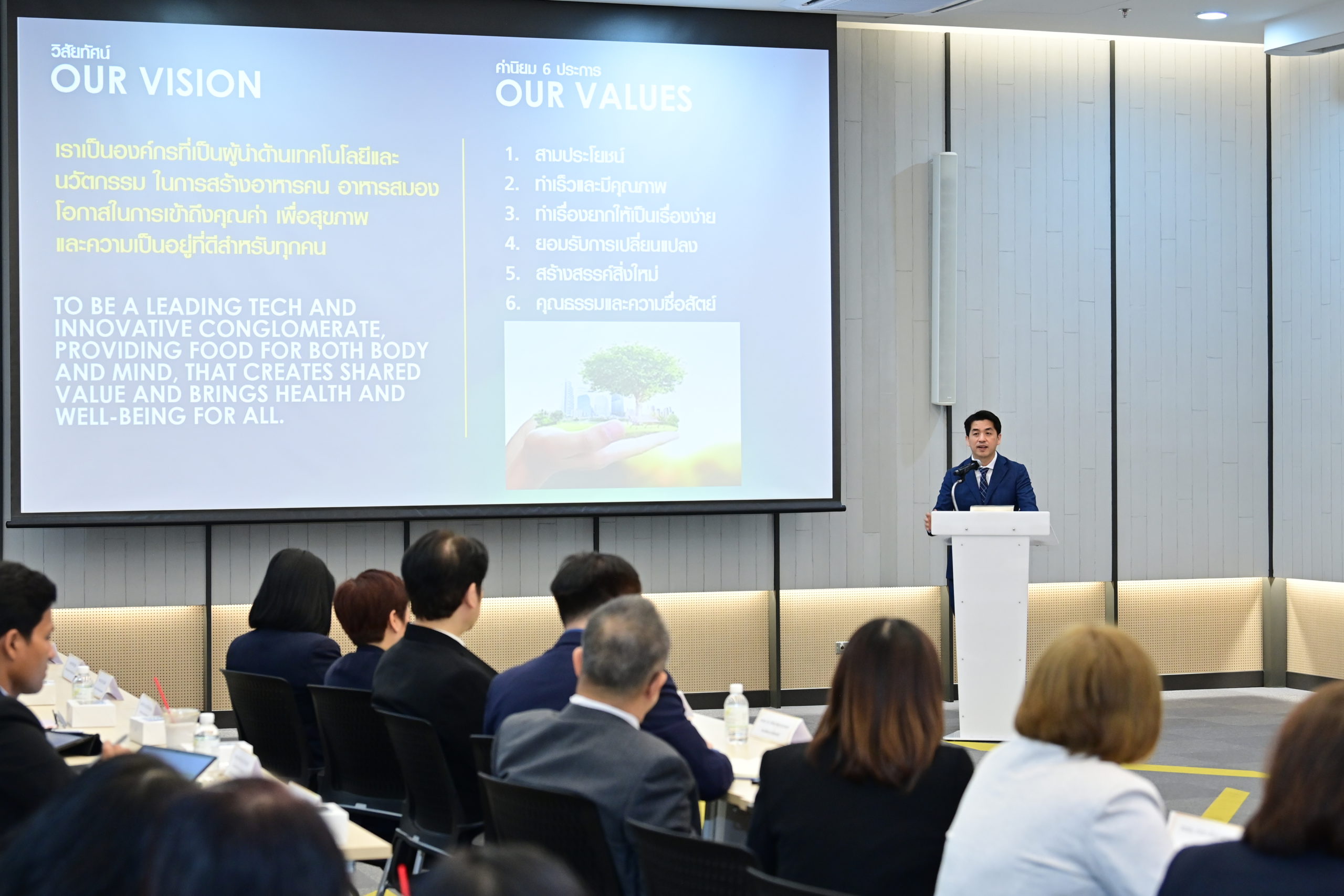 7 พฤศจิกายน 2567 – เครือเจริญโภคภัณฑ์ (ซีพี) เปิดบ้านต้อนรับคณะผู้บริหารมหาวิทยาลัยธรรมศาสตร์ นำโดย ศ.ดร.ศุภสวัสดิ์ ชัชวาล อธิการบดี รศ.ดร.ม.ล.พินิตพันธุ์ บริพัตร รองอธิการบดีฝ่ายวิจัยและนวัตกรรม รศ.ดร.ดำรงค์ อดุลยฤทธิกุล รองอธิการบดีฝ่ายวิชาการ ศ.นพ.รัฐกร วิไลชนม์ หัวหน้าศูนย์ความเป็นเลิศระบบทางเดินอาหาร และศูนย์ปลูกถ่ายอุจจาระ พร้อมคณะผู้บริหารระดับสูงจากคณะต่าง ๆ ที่มีบทบาทสำคัญในด้านการวิจัยและวิชาการ เพื่อหารือความร่วมมือในการพัฒนางานวิจัยและนวัตกรรมที่เน้นการส่งเสริมสุขภาพและยกระดับคุณภาพชีวิตของประชาชน พร้อมเยี่ยมชมศูนย์นวัตกรรมเพื่อความยั่งยืน (CP Innovation for Sustainability Center) และ ทรู ดิจิทัล พาร์ค (True Digital Park) ศูนย์นวัตกรรมดิจิทัลที่ใหญ่ที่สุดในเอเชียตะวันออกเฉียงใต้ ทั้งนี้ การหารือดังกล่าวมุ่งเน้นการพัฒนานวัตกรรมด้านการแพทย์ ปัญญาประดิษฐ์ (AI) และเทคโนโลยีสุขภาพยุคใหม่ โดยได้รับการต้อนรับอย่างอบอุ่น จากผู้บริหารระดับสูงของเครือซีพี ได้แก่ คุณบุญชัย โอภาสเอี่ยมลิขิต ประธานธุรกิจ-สหรัฐอเมริกา สหภาพยุโรป และอังกฤษ ดร.ธีระพล ถนอมศักดิ์ยุทธ ประธานคณะผู้บริหารด้านความยั่งยืนองค์กรและการพัฒนากลยุทธ์ และประธานคณะผู้บริหาร ยุทธศาสตร์ข้อมูลและการสื่อสาร คุณวิเศษ วิศิษฏ์วิญญู ประธานสายงานวิจัยและพัฒนา และกรรมการผู้จัดการ ซีพีแรม และ ดร.ยู จุน เจียง (ดร.เจเจ) ประธานเจ้าหน้าที่บริหารฝ่ายเทคโนโลยีการวิจัยและพัฒนา ณ ทรู ดิจิทัล พาร์ค สุขุมวิท 101