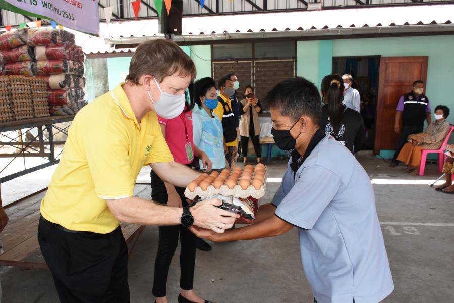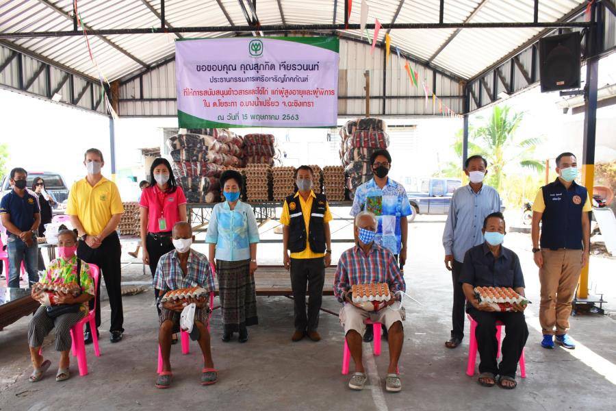 เครือซีพีช่วยเหลือผู้สูงอายุและผู้พิการ ชาวบ้านโยธะกา จ.ฉะเชิงเทรา มอบข้าวสาร 4,500 กก. และไข่ไก่ 27,000 ฟอง บรรเทาความเดือดร้อนช่วงวิกฤตโควิด-19