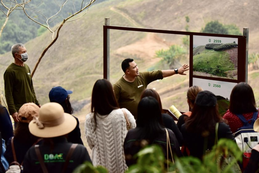 ทางด้านคุณสงคราม รัตนศรีลา ประธานวิสาหกิจชุมชนสร้างป่าสร้างรายได้ บ้านสบขุ่น กล่าวว่า กว่าจะเป็นกลุ่มวิสาหกิจฯ อย่างทุกวันนี้ เกษตรกรที่นี่เริ่มต้นจากความไม่รู้ เราต้องยอมรับว่า “กาแฟ” เป็นพืชใหม่สำหรับคนในชุมชน ก่อนหน้านี้มีการจัดตั้งกลุ่มโดยใช้ชื่อ “เกษตกรผู้ปลูกกาแฟบ้านสบขุ่น” และเมื่อผ่านการเรียนรู้กระบวนการจัดการจากต้นน้ำสู่ปลายน้ำร่วมกับทีม CP จึงเห็นถึงโอกาสและปัญหาในพื้นที่จากการปรับเปลี่ยนพืชเชิงเดี่ยวสู่แปลงกาแฟ ได้พัฒนาเติมทักษะในสิ่งที่ขาด ศึกษาดูงานในพื้นที่อื่น ๆ มีความสามารถในการบริหารจัดการ และเกิดการมีส่วนร่วมของคนในกลุ่ม จึงก่อเกิดการทำงานร่วมกับภาครัฐภายใต้โครงการ “สร้างป่า สร้างรายได้” ซึ่งเป็นโครงการส่งเสริมอาชีพให้ปลูกไม้ป่าควบคู่ไปกับไม้เศรษฐกิจ เป็น 1 ในโครงการตามพระราชดำริ สมเด็จพระกนิษฐาธิราชเจ้า กรมสมเด็จพระเทพรัตนราชสุดาฯ สยามบรมราชกุมารี เพื่อรักษาฟื้นฟูป่าต้นน้ำที่ถูกทำลาย โดยดำเนินการไปพร้อมกับการสร้างจิตสำนึกจนเกิดเป็น “วิสาหกิจชุมชนสร้างป่าสร้างรายได้บ้านสบขุ่น”