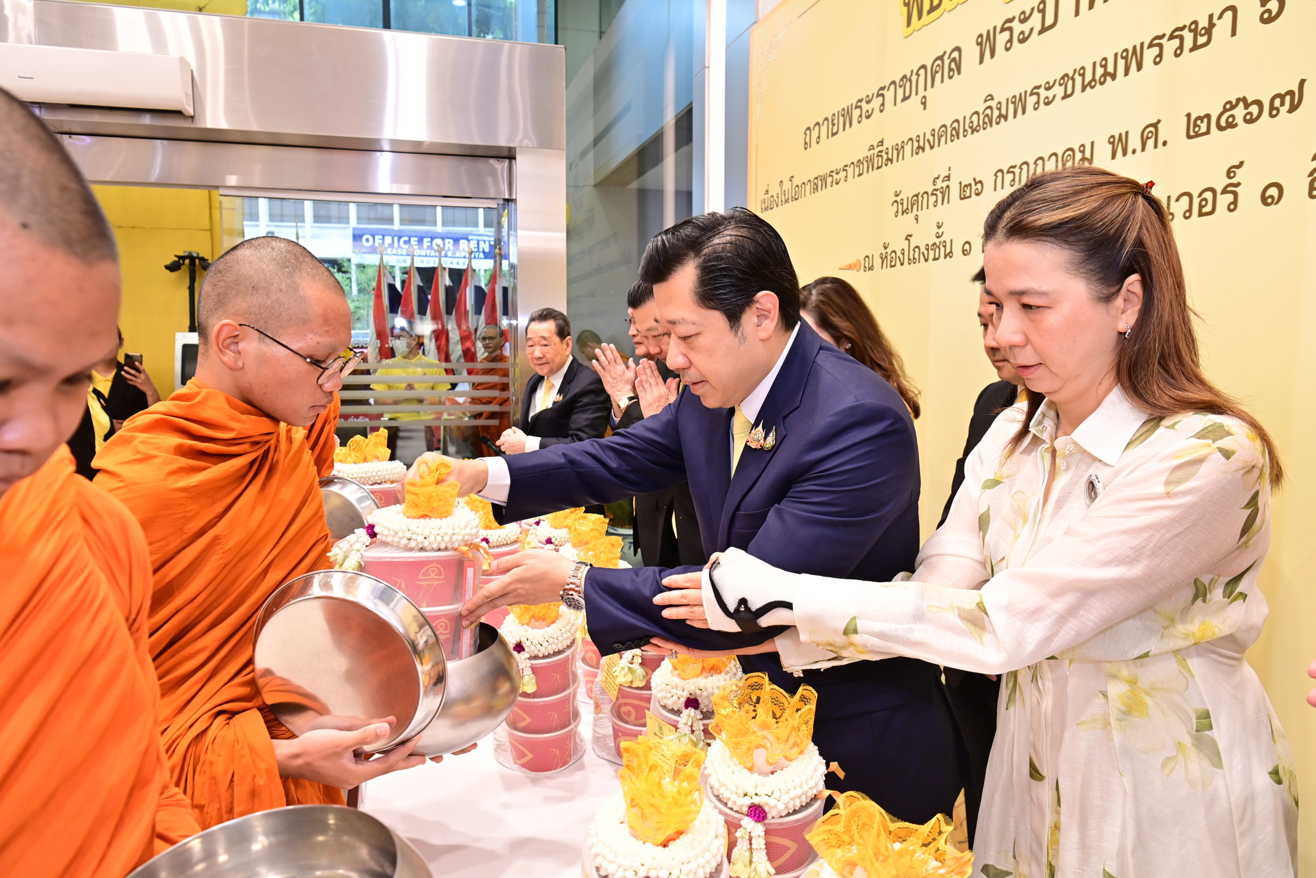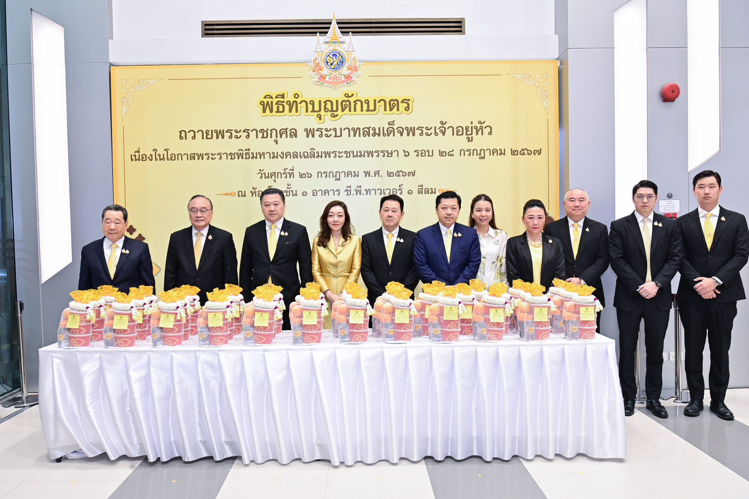 ช่วงเช้าวันที่ 26 กรกฎาคม 2567 – เครือซีพี นำโดย ท่านประธานอาวุโสธนินท์ เจียรวนนท์ พร้อมด้วย คุณสุภกิต เจียรวนนท์ ประธานกรรมการ เครือฯ และคุณมาริษา เจียรวนนท์ ภริยา คุณณรงค์ เจียรวนนท์ รองประธานอาวุโส เครือฯ คุณศุภชัย เจียรวนนท์ ประธานคณะผู้บริหาร เครือฯ และ คุณบุษดี เจียรวนนท์ ภริยา คุณวรรณี (เจียรวนนท์) รอสส์ และคุณไมเคิล รอสส์ รองประธานอาวุโส นำคณะผู้บริหารระดับสูง อาทิ ดร.อาชว์ เตาลานนท์ คุณพงษ์เทพ เจียรวนนท์ คุณประเสริฐ พุ่งกุมาร คุณมิน เธียรวร คุณอดิเรก ศรีประทักษ์ คุณธีรยุทธ พิทยาอิสรกุล ดร.สารสิน วีระผล คุณภัทนีย์ เล็กศรีสมพงษ์ คุณอรุณี วัชรานานันท์ คุณอำรุง สรรพสิทธิ์วงศ์ คุณสุขวัฒน์ ด่านเสริมสุข ดร.ธีระพล ถนอมศักดิ์ยุทธ คุณพิมลรัตน์ รีพัฒนาวิจิตรกุล คุณประสิทธิ์ บุญดวงประเสริฐ คุณพิทยา เจียรวิสิฐกุล คุณปิยะวัฒน์ ฐิตะสัทธาวรกุล คุณประสิทธิ์ ดํารงชิตานนท์ คุณวรวิทย์ เจนธนากุล คุณไพศาล เครือวงศ์วานิช และพนักงานเครือซีพีจากทุกกลุ่มธุรกิจ ต่างพร้อมใจกันสวมเสื้อเหลือง ร่วมทำบุญตักบาตรพระสงฆ์ จำนวน 73 รูป ถวายพระราชกุศลแด่พระบาทสมเด็จพระเจ้าอยู่หัว เนื่องในโอกาสพระราชพิธีมหามงคลเฉลิมพระชนมพรรษา 6 รอบ 28 กรกฎาคม 2567 เพื่อเป็นการร่วมเฉลิมพระเกียรติ แสดงความจงรักภักดีสำนึกในพระมหากรุณาธิคุณ และเป็นการแสดงความเป็นอันหนึ่งอันเดียวกันของชาวซีพี ณ อาคาร ซี.พี.ทาวเวอร์ สีลม