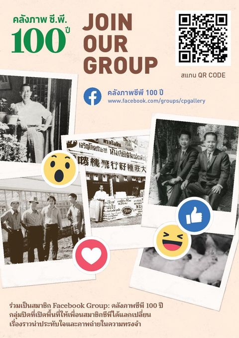 ร่วมเป็นสมาชิก Facebook Group: คลังภาพซีพี 100 ปี กลุ่มปิดที่เปิดพื้นที่ให้เพื่อนสมาชิกซีพีได้แลกเปลี่ยนเรื่องราวน่าประทับใจและภาพถ่ายในความทรงจำ