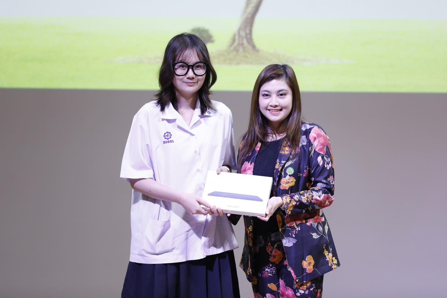 คุณชัญญรัช พีราวัชร ผู้จัดการทั่วไปอาวุโส บริษัท ซีพีแรม จำกัด ให้เกียรติมอบทุนการศึกษาแก่น้อง ๆ ยุวชนจากกลุ่ม New Media
