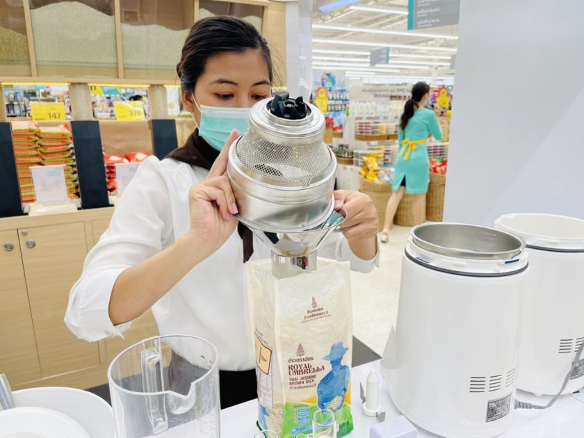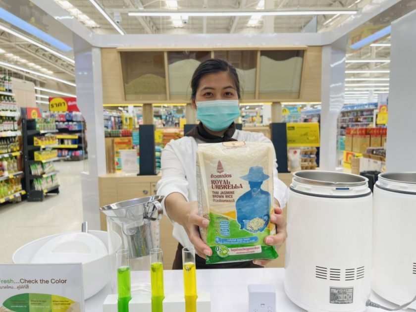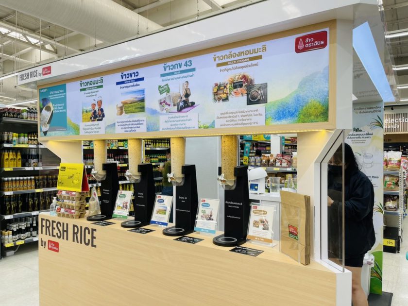 “FRESH RICE” ป๊อปอัพ ไรซ์สโตร์ ที่มาในคอนเซปต์ Personalize & Premium Niche นำเอาพันธุ์ข้าวใหม่ๆ และพันธุ์ดั้งเดิมหลากหลายชนิด คัดสายพันธุ์อย่างดีจากแหล่งเพาะปลูกที่มีคุณภาพ ส่งตรงมาจากเกษตรกรสมาชิกภายใต้โครงการพัฒนาระบบการปลูกข้าวเพื่อความยั่งยืน และยังตรวจสอบย้อนกลับได้ทุกขั้นตอนการผลิต มาให้ผู้บริโภคได้เลือกสรรพันธุ์ข้าวคุณภาพดีๆ ด้วยมือตัวเอง ตามความต้องการโดยเฉพาะ ข้าวจะถูกบรรจุอยู่ในหลอดให้ลูกค้าสามารถหมุนเลือกเองได้ตามใจชอบ สะอาด ปลอดภัย ไม่โดนฝุ่น และไฮไลต์ของป๊อปอัพ ไรซ์สโตร์ “FRESH RICE” คือ บริการขัดสีข้าวกันสดๆ ผ่านเครื่องขัดสีคุณภาพชั้นนำที่นำเข้าจากประเทศญี่ปุ่น (สามารถสีข้าวสดได้ครั้งละ 500 กรัม/เครื่อง) โดยนำข้าวกล้องหอมมะลิตราฉัตร ที่เก็บรักษาความสดใหม่ไว้ด้วยอุณหภูมิ 15 องศาเซลเซียส มาขัดสีสด จนได้ข้าว Germ Rice (ข้าวที่มีจมูกข้าว) ทำให้คงคุณประโยชน์ไว้ได้มากที่สุด ข้าวจะอุดมไปด้วยวิตามิน ไฟเบอร์ และสารอาหาร เมื่อหุงออกมาแล้วจะหอมกว่า นุ่มกว่า อร่อย ที่สำคัญช่วยให้เรากินง่ายกว่าข้าวกล้องหอมมะลิทั่วไป
