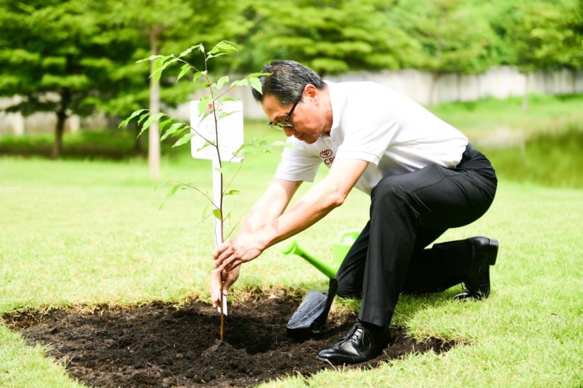 ในโครงการ “ซีพี ร้อย รักษ์โลก” ภายใต้เครือเจริญโภคภัณฑ์ เพื่อรณรงค์ให้ผู้บริหาร และเพื่อนพนักงาน ปลูกต้นไม้ครบ 10 ล้านต้น ภายในปี 2573 มุ่งสู่เป้าหมายการเป็นองค์กร Carbon Neutral และกำหนดของเสียสุทธิเป็นศูนย์ ภายในอีก 9 ปีข้างหน้า