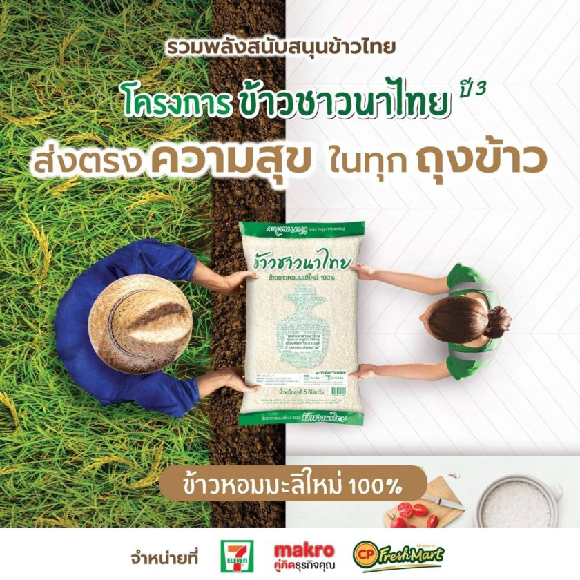 ข้าวชาวนาไทย ข้าวหอมมะลิใหม่ 100% ขนาด 5 กก. จำหน่ายในราคาเพียง 165 บาท สามารถหาซื้อได้ตามร้านสะดวกซื้อ และห้างค้าใกล้บ้านภายใต้เครือเจริญโภคภัณฑ์ อาทิ 7-Eleven, แมคโคร และ ซีพี เฟรชมาร์ท กันได้เลยจ้า