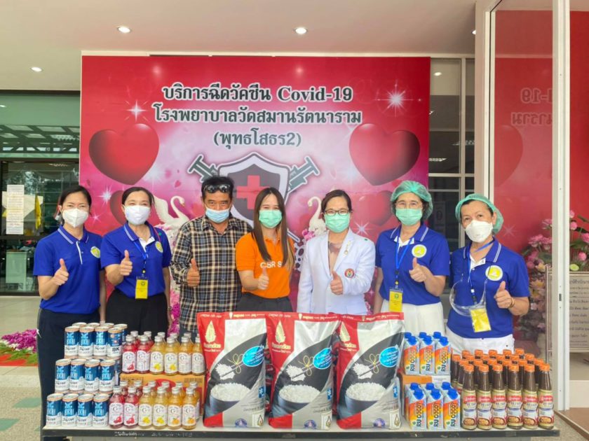 สนับสนุนผลิตภัณฑ์ อาทิ ข้าวหอมมะลิใหม่ตราฉัตร, น้ำมะพร้าวผสมวิตามิน R U COCO?, เครื่องดื่มผลไม้ผสมวิตามินซี 200% ไวต้าวันซีพลัส และ เครื่องดื่ม BK Sparkling Vitamin Drink มอบให้บุคลากรทางการแพทย์ โรงพยาบาลวัดสมานรัตนาราม จ. ฉะเชิงเทรา เพื่อส่งต่อกำลังใจในการทำงานของบุคลากรทางการแพทย์และเจ้าหน้าที่ ที่เสียสละปฏิบัติหน้าที่ดูแลผู้ป่วย และทำงานให้บริการประชาชนอย่างหนักต่อเนื่อง