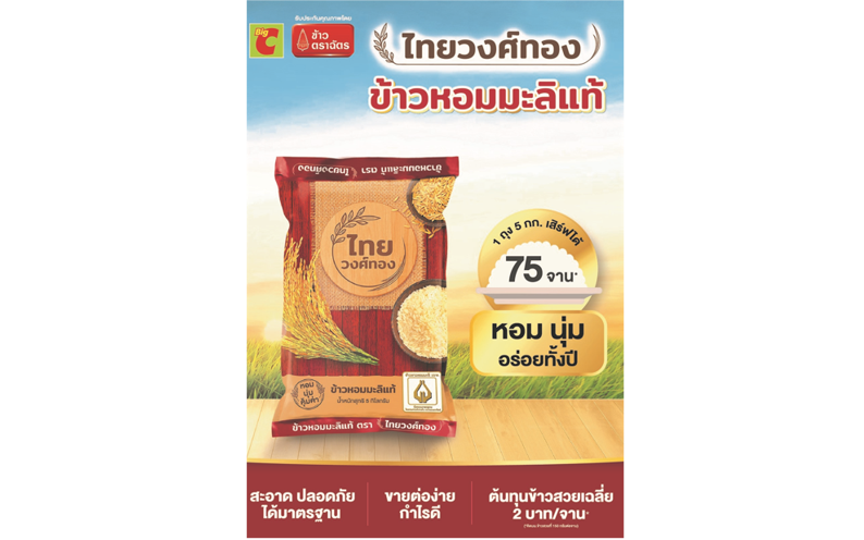 โดย “ข้าวไทยวงศ์ทอง” เป็นข้าวหอมมะลิแท้! หอม นุ่ม ตลอดทั้งปี การันตีด้วยสัญลักษณ์เครื่องหมายพนมมือ รับประกันข้าวหอมมะลิแท้! สะอาด ปลอดภัย เพราะผลิตจากโรงงานที่ได้มาตรฐาน ภายใต้บริษัท CPI ที่สำคัญคุ้มค่า ขนาด 5 กก. 1 ถุง สามารถหุงเป็นข้าวสวยรับประทานได้ถึง 75 จาน เฉลี่ยจานละ 2 บาทกว่า (คิดจากปริมาณการบริโภค 150 กรัมต่อจาน) และจัดเป็นสินค้าข้าวหอมมะลิแท้! ที่ซื้อมา ขายง่าย กำไรดี สำหรับช่องทางร้านค้าทั่วไป