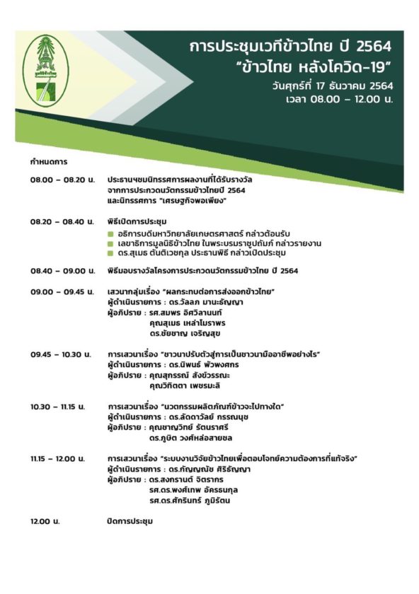 #ข้าวตราฉัตรสนับสนุนการจัดงานการประชุมเวทีข้าวไทยปี2564