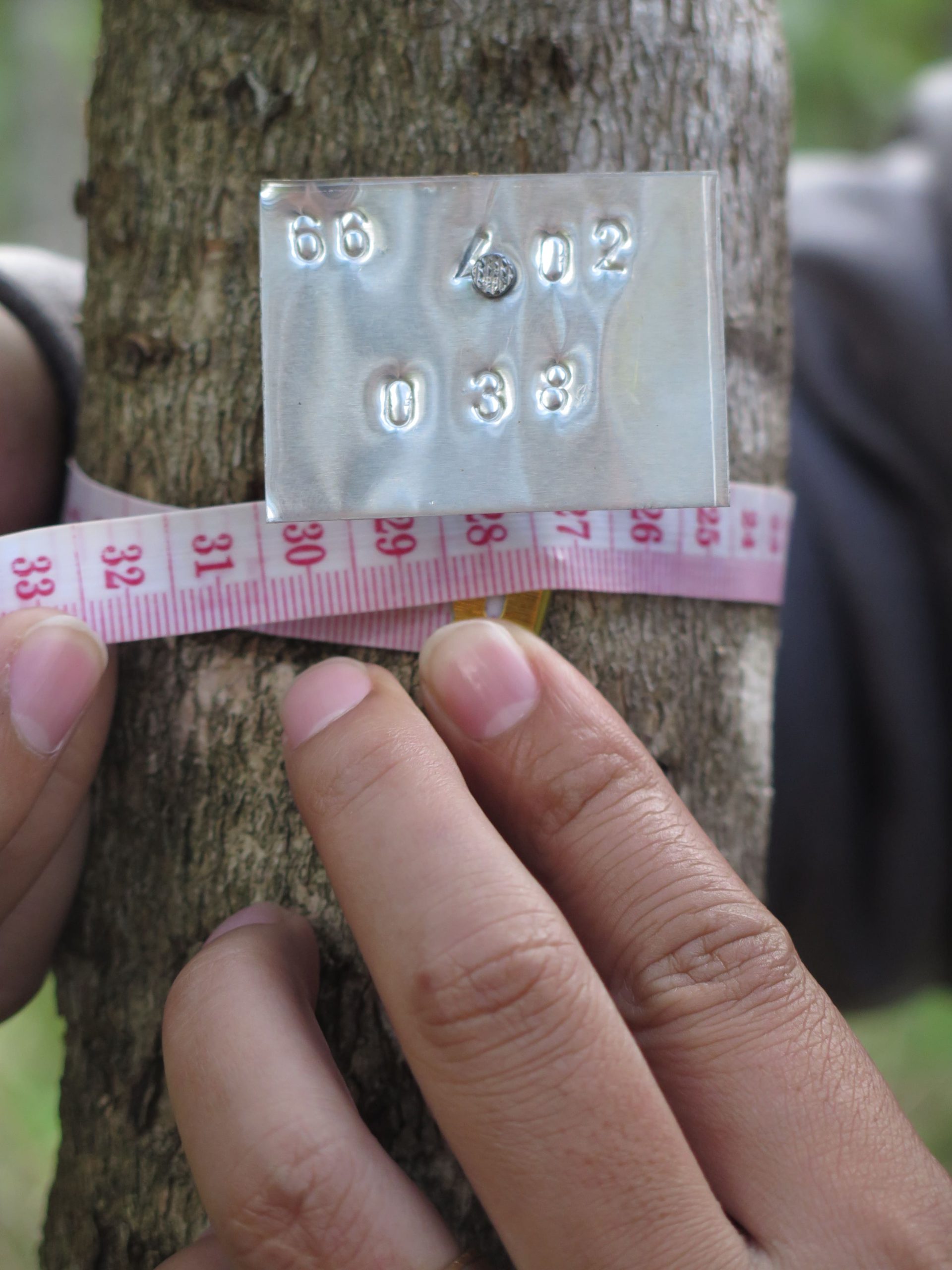 คุณนิพนธ์ มุ่ยเรืองศรี และคุณศิริลักษณ์ เจนการวณิช ผู้บริหารโครงการธรรมชาติปลอดภัยฯ ลงพื้นที่ บ้านห้วยทรายขาว ตำบลแม่แวน อำเภอพร้าว จังหวัดเชียงใหม่ โดยมีคุณณัฐกุล ขันทะสอน ผู้ช่วยหัวอุทยานแห่งชาติศรีลานนา และเจ้าหน้าที่อุทยานฯ พาเข้าแปลงปลูกป่าฟื้นฟูปี 2558 เพื่อติดตามความคืบหน้าการสำรวจฐานข้อมูลทรัพยากรป่าไม้ และการวางแปลงติดตามความเปลี่ยนแปลงในแปลงปลูกป่า ทั้งปริมาณมวลชีวภาพ ปริมาณการกักเก็บคาร์บอน และปริมาณการดูดซับคาร์บอนไดออกไซด์ ตามหลักการสำรวจทรัพยากรป่าไม้ ของกรมอุทยานแห่งชาติ สัตว์ป่า และพันธุ์พืช